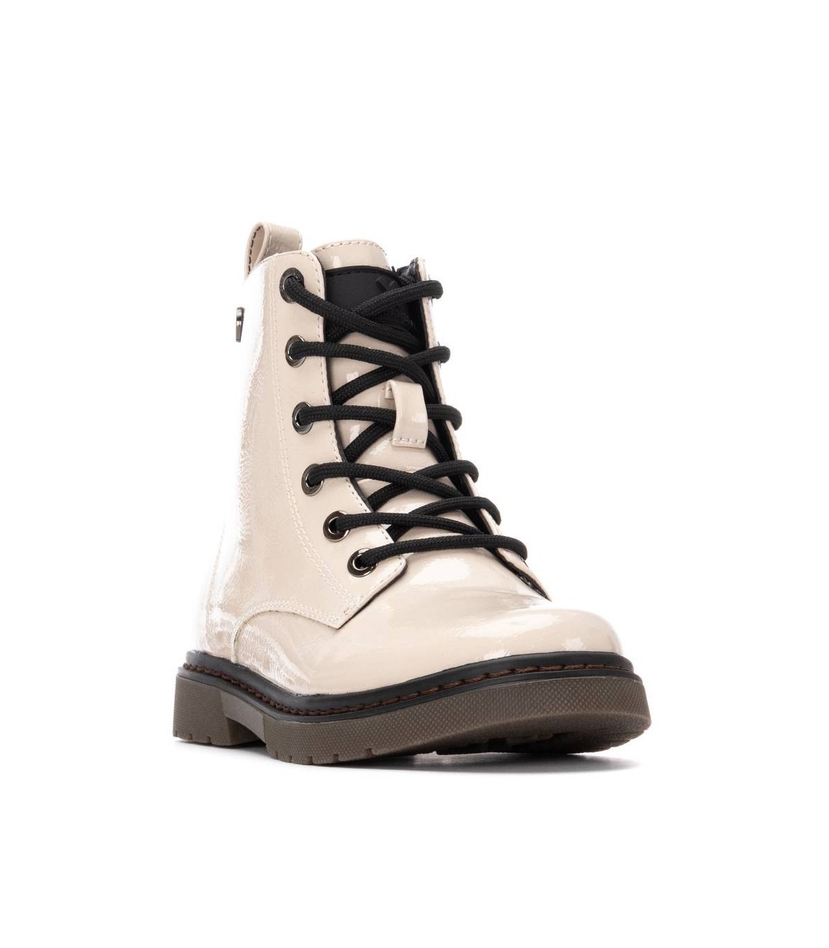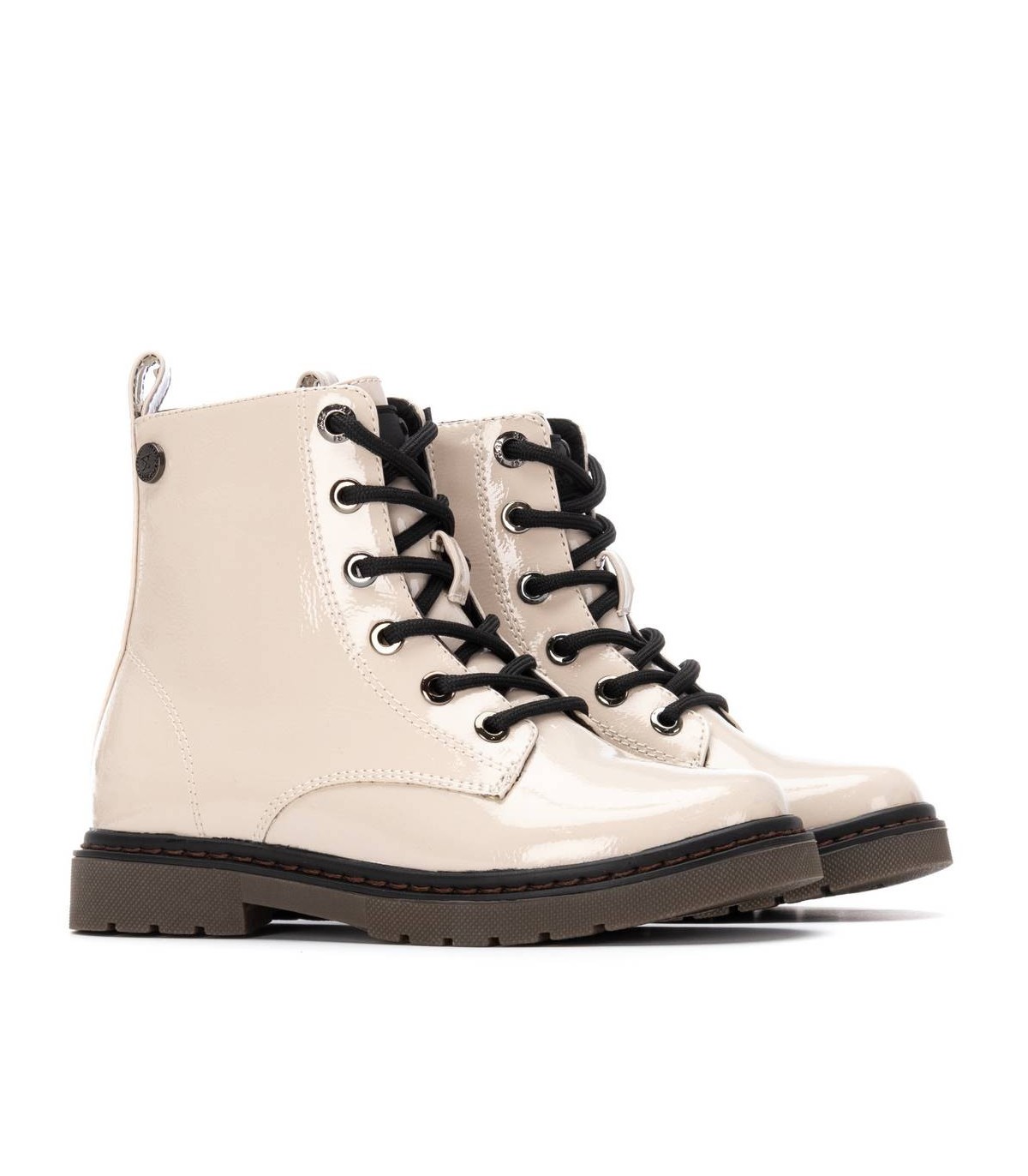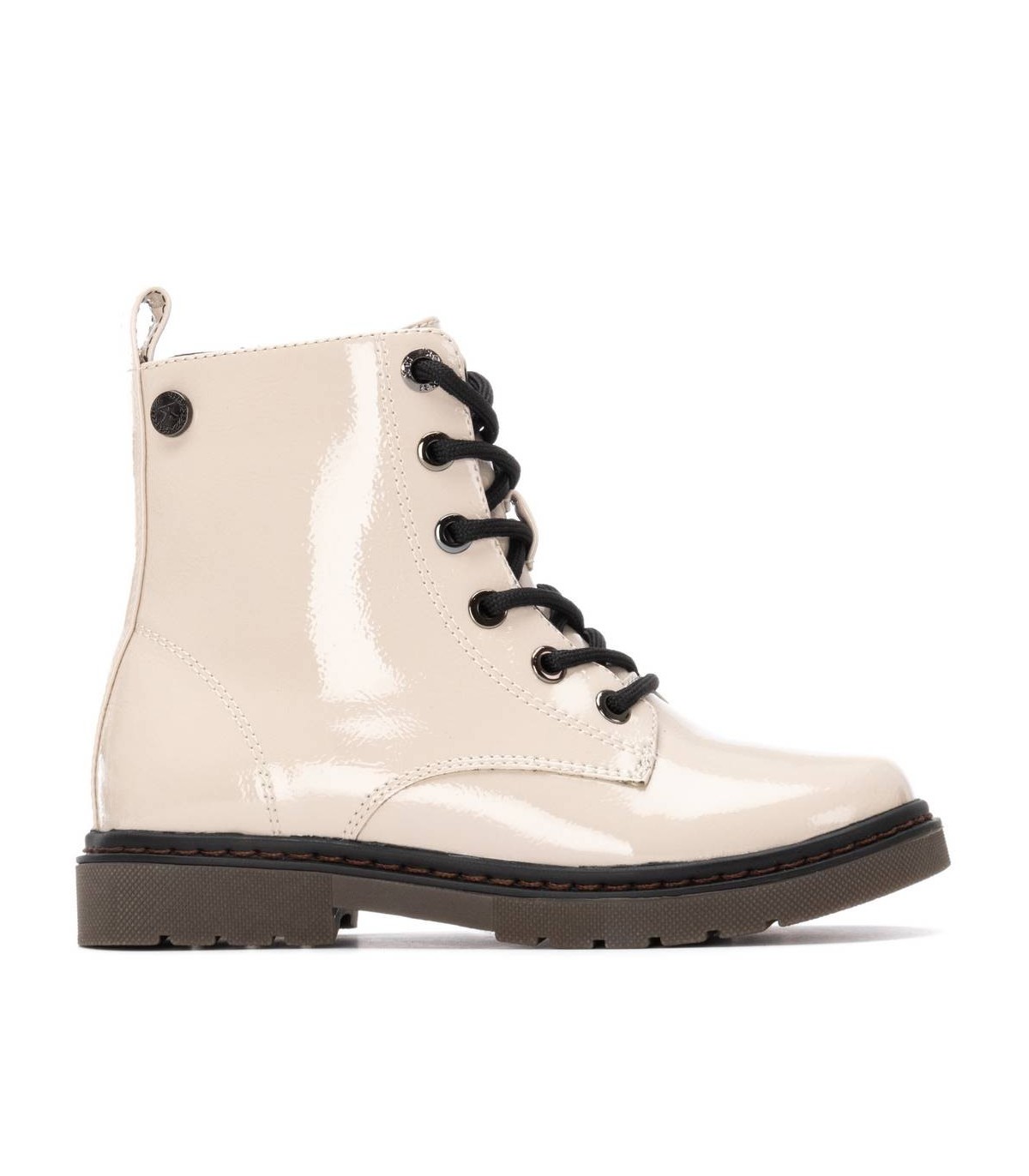 Botín de niña Xti, confeccionado en material charol con un diseño sencillo y elegante. Cuenta con cierre de cremallera para un ajuste cómodo y rápido. Un calzado versátil y moderno, perfecto para aportar estilo a los looks de las más pequeñas en cualquier ocasión. Con suela antideslizante. Este modelo ha obtenido el certificado vegano por la organización mundial PETA (Organización de los derechos de los animales).