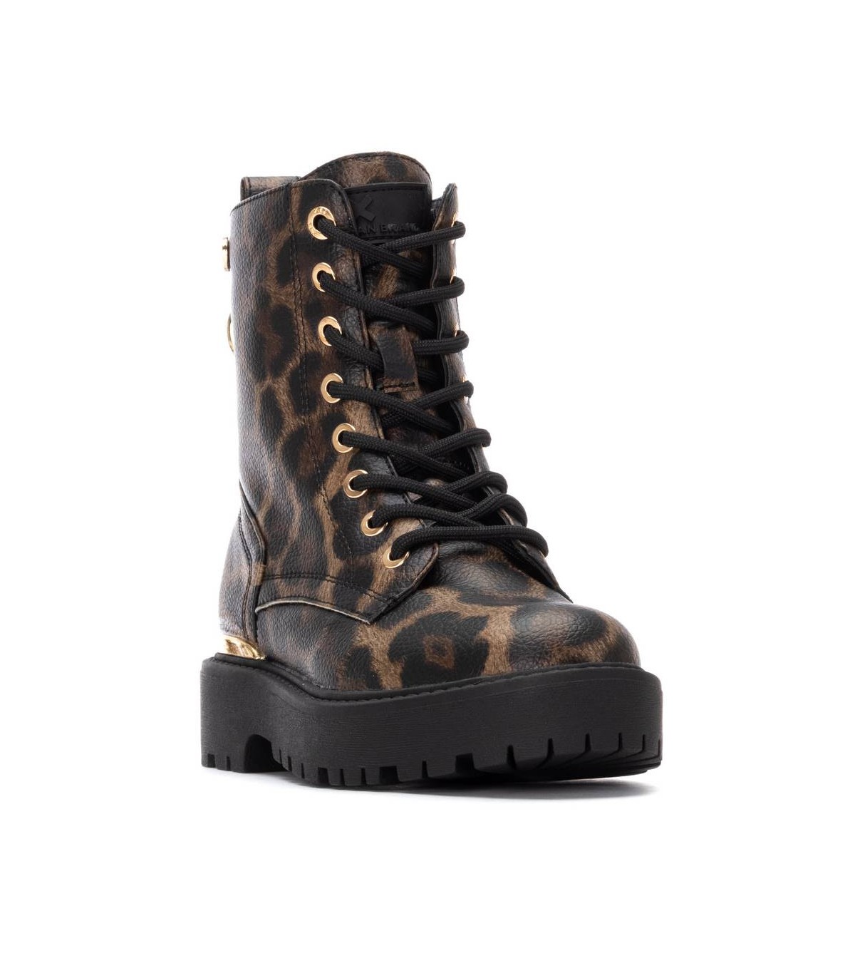 Botín estilo militar de niña, de la marca Xti Kids. Fabricado en material sintético resistente y fácil de limpiar. Cuenta con cordones frontales y cremallera lateral para un calce rápido y cómodo. Presenta un detalle metalizado en el talón que aporta un toque moderno y elegante. Suela de goma que ofrece buen agarre y confort. Perfecto para un look urbano con estilo.