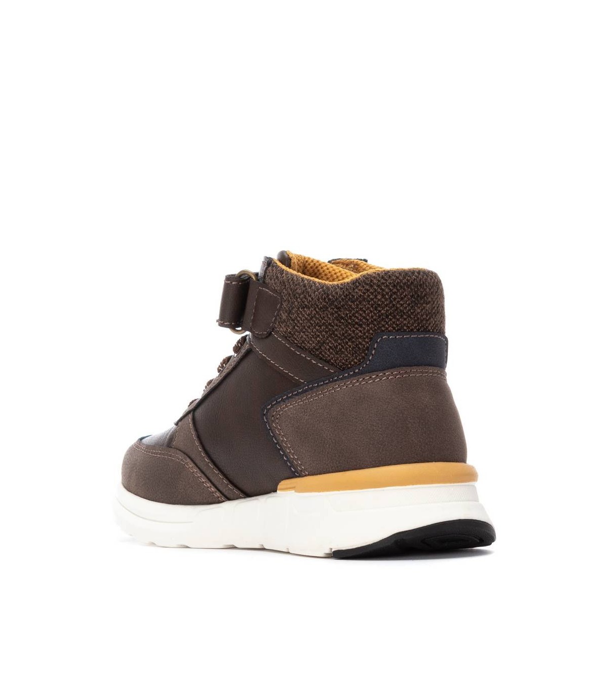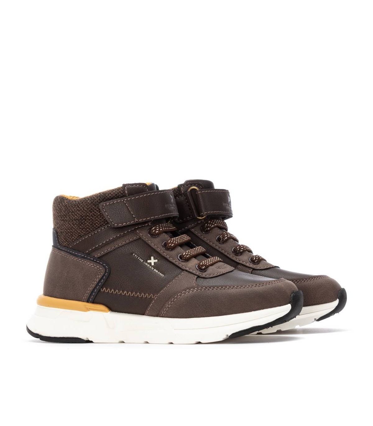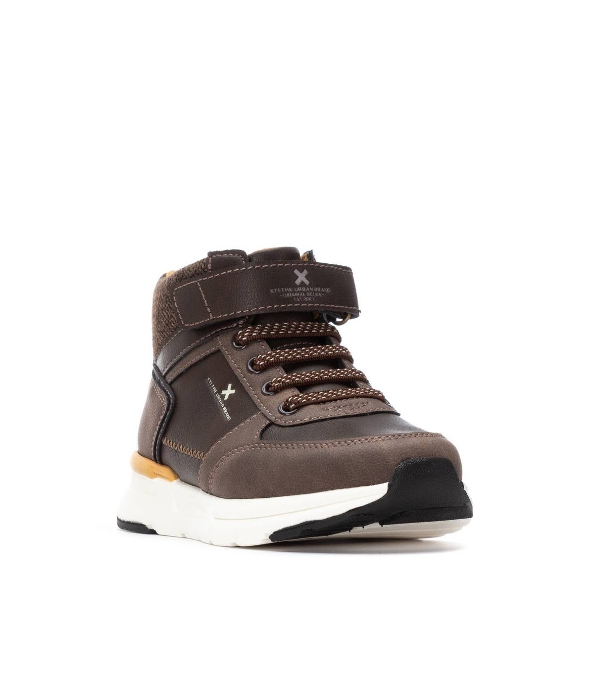 Botín de niño, de la marca Xti Kids. Fabricado en material sintético resistente y fácil de limpiar. Cuenta con cierre de cordones y una tira de velcro en la parte superior de las cordoneras para un ajuste más seguro y cómodo. Suela estilo deportiva que proporciona amortiguación y buen agarre. Ideal para el día a día con un estilo práctico y moderno. Este modelo ha obtenido el certificado vegano por la organización mundial PETA (Organización de los derechos de los animales).