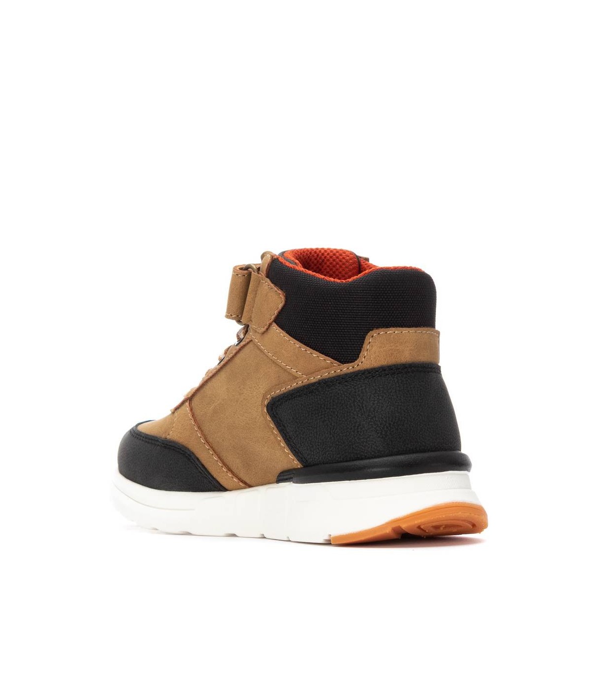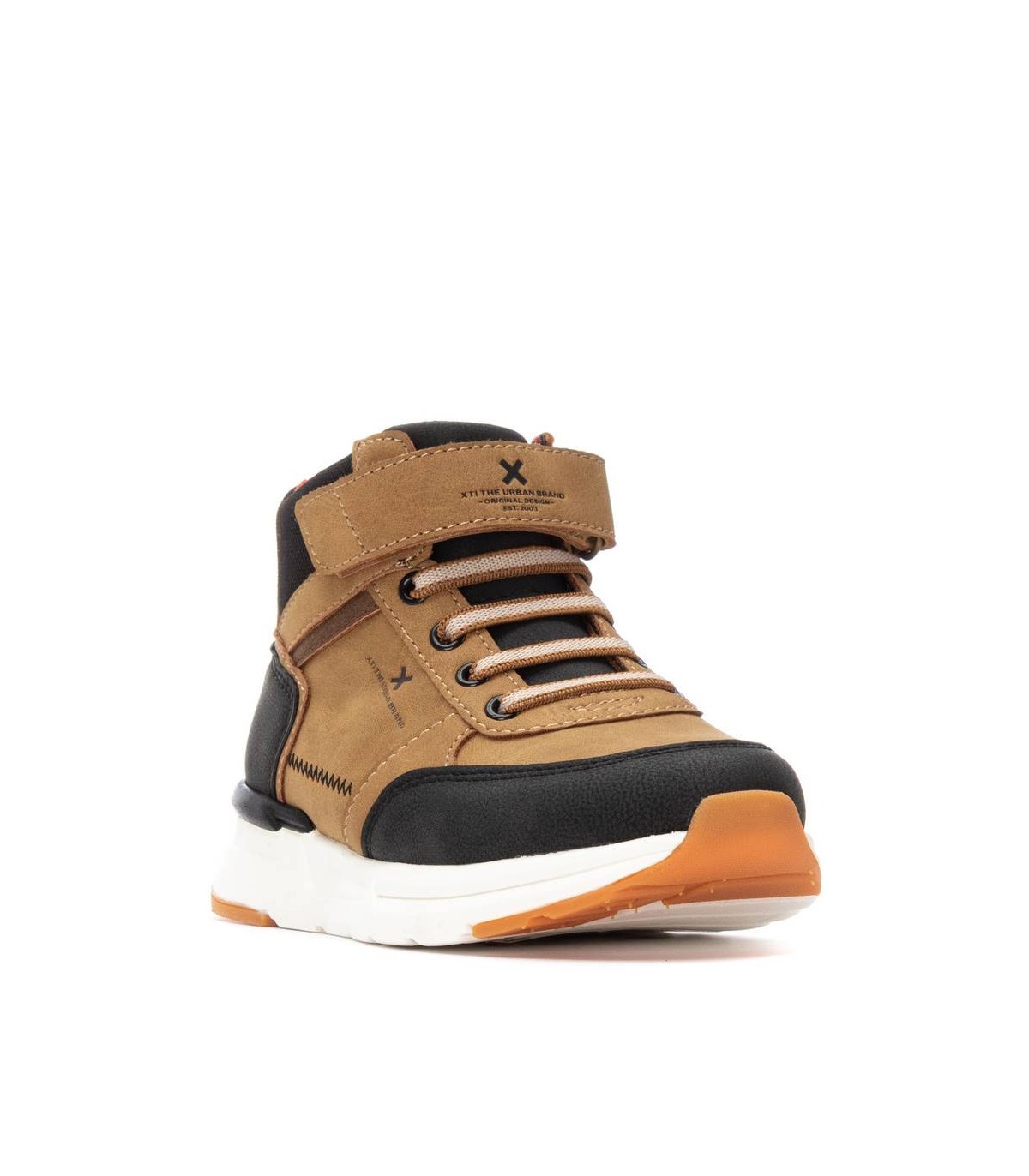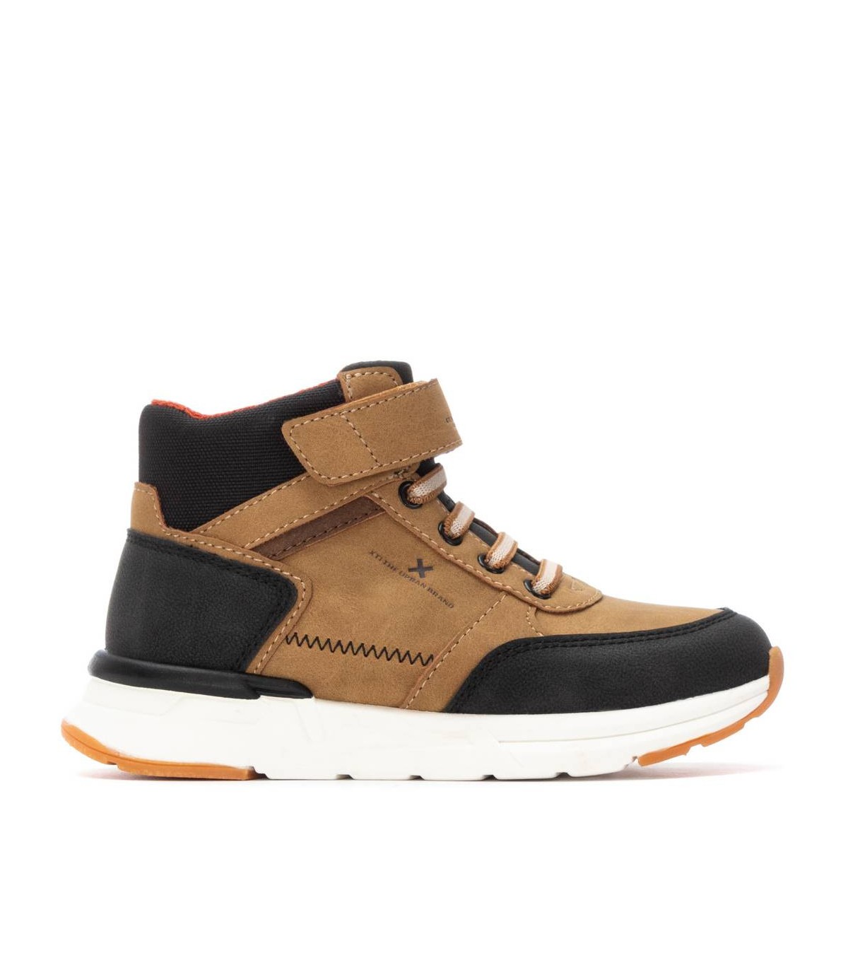 Botín de niño, de la marca Xti Kids. Fabricado en material sintético resistente y fácil de limpiar. Cuenta con cierre de cordones y una tira de velcro en la parte superior de las cordoneras para un ajuste más seguro y cómodo. Suela estilo deportiva que proporciona amortiguación y buen agarre. Ideal para el día a día con un estilo práctico y moderno. Este modelo ha obtenido el certificado vegano por la organización mundial PETA (Organización de los derechos de los animales).
