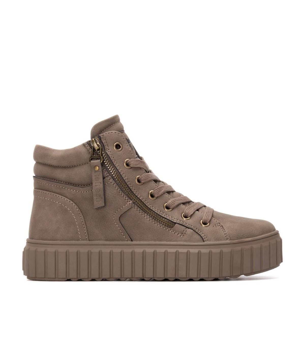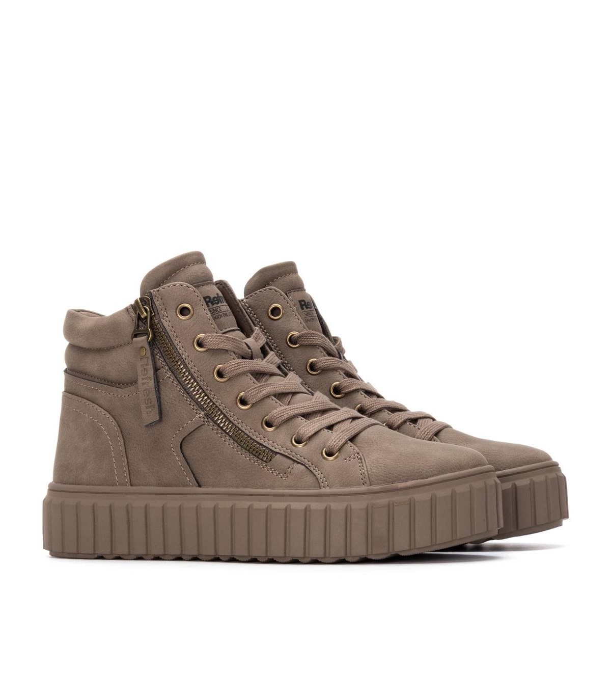 Zapatilla tipo Botín de mujer, de la marca Refresh. Fabricada en material que imita a la piel. Cierre mediante cremallera lateral con cordones regulables para un mejor ajuste. Gruesa suela de goma antideslizante. Con plantilla extraíble. Este modelo ha obtenido el certificado vegano por la organización mundial PETA (Organización de los derechos de los animales).