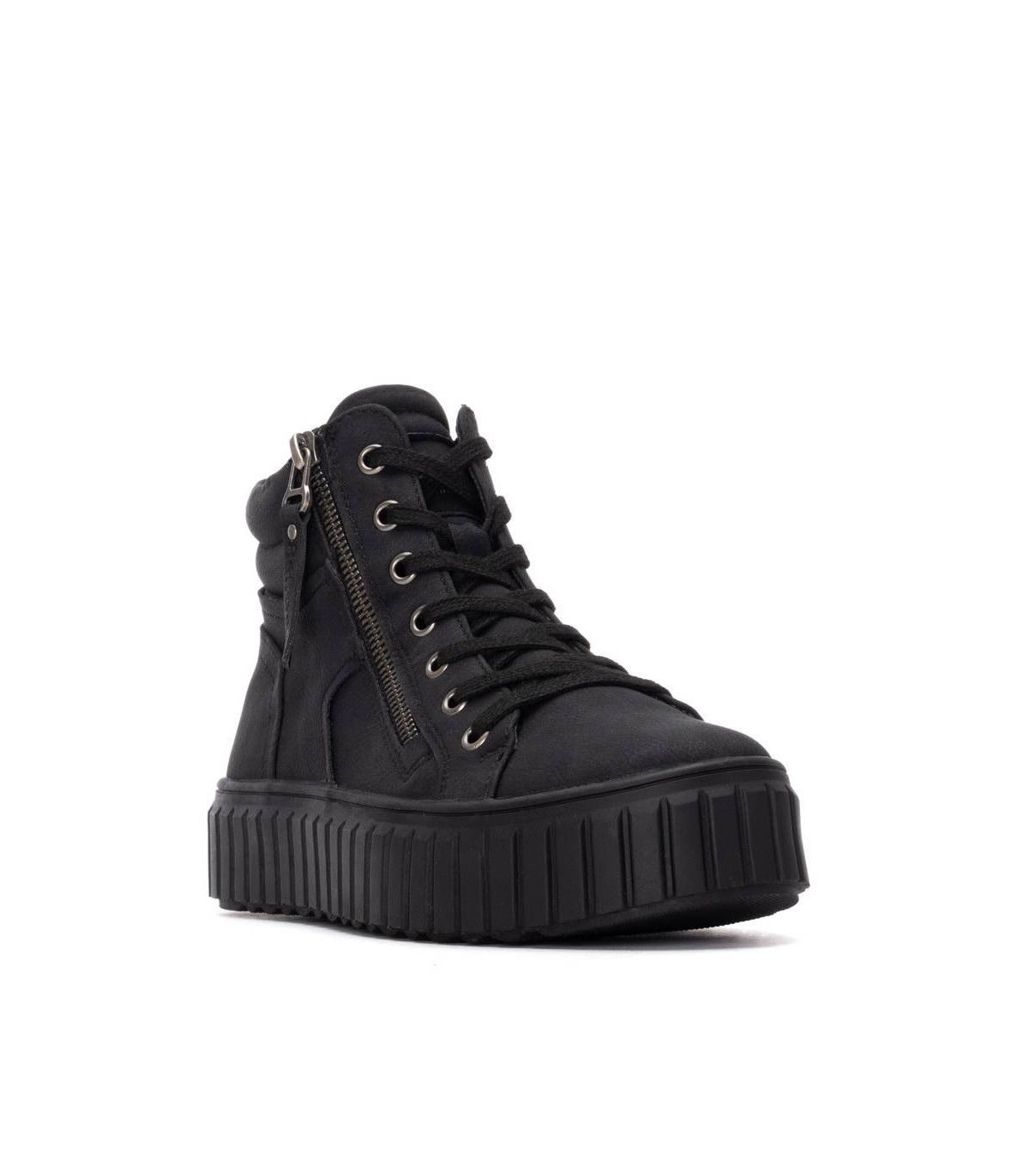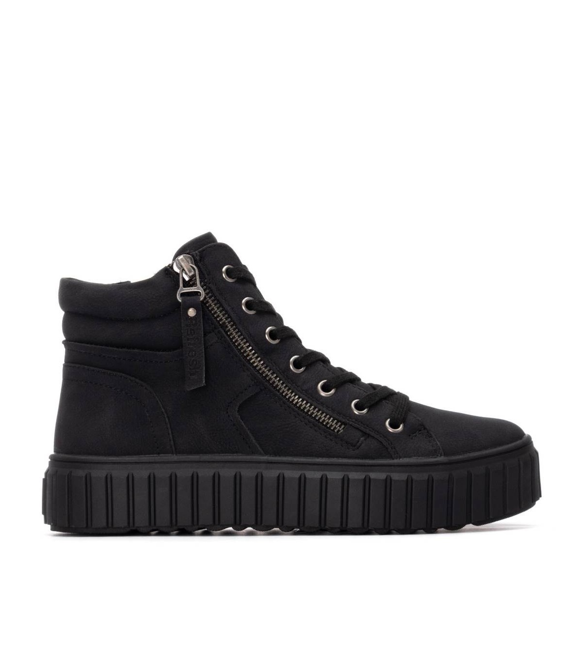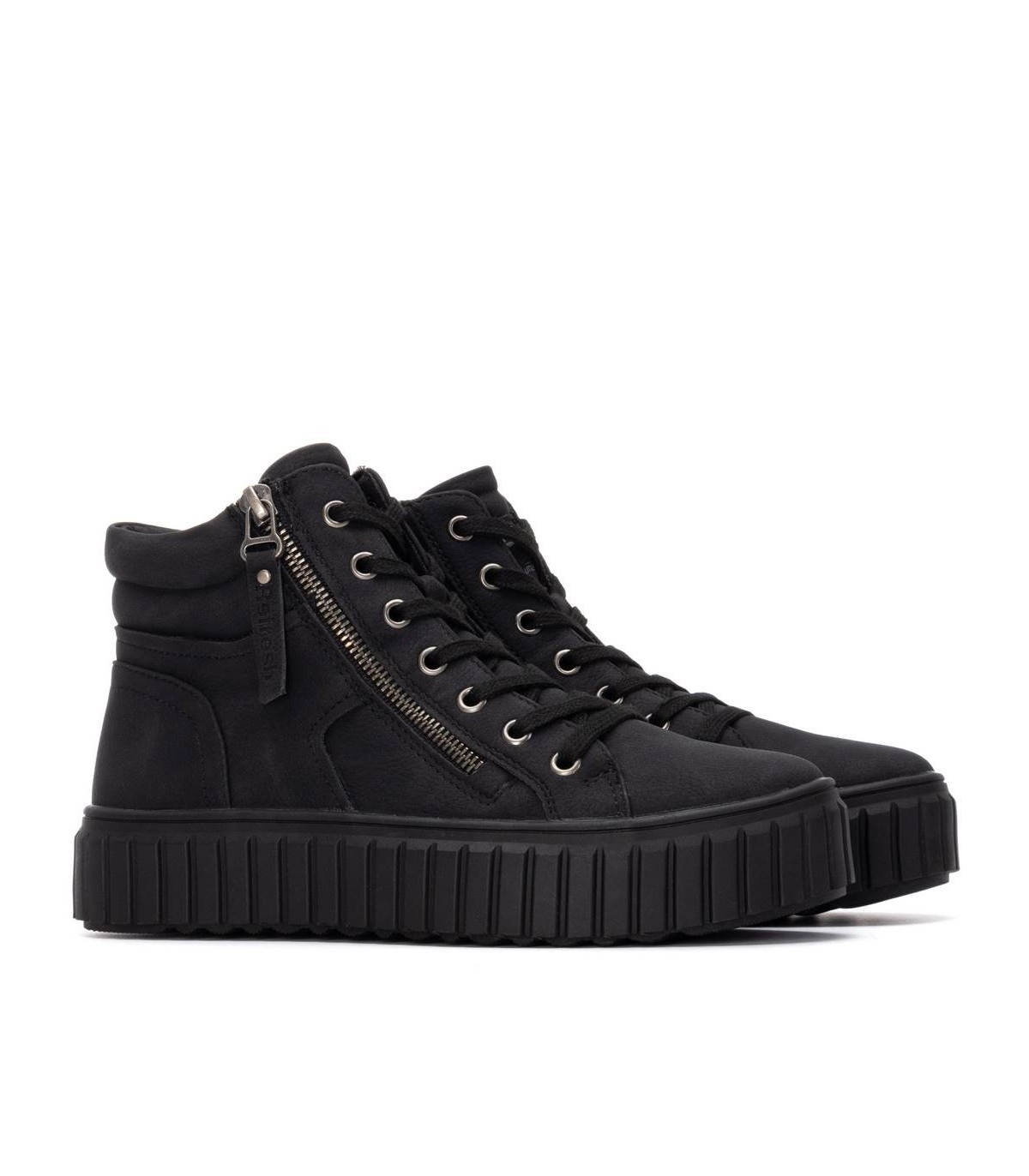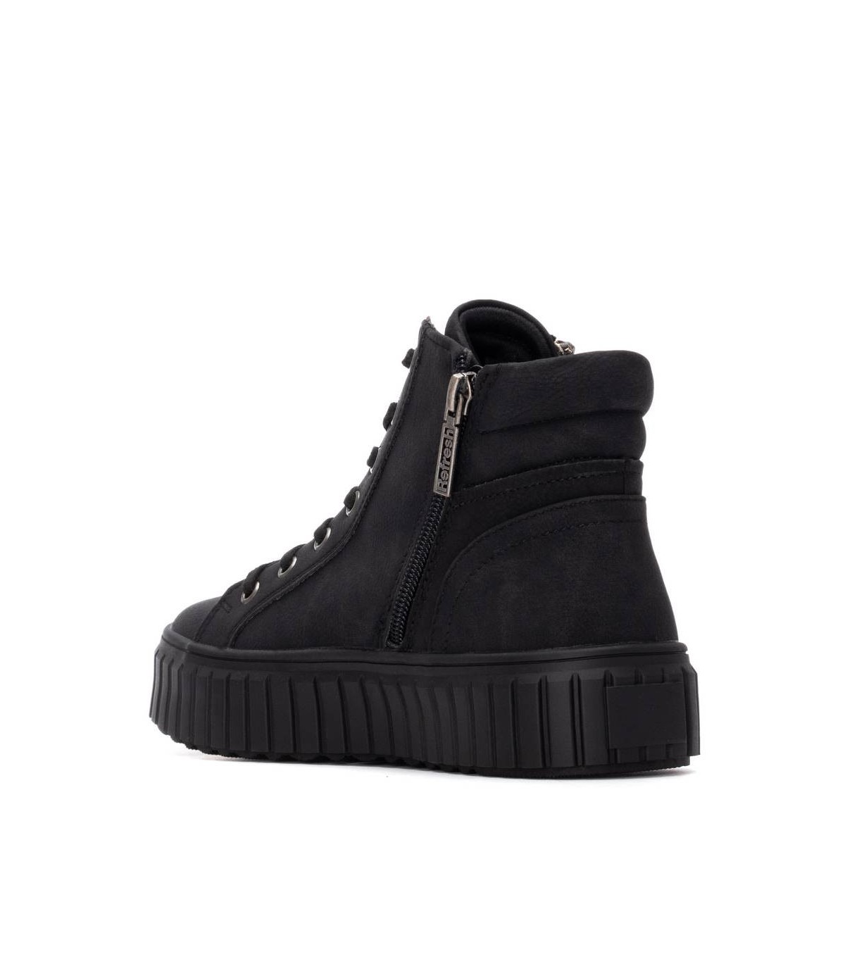 Zapatilla tipo Botín de mujer, de la marca Refresh. Fabricada en material que imita a la piel. Cierre mediante cremallera lateral con cordones regulables para un mejor ajuste. Gruesa suela de goma antideslizante. Con plantilla extraíble. Este modelo ha obtenido el certificado vegano por la organización mundial PETA (Organización de los derechos de los animales).