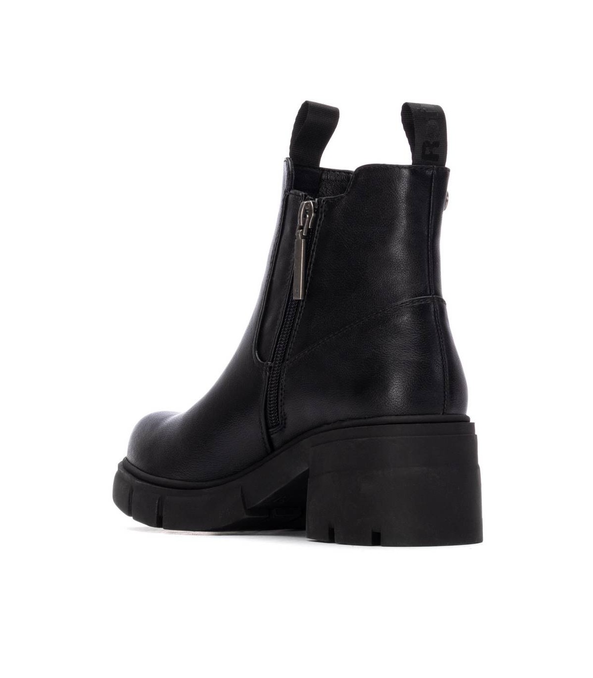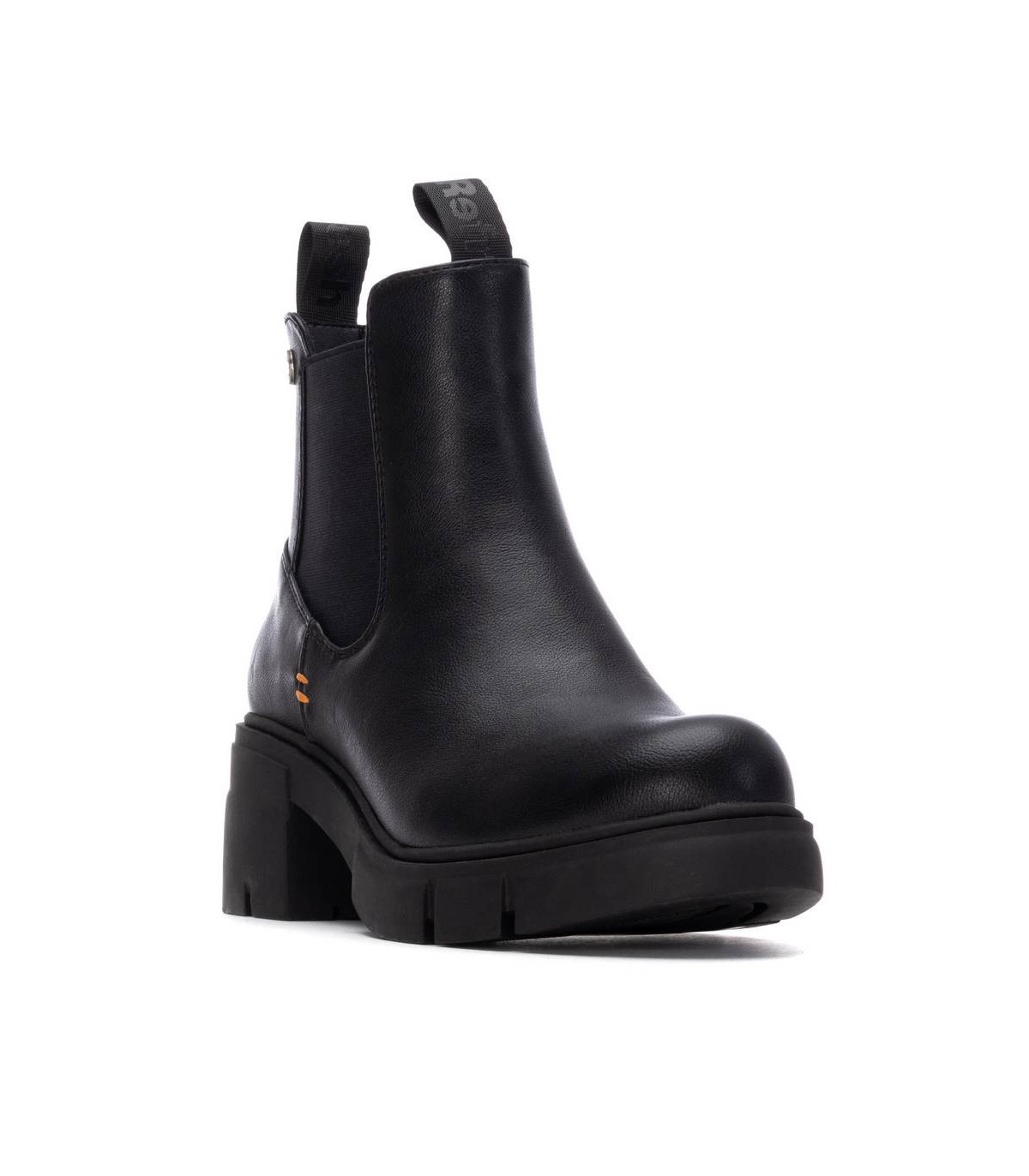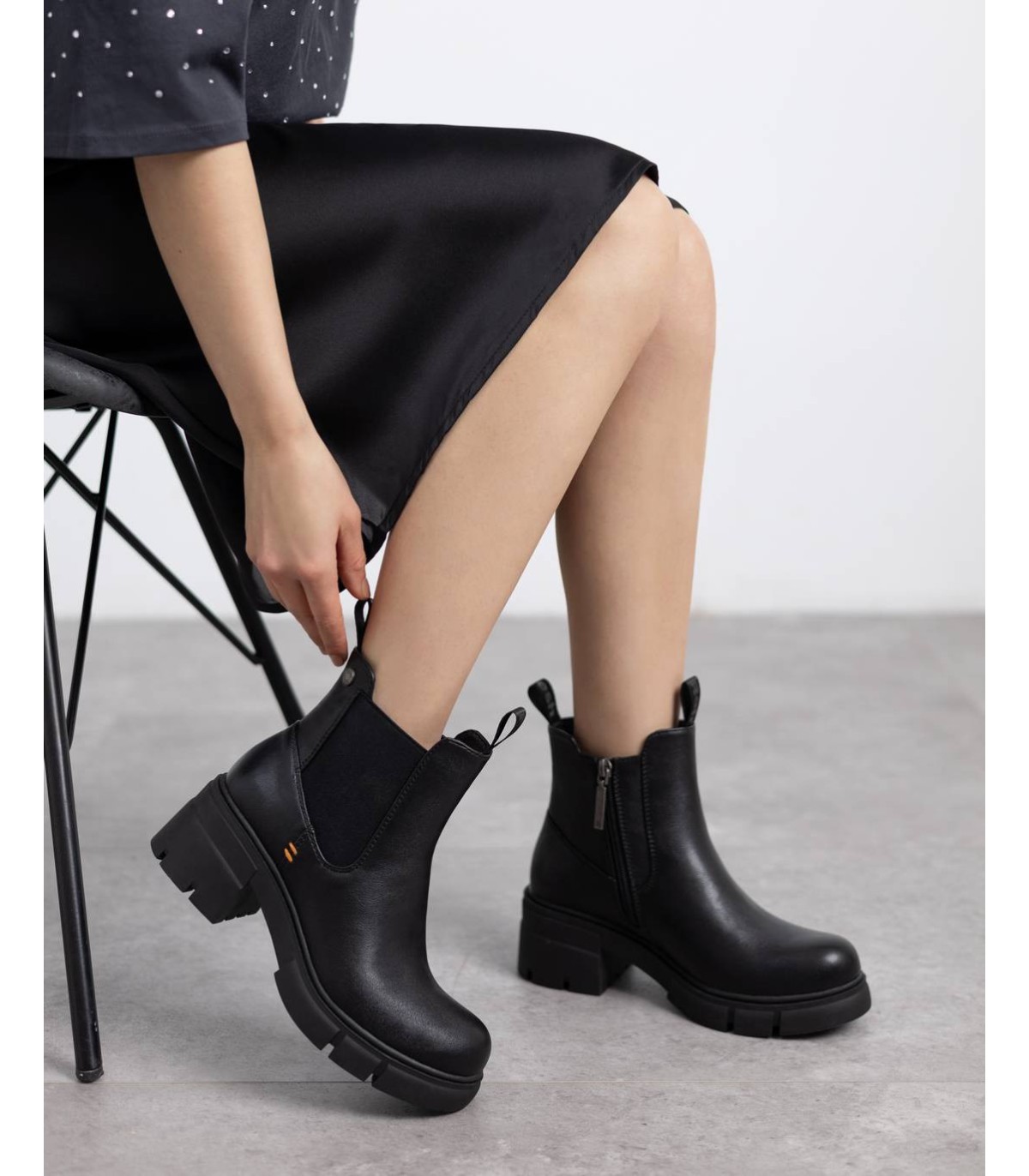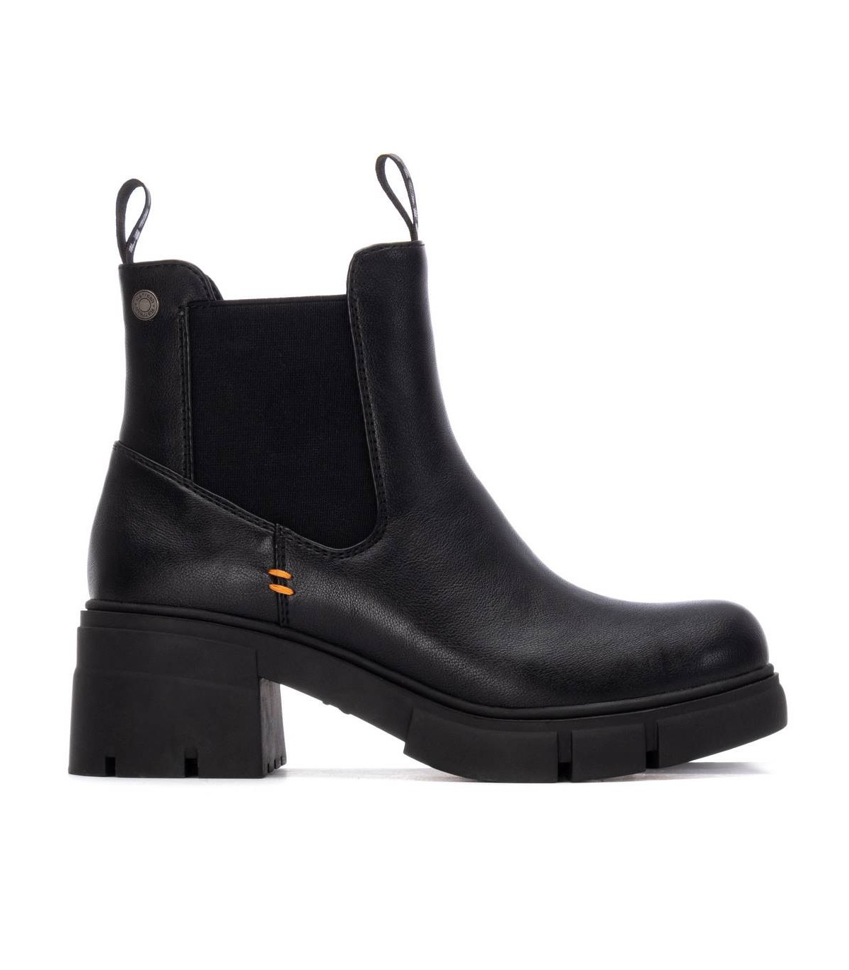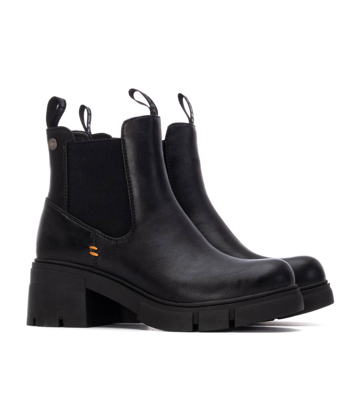 Botín de mujer, de la marca Refresh. Fabricada en material que imita a la piel. Botín tipo chelsea con cremallera interior. Tiradores delantero y trasero para facilitar la puesta. Cómoda planta. Tacón en bloque de 7 cm. Suela de goma antideslizante. Plantilla extraíble. Este modelo ha obtenido el certificado vegano por la organización mundial PETA (Organización de los derechos de los animales).