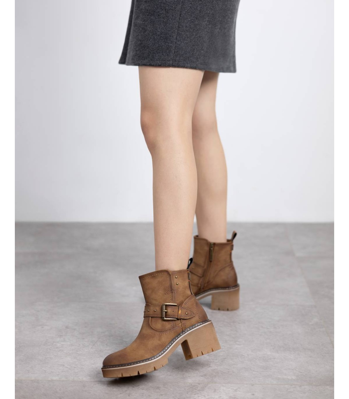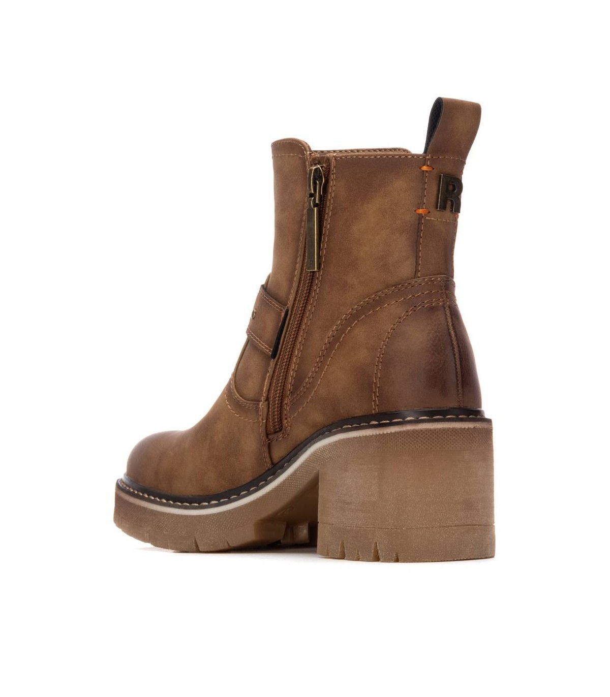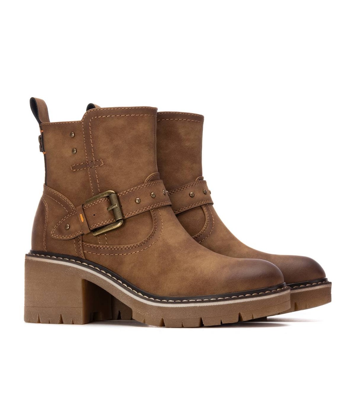 Botín de mujer, de la marca Refresh. Fabricado en material que imita a la piel. Cierre mediante cremallera interior con cordones tubulares para un mejor ajuste. Tirador trasero para facilitar la puesta. Con correa decorativa en empeine. Tacón de 7 cm. Plantilla extraíble. Este modelo ha obtenido el certificado vegano por la organización mundial PETA (Organización de los derechos de los animales).