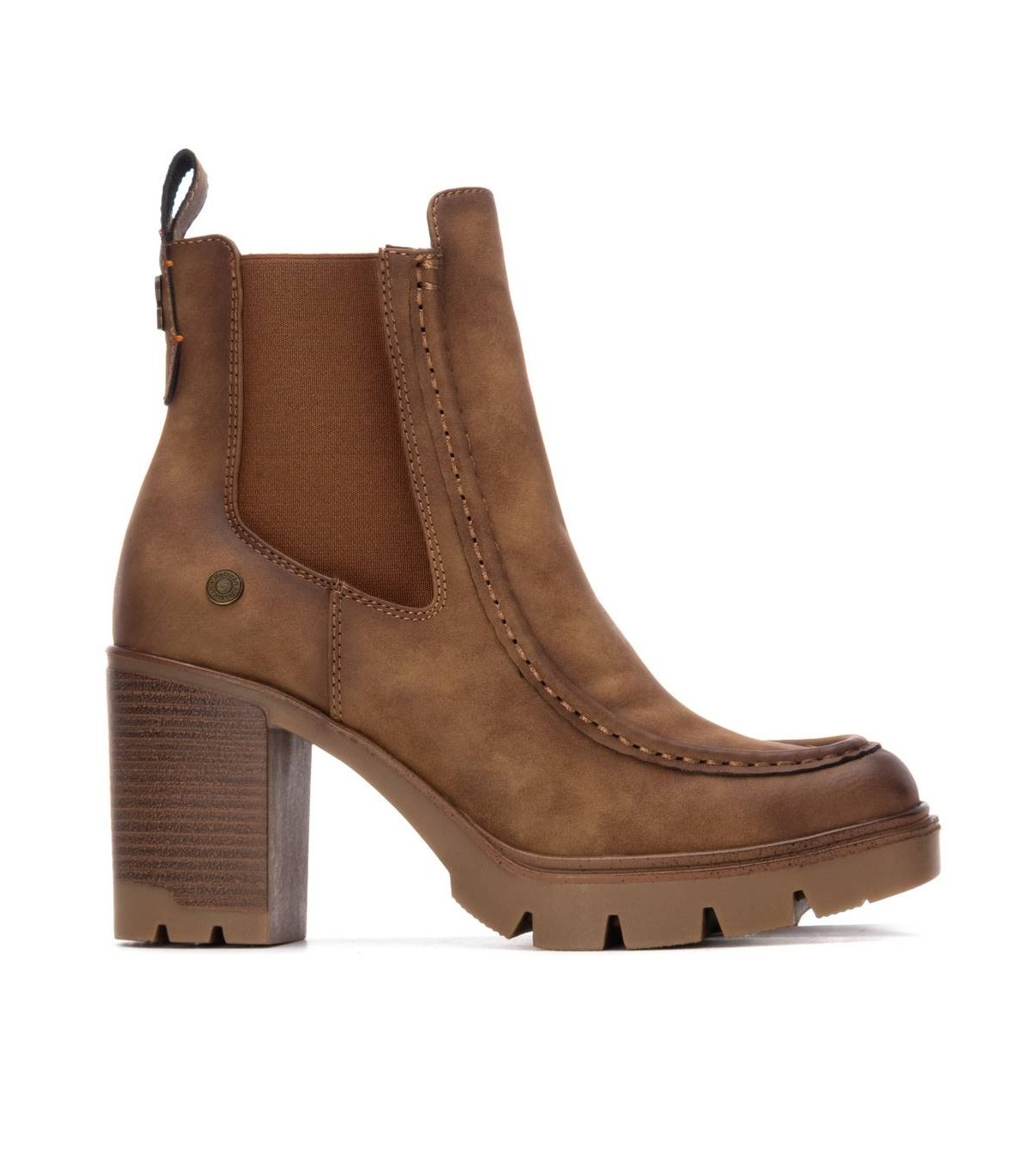 Botín de mujer, de la marca Refresh. Fabricado en material que imita a la piel. Cierre mediante cremallera interior. Tirador trasero para facilitar la puesta. Botín tipo chelsea con tacón de 11 cm. Suela de goma antideslizante. Plantilla extraíble. Este modelo ha obtenido el certificado vegano por la organización mundial PETA (Organización de los derechos de los animales).