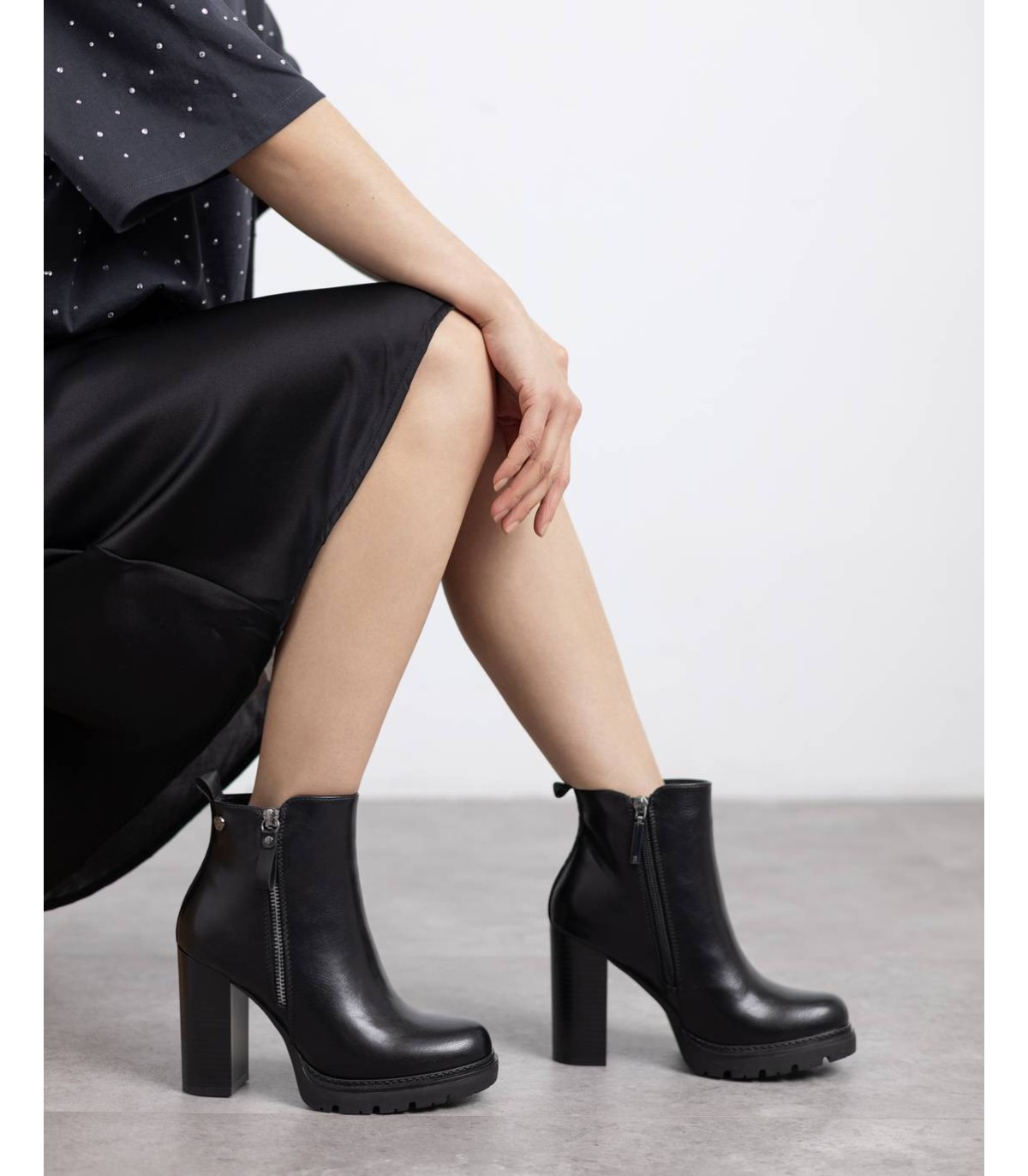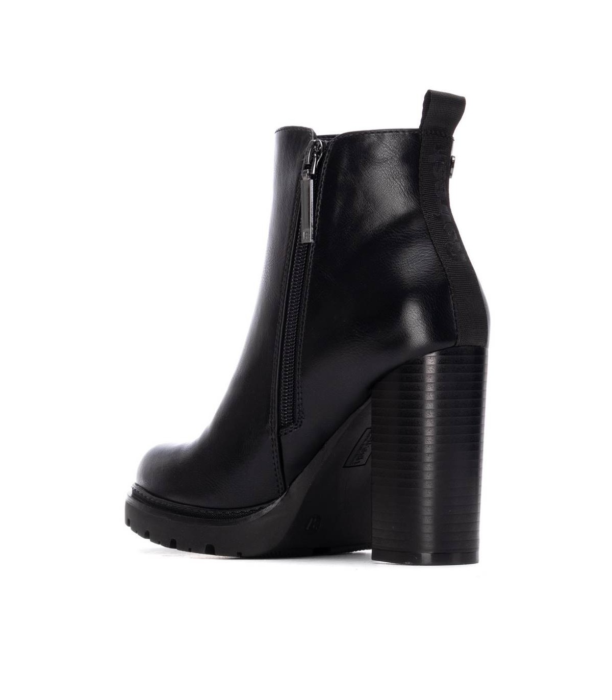 Botín de mujer, de la marca Refresh. Fabricado en material que imita a la piel. Cremallera lateral decorativa. Cierre mediante cremallera interior. Tirador trasero para facilitar la puesta. Suela de goma antideslizante. Tacón de 10 cm. Un Botín versátil para completar tus looks esta temporada. Este modelo ha obtenido el certificado vegano por la organización mundial PETA (Organización de los derechos de los animales).