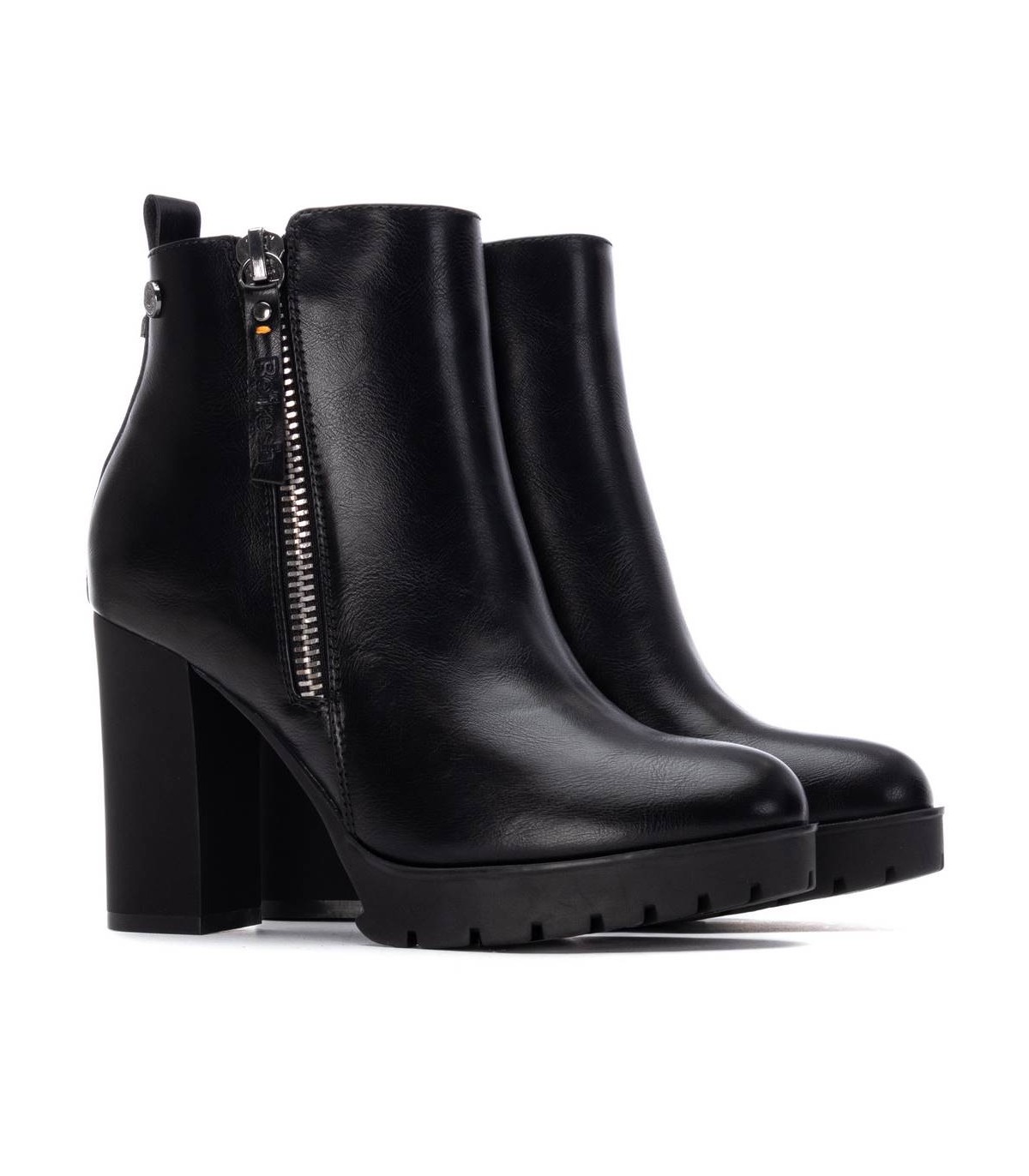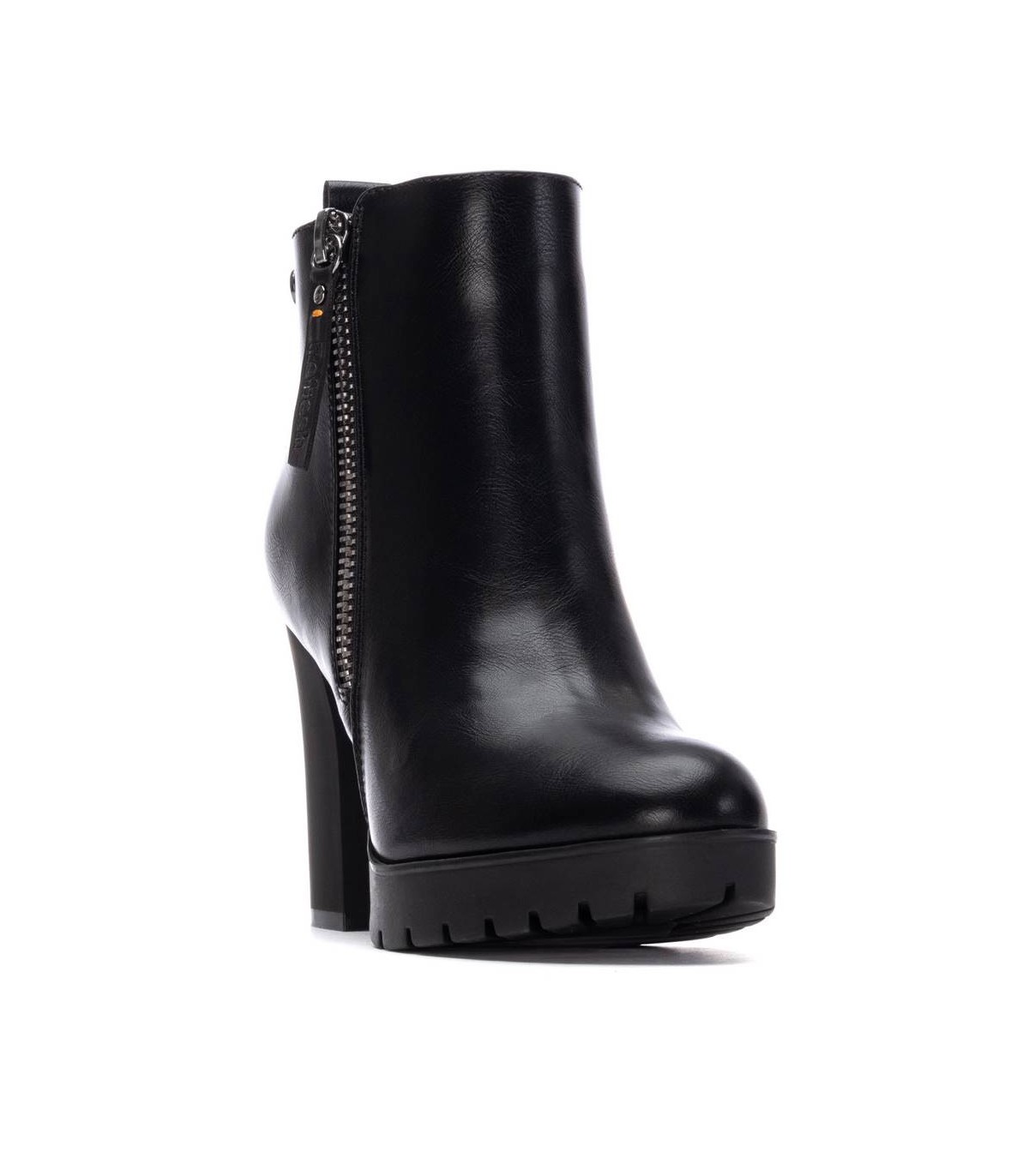 Botín de mujer, de la marca Refresh. Fabricado en un material que imita la piel. Cierre mediante cremallera interior. Tacón 10 cm con plataforma antideslizante para mayor comodidad. Un básico para completar los mejores looks de la temporada. Este modelo ha obtenido el certificado vegano por la organización mundial PETA (Organización de los derechos de los animales).
