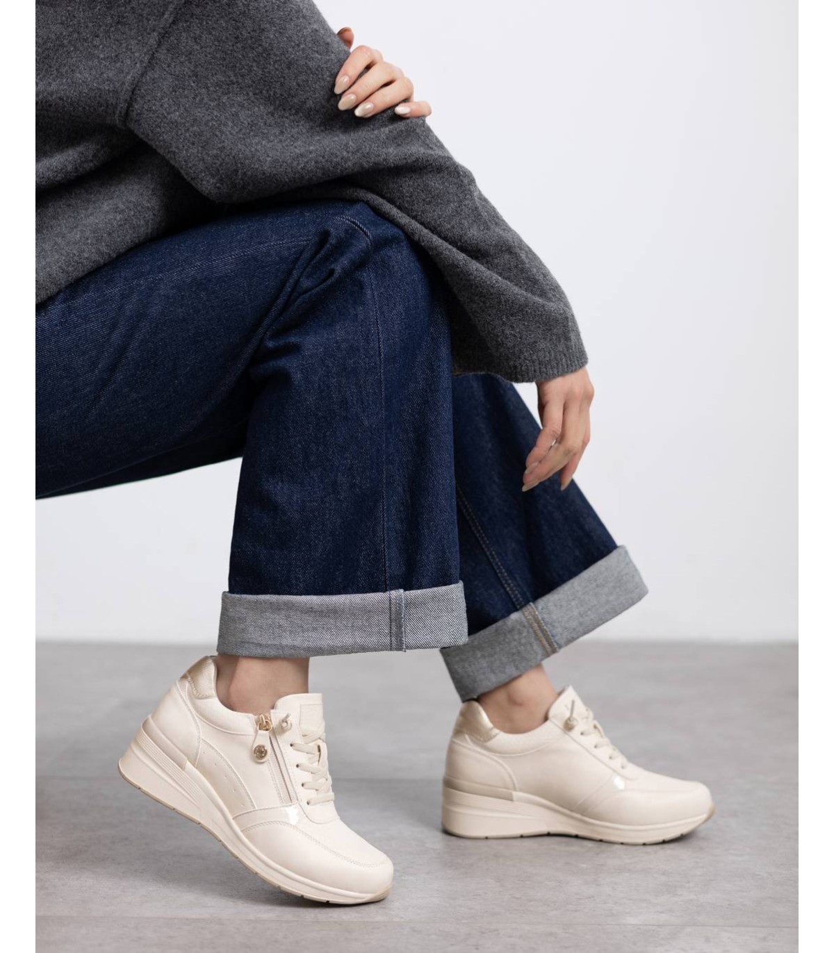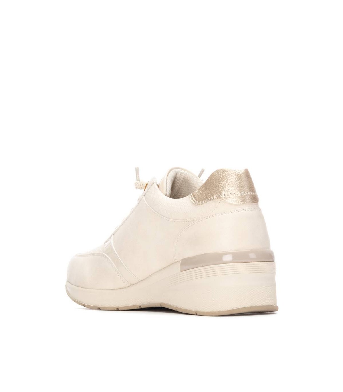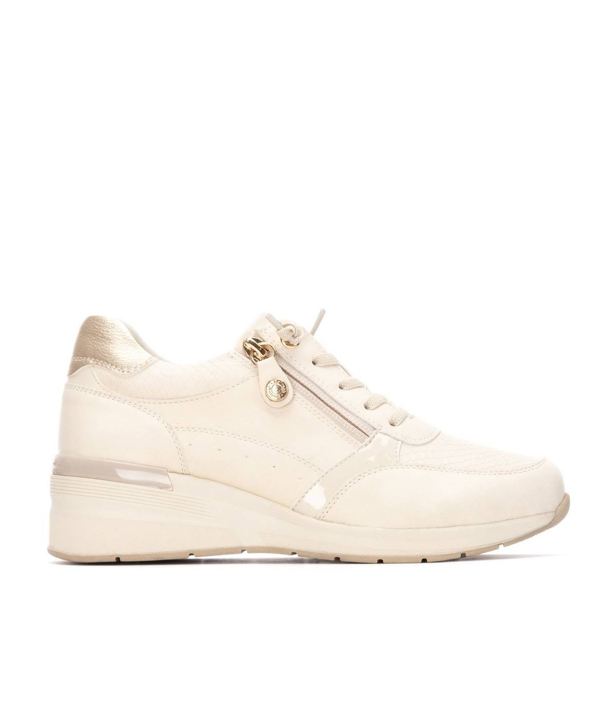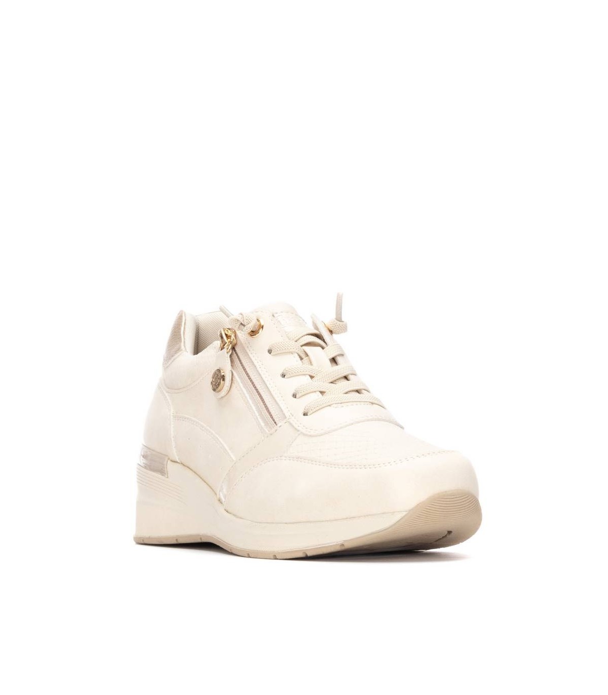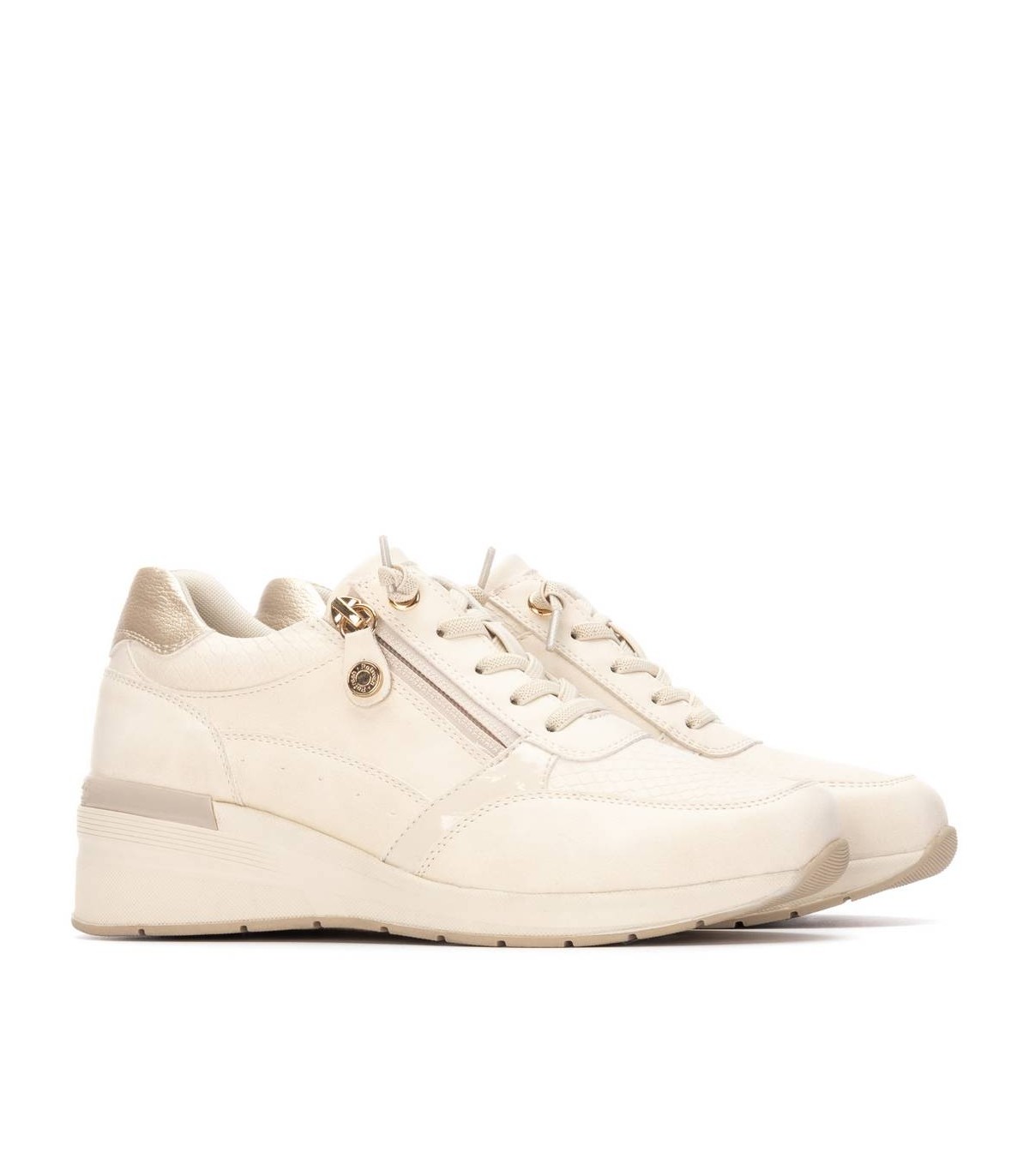 Zapatilla de mujer, de la marca Refresh. Fabricada en material que imita a la piel con detalles en estampado de serpiente. Cierre mediante cremallera lateral. Cordones elásticos al tono. Una zapatilla con cuña ideal para todos los planes de esta temporada. Con plantilla extraíble. Este modelo ha obtenido el certificado vegano por la organización mundial PETA (Organización de los derechos de los animales).