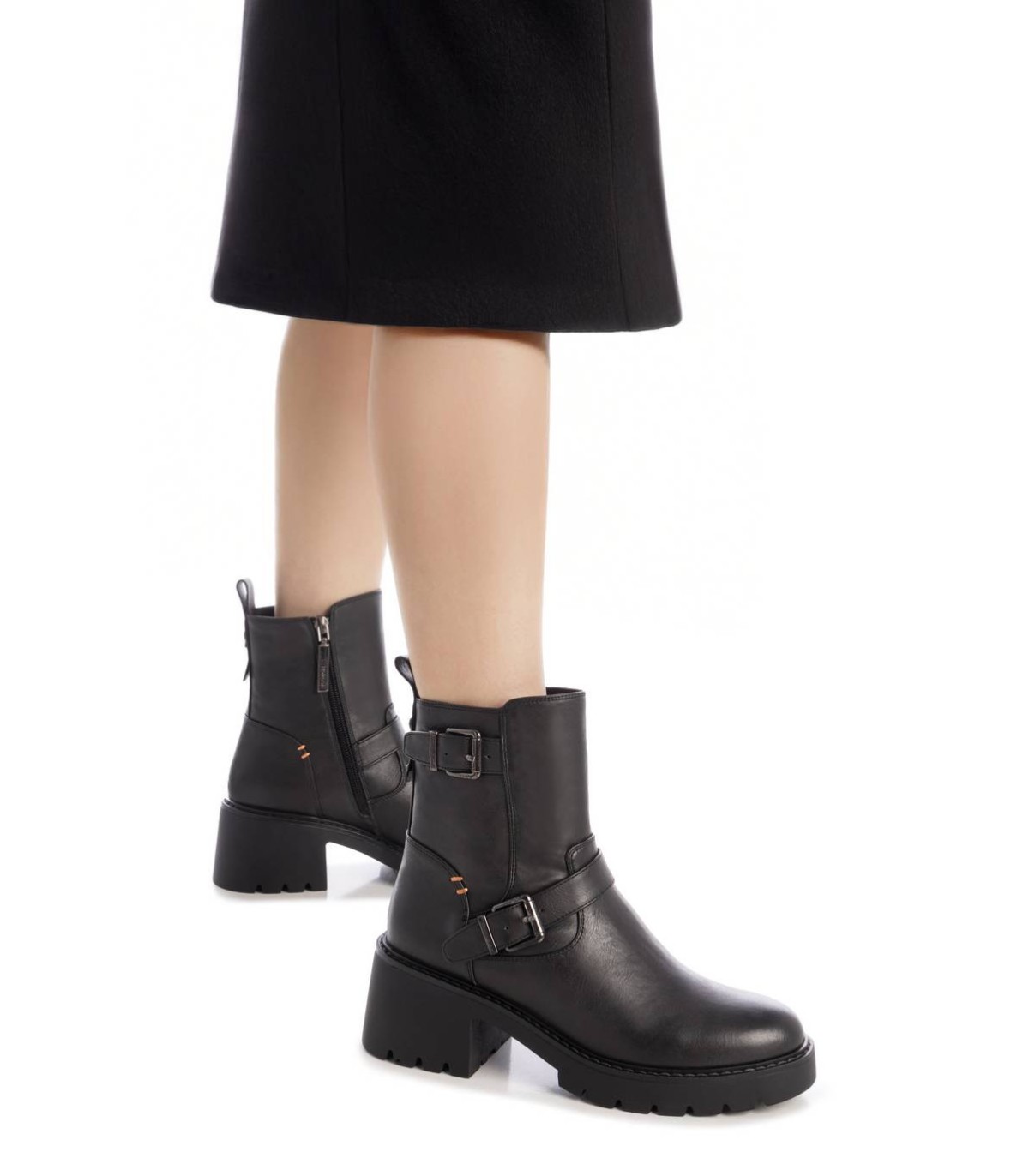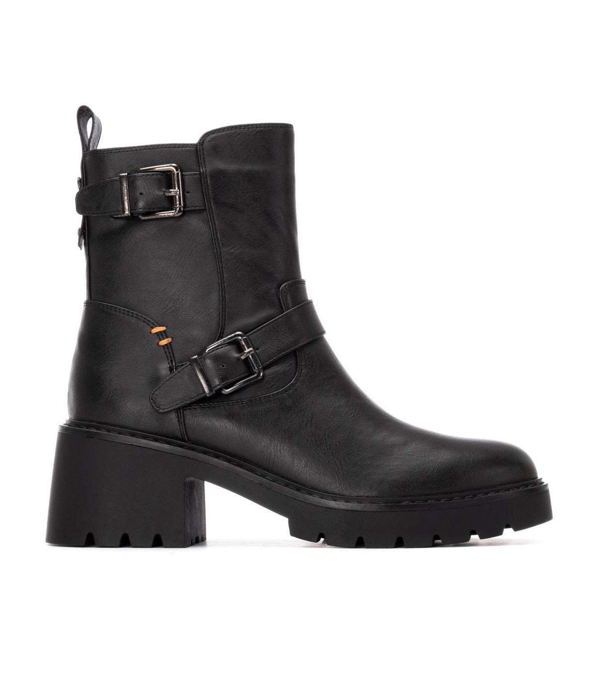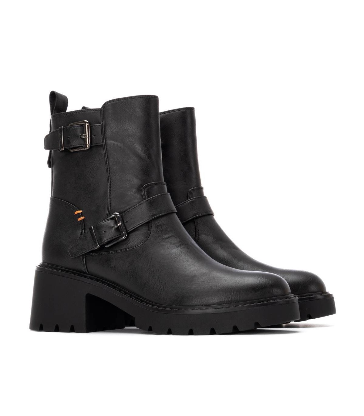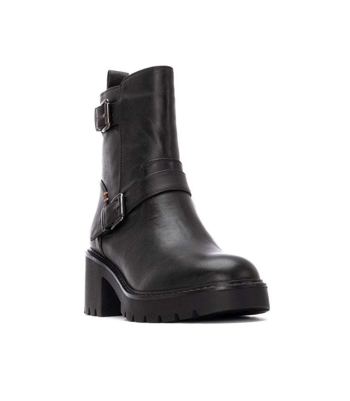 Botín de mujer, de la marca Refresh. Fabricado en un material que imita la piel. Cierre mediante cremallera interior. Tirador trasero para facilitar la puesta. Correas con hebillas decorativas. Suela de goma antideslizante. Un básico que no puede faltar en tu armario.Plantilla extraíble. Este modelo ha obtenido el certificado vegano por la organización mundial PETA (Organización de los derechos de los animales).
