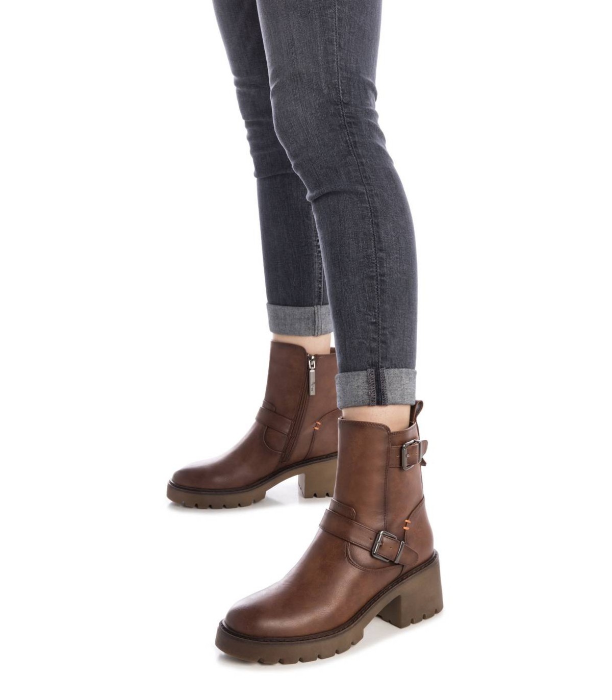 Botín de mujer, de la marca Refresh. Fabricado en un material que imita la piel. Cierre mediante cremallera interior. Tirador trasero para facilitar la puesta. Correas con hebillas decorativas. Suela de goma antideslizante. Un básico que no puede faltar en tu armario.Plantilla extraíble. Este modelo ha obtenido el certificado vegano por la organización mundial PETA (Organización de los derechos de los animales).