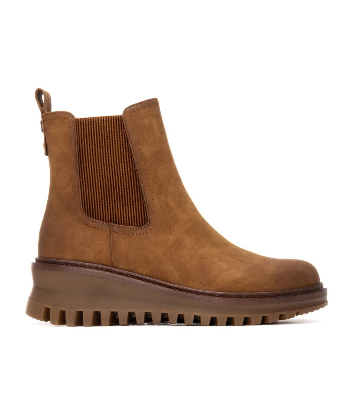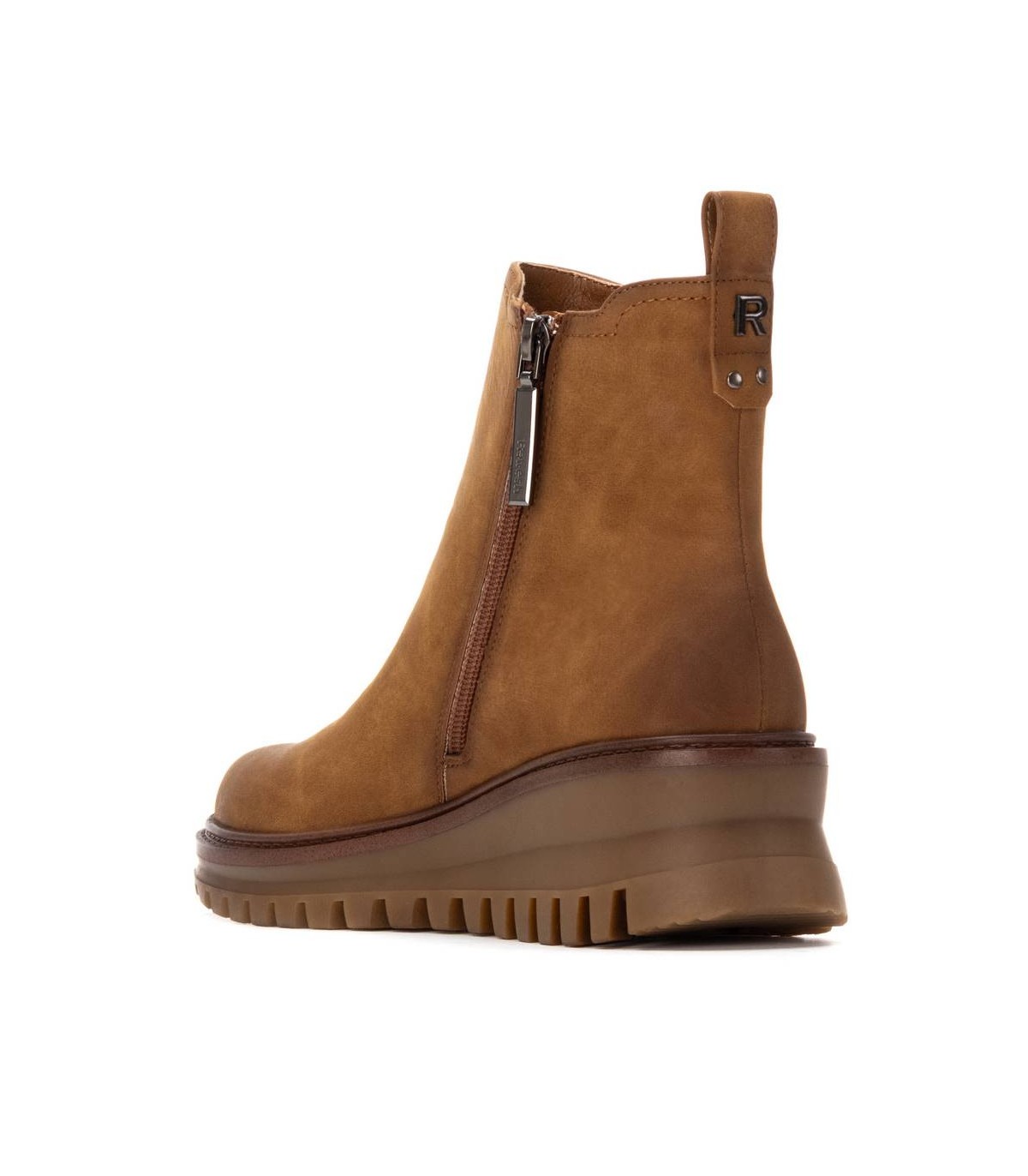 Botín de mujer, de la marca Refresh. Fabricado en material que imita a la piel. Cierre mediante cremallera interior. Tirador trasero para facilitar el calce. Suela volumen de goma antideslizante. Plantilla extraíble. Este modelo ha obtenido el certificado vegano por la organización mundial PETA (Organización de los derechos de los animales).