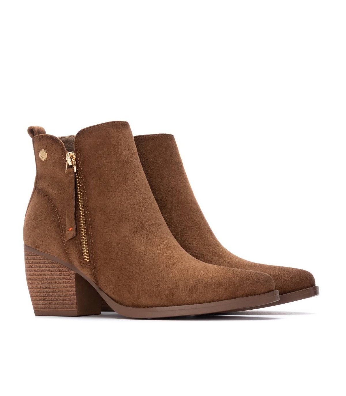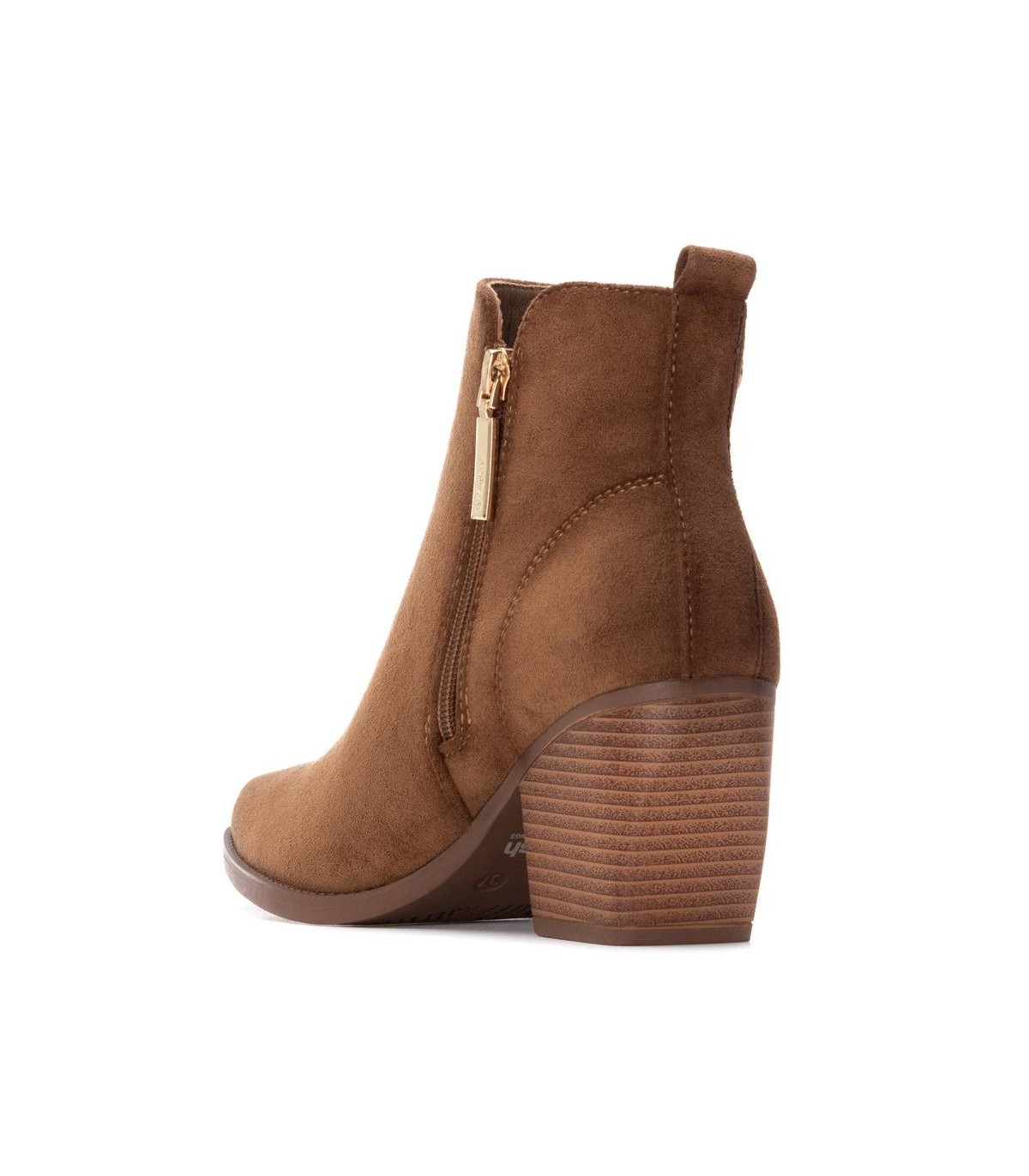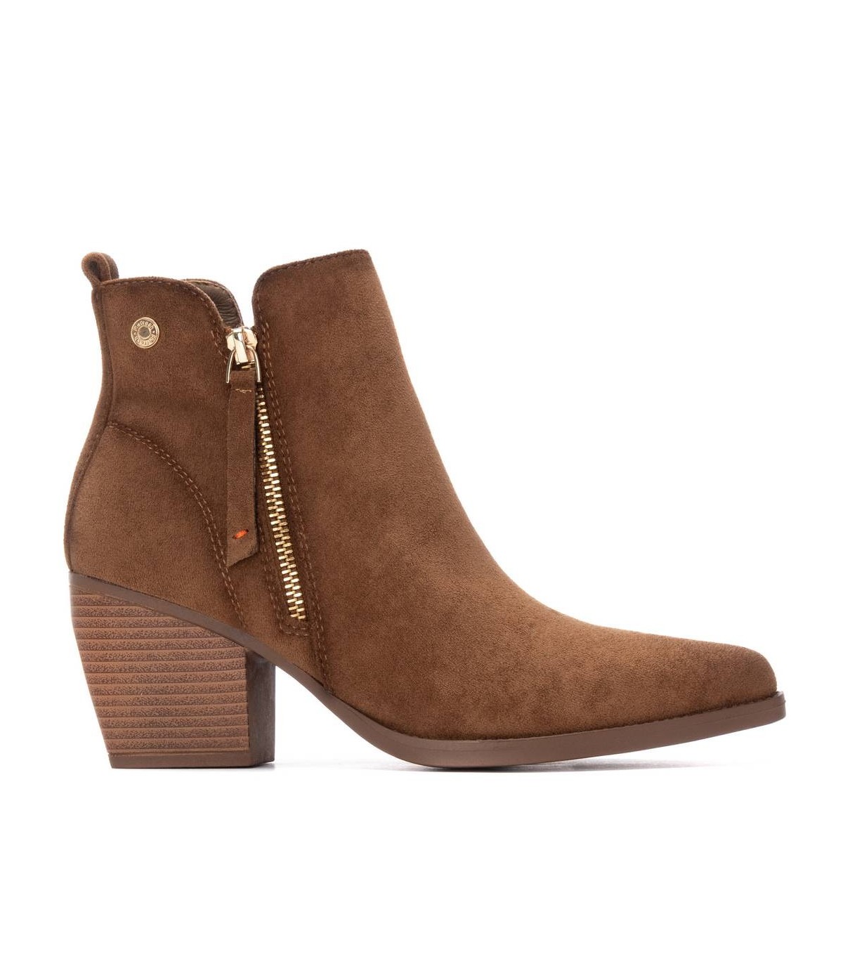 Botín de mujer, de la marca Refresh. Fabricado en material que imita a la piel. Cierre mediante cremallera interior. Cremallera lateral decorativa. Tirador trasero para facilitar el calce. Tacón tipo cowboy con suela de goma. Plantilla extraíble. Este modelo ha obtenido el certificado vegano por la organización mundial PETA (Organización de los derechos de los animales).
