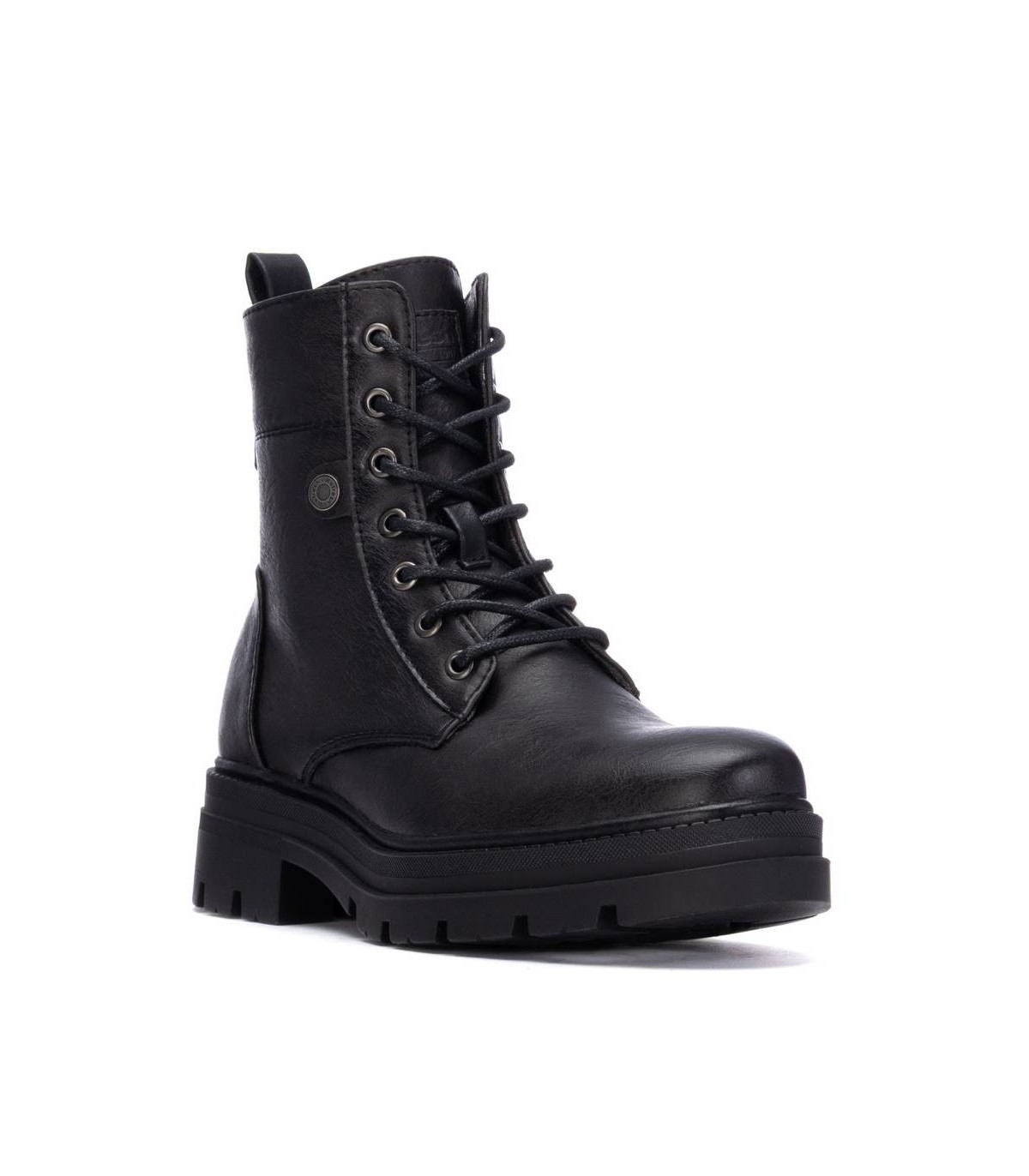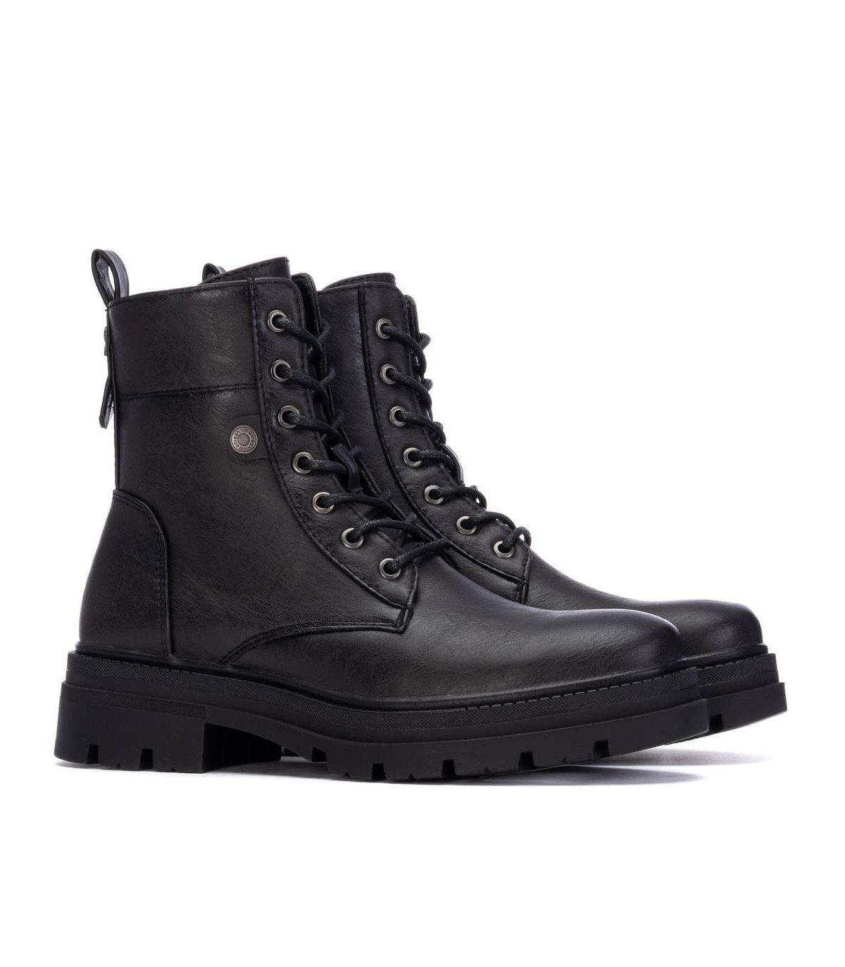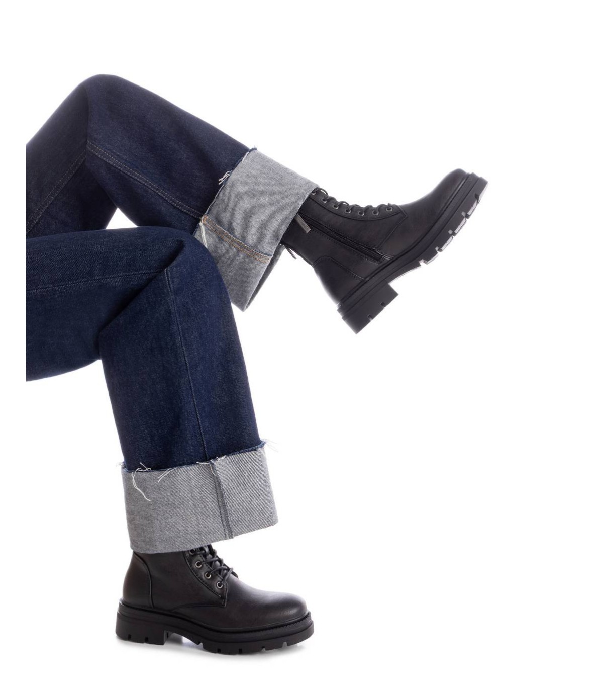 Botín de mujer, de la marca Refresh. Fabricado en material que imita a la piel. Cierre mediante cremallera con cordones tubulares al tono. Tirador trasero para facilitar la puesta. Este modelo ha obtenido el certificado vegano por la organización mundial PETA (Organización de los derechos de los animales).