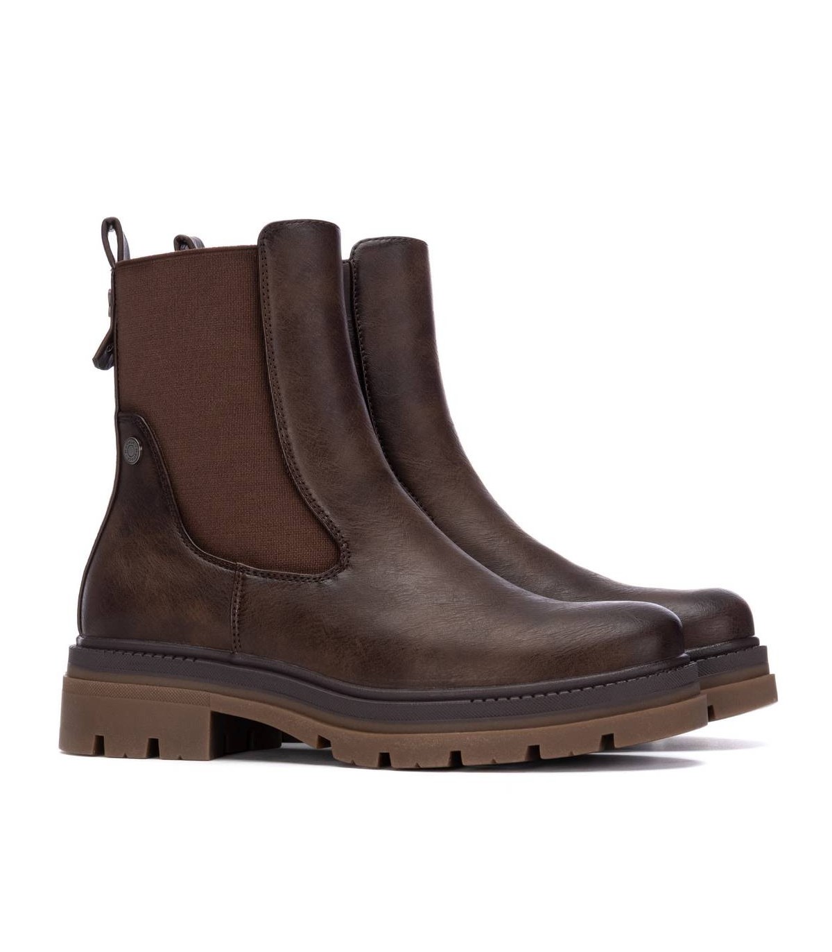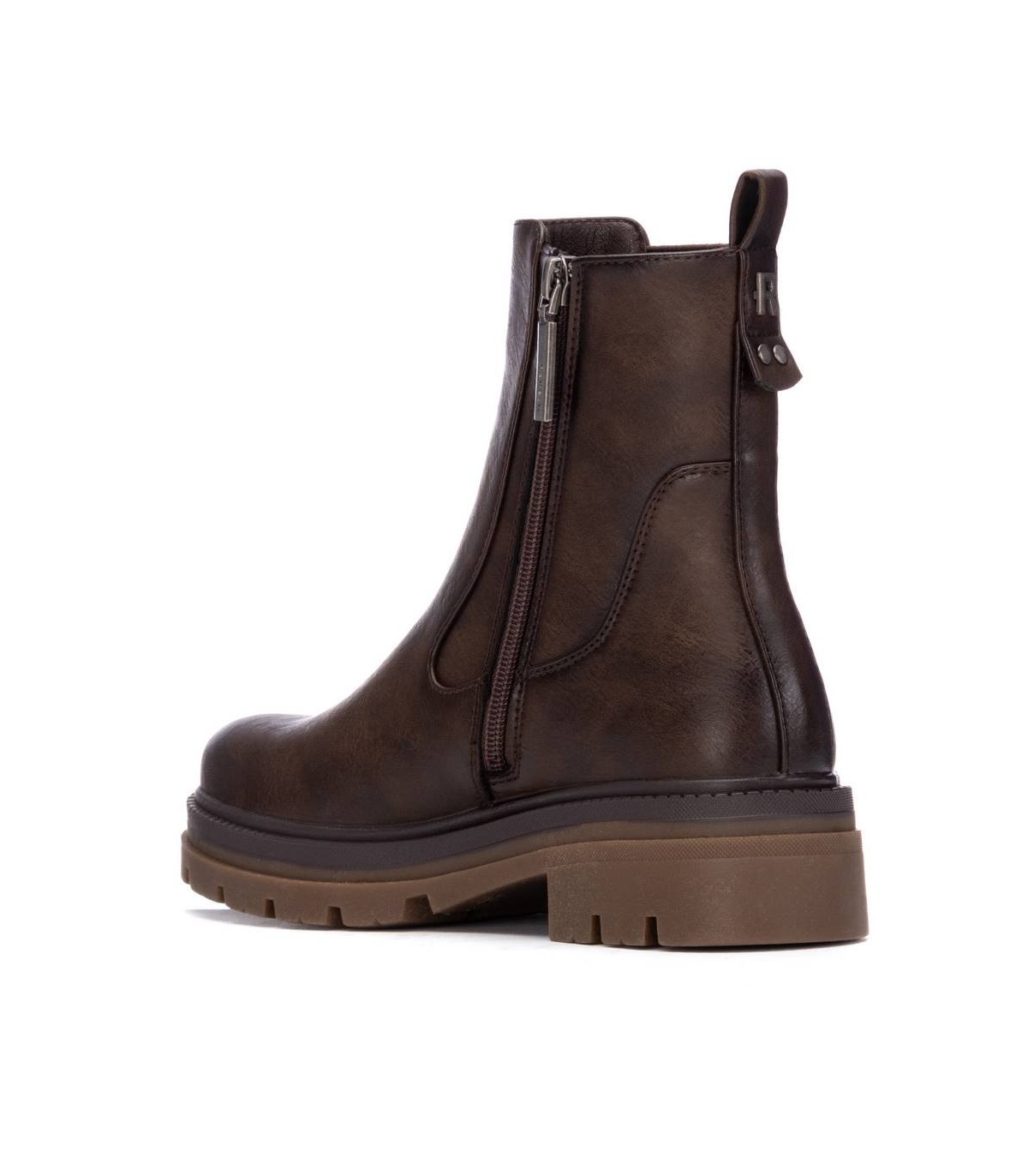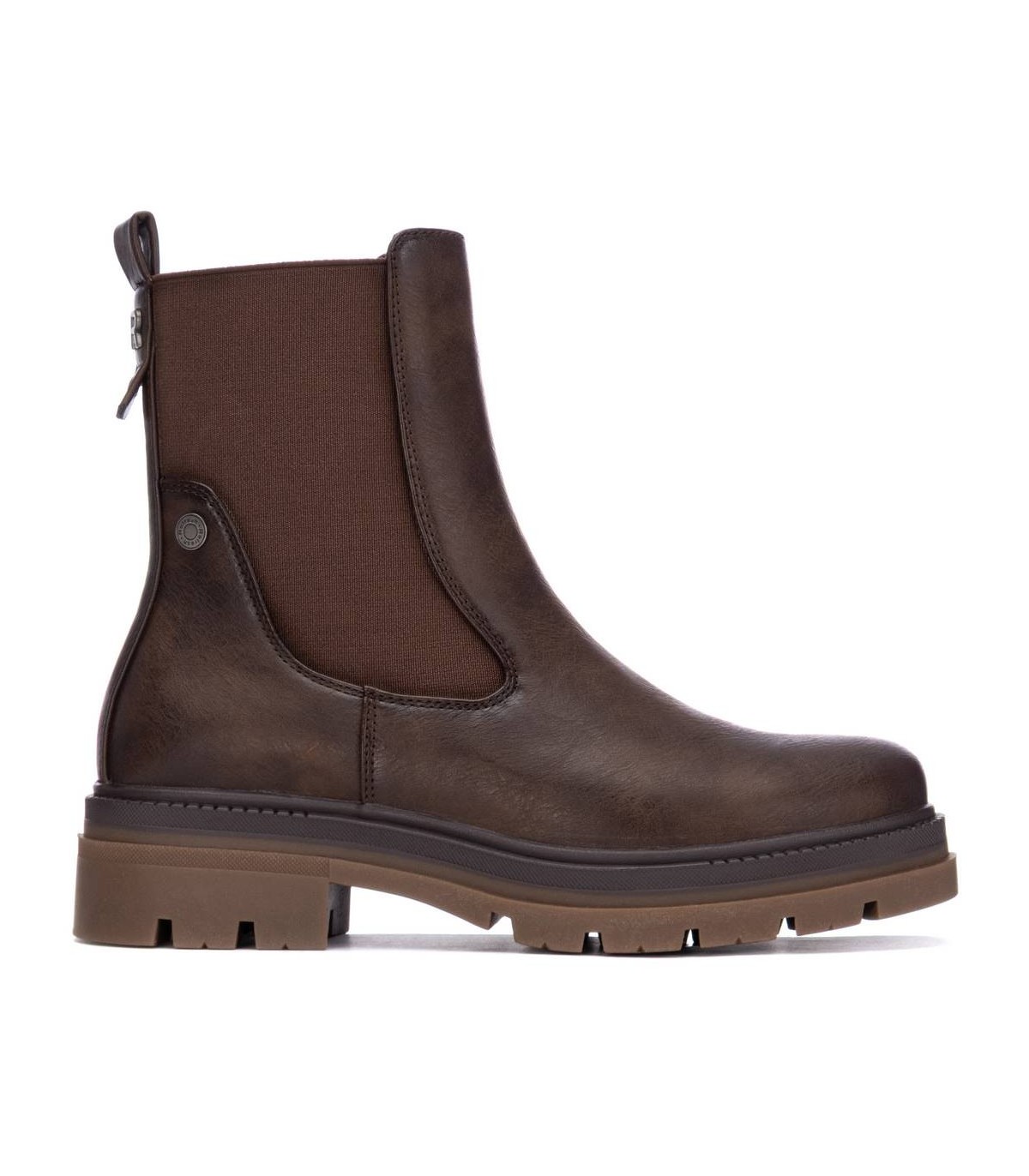 Botín de mujer, de la marca Refresh. Fabricado en material que imita a la piel. Botín tipo chelsea con elástico en el lateral. Tirador trasero para facilitar el calce. Gruesa suela de goma antideslizante. Este modelo ha obtenido el certificado vegano por la organización mundial PETA (Organización de los derechos de los animales).