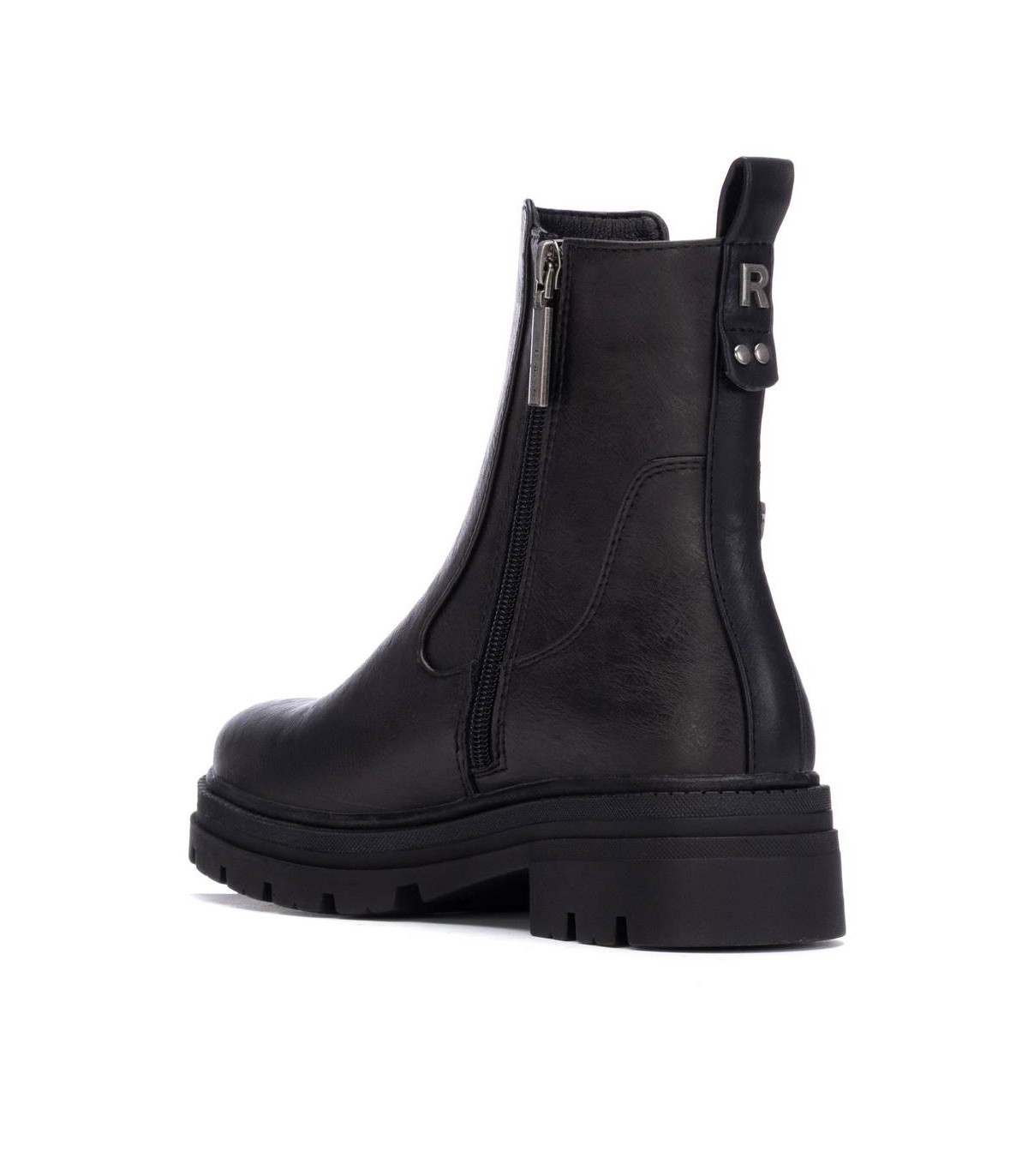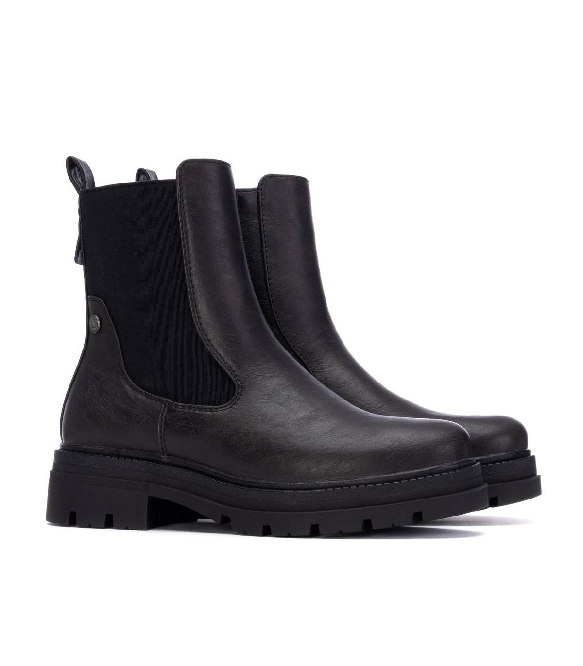 Botín de mujer, de la marca Refresh. Fabricado en material que imita a la piel. Botín tipo chelsea con elástico en el lateral. Tirador trasero para facilitar el calce. Gruesa suela de goma antideslizante. Este modelo ha obtenido el certificado vegano por la organización mundial PETA (Organización de los derechos de los animales).