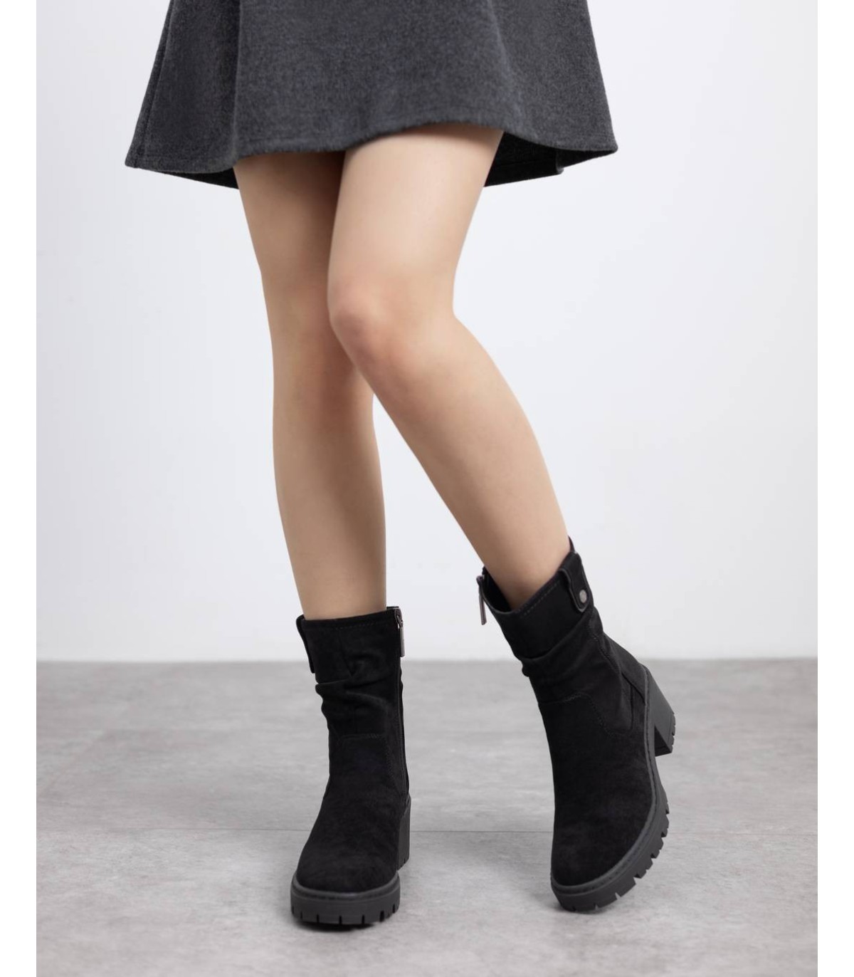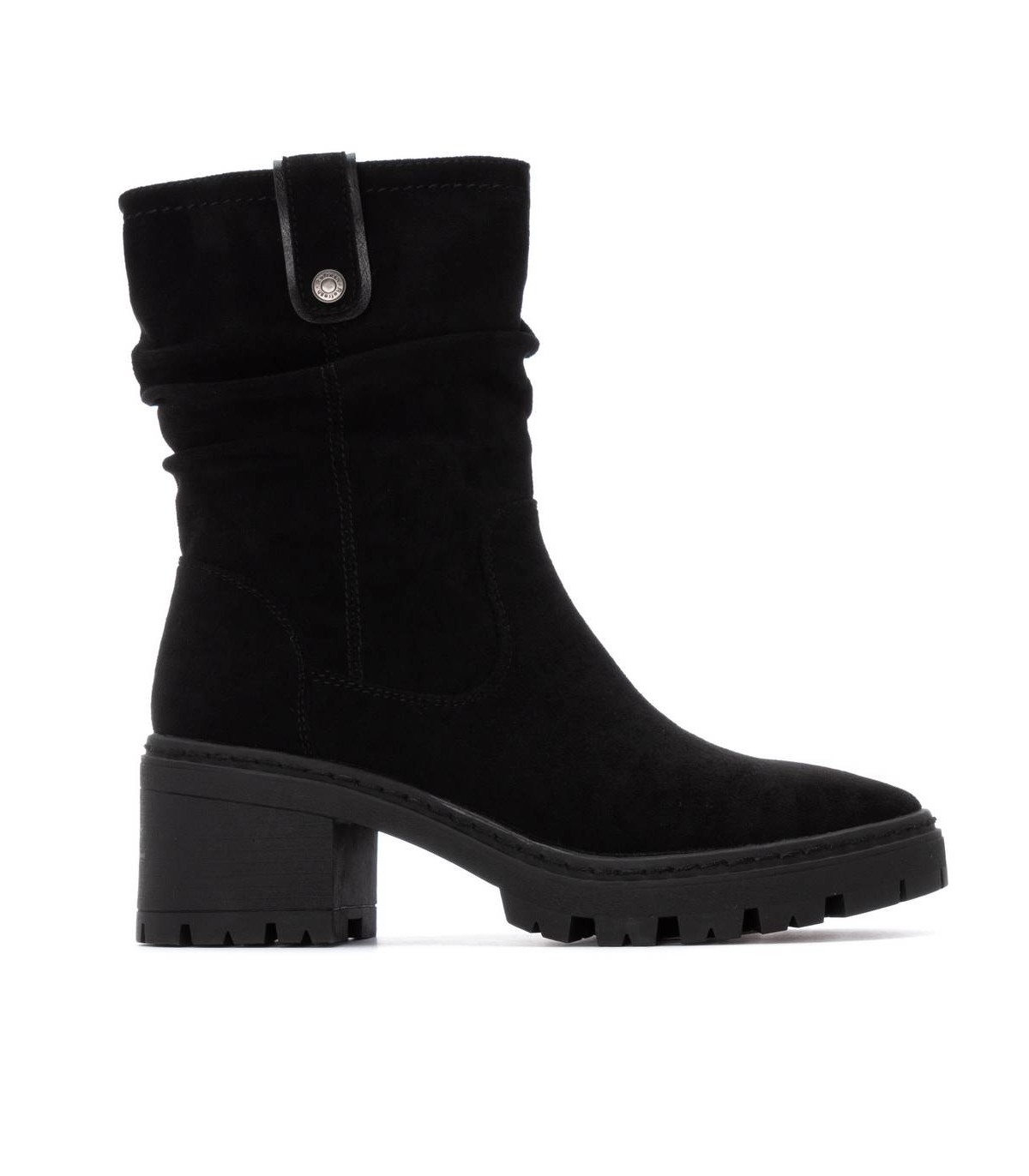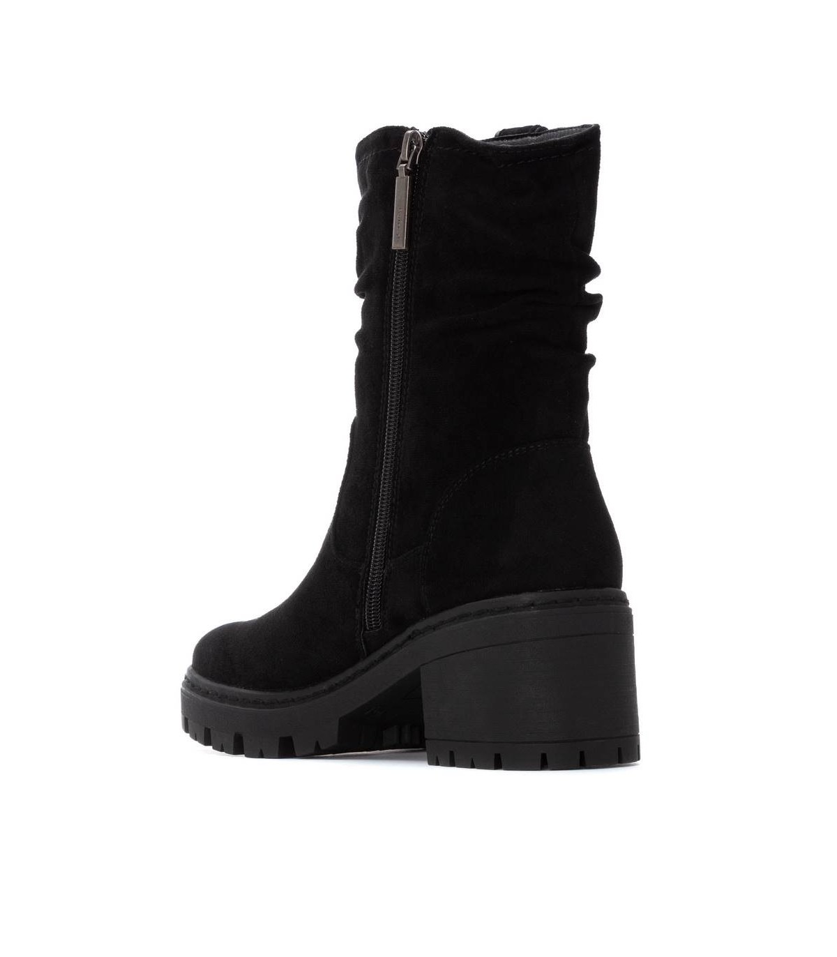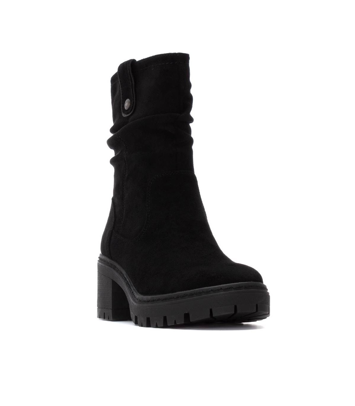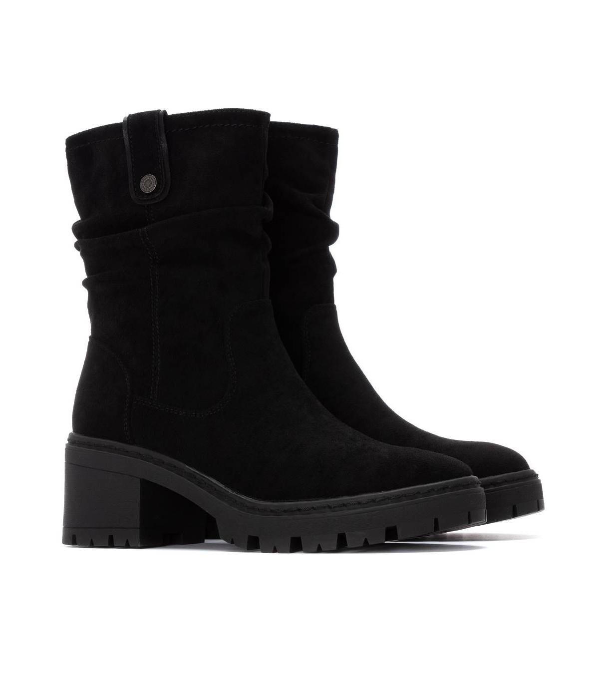 Botín de mujer, de la marca Refresh. Fabricado en una suave antelina. Cierre mediante cremallera interior. Tirador lateral para facilitar el calce. Suela track antideslizante con tacón y plataforma para mayor comodidad. Con plantilla extraíble. Este modelo ha obtenido el certificado vegano por la organización mundial PETA (Organización de los derechos de los animales).