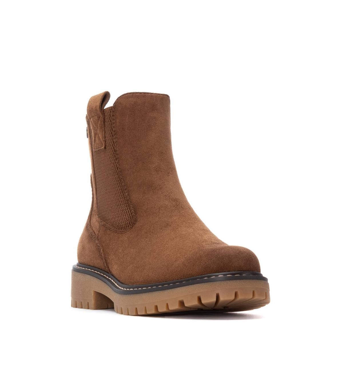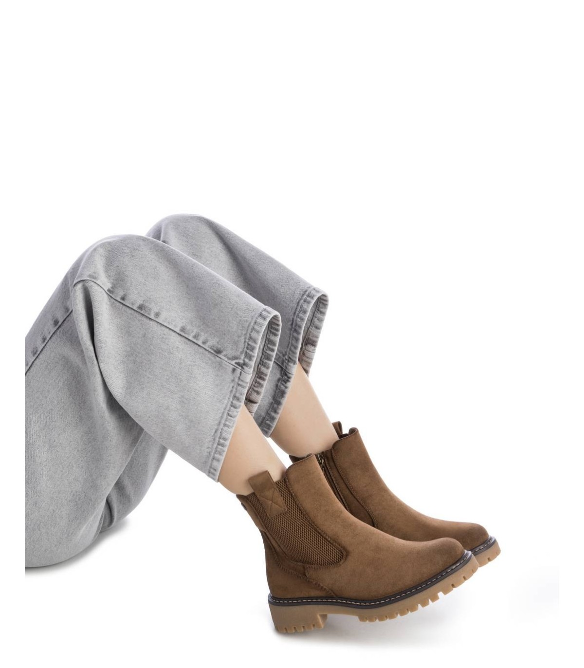 Botín de mujer tipo chelsea, de la marca Refresh. Fabricado en suave antelina. Cierre mediante cremallera. Tirador lateral para facilitar la puesta. Gruesa suela de goma antideslizante. Con plantilla extraíble. Este modelo ha obtenido el certificado vegano por la organización mundial PETA (Organización de los derechos de los animales).