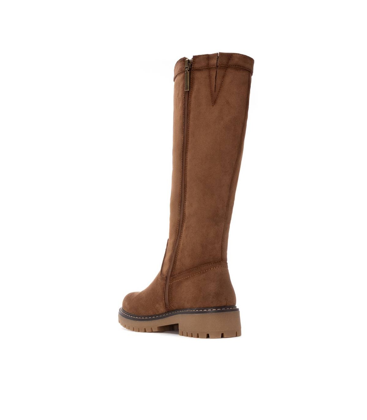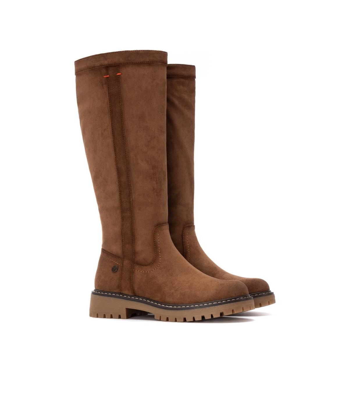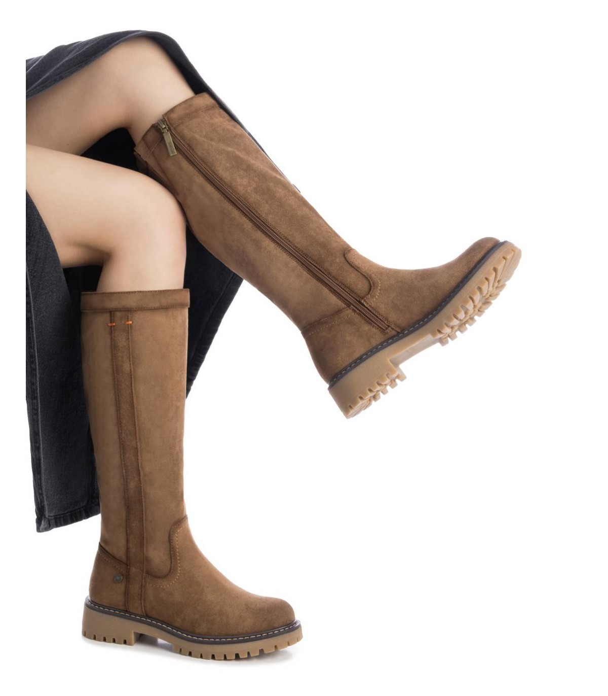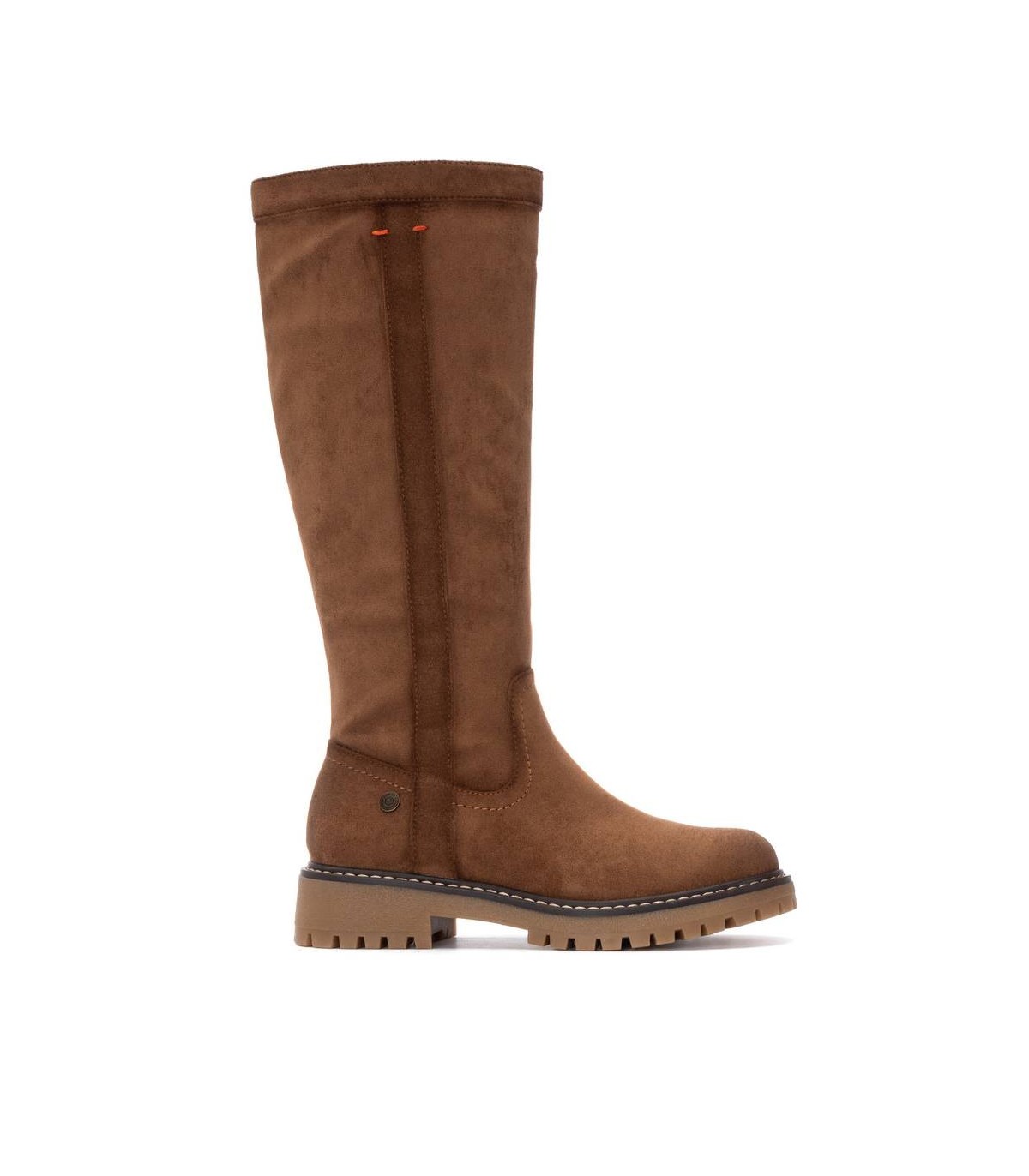Bota de mujer, de la marca Refresh. Fabricada en suave antelina. Cierre mediante cremallera interior. Altura de caña de 37 cm. Con suela volumen de goma antideslizante. Con plantilla extraíble. Una bota ideal para combinar con los mejores looks de la temporada. Este modelo ha obtenido el certificado vegano por la organización mundial PETA (Organización de los derechos de los animales).