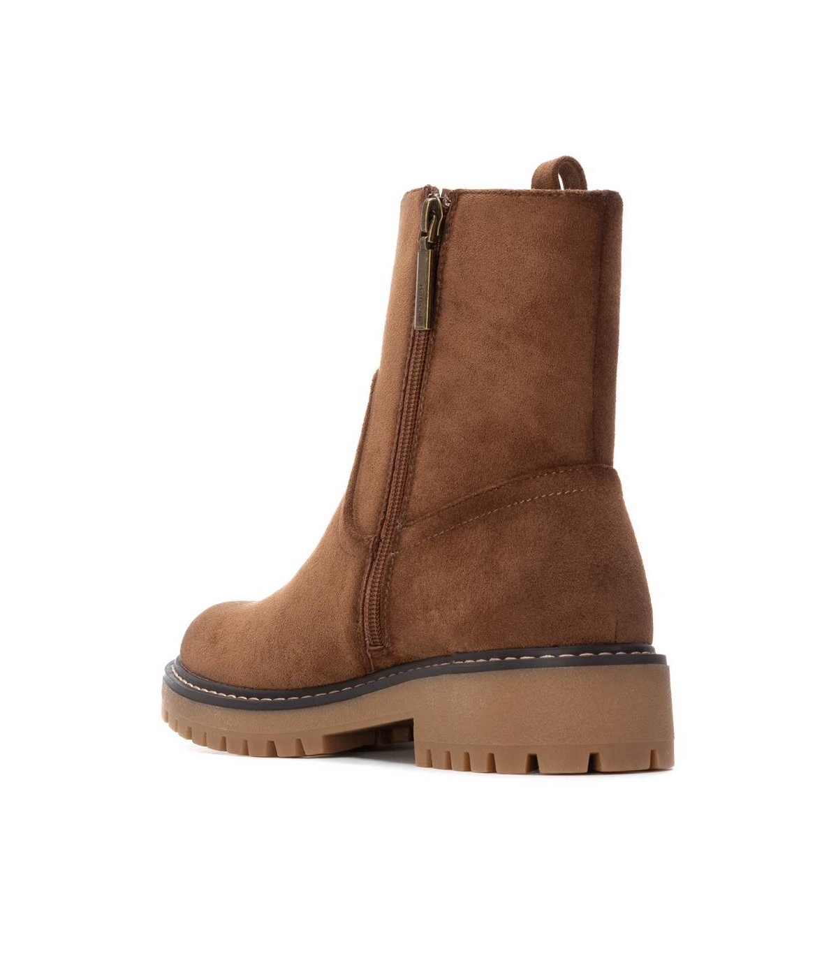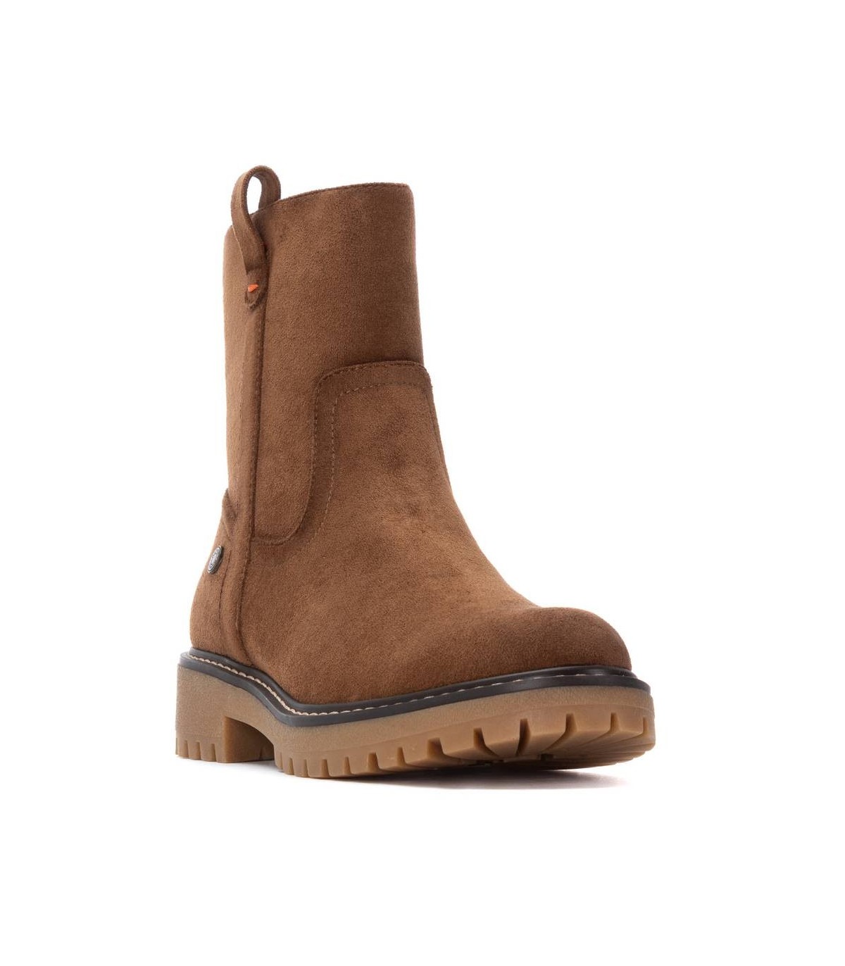 Botín de mujer, de la marca Refresh. Fabricado en suave antelina. Cierre mediante cremallera interna. Tirador trasero lateral para ayudar a la puesta. Suela volumen de goma antideslizante. Con plantilla extraíble. Este modelo ha obtenido el certificado vegano por la organización mundial PETA (Organización de los derechos de los animales).