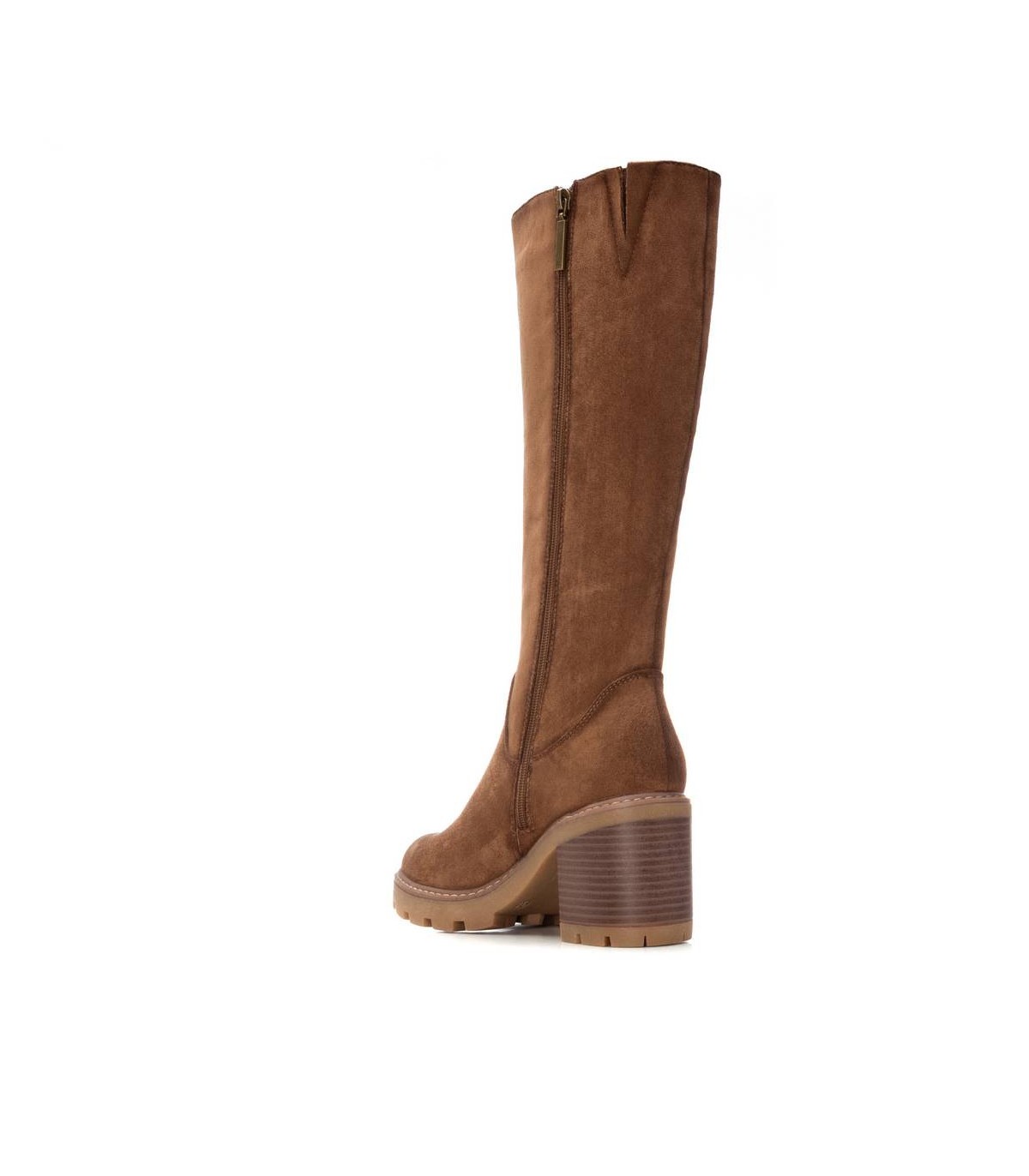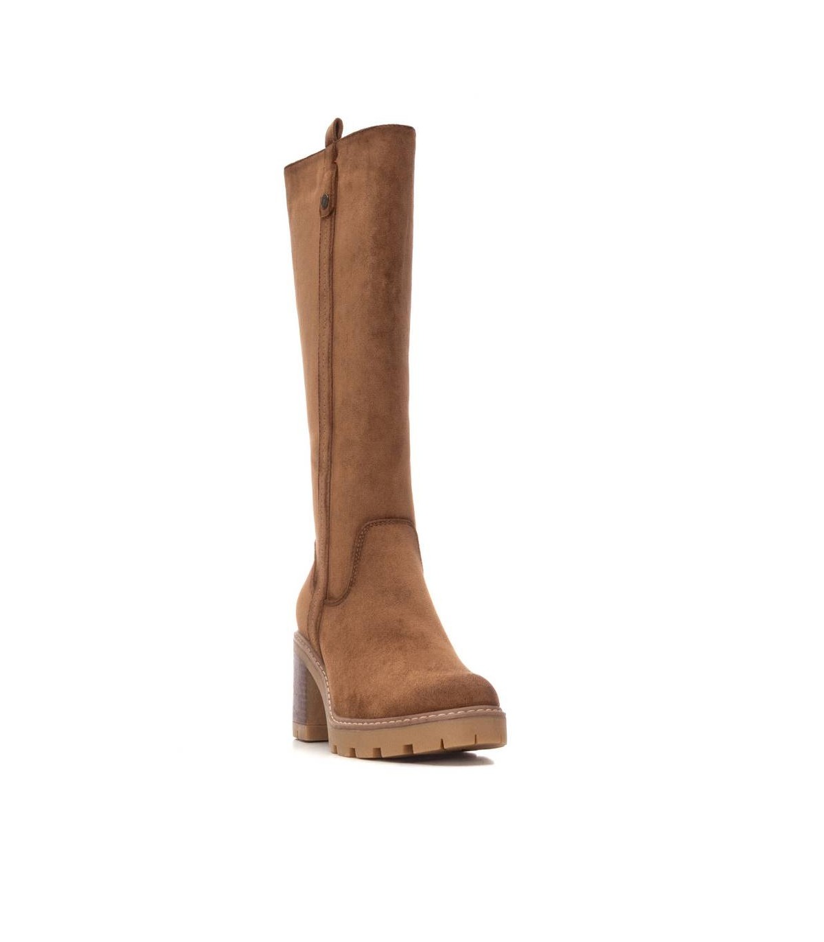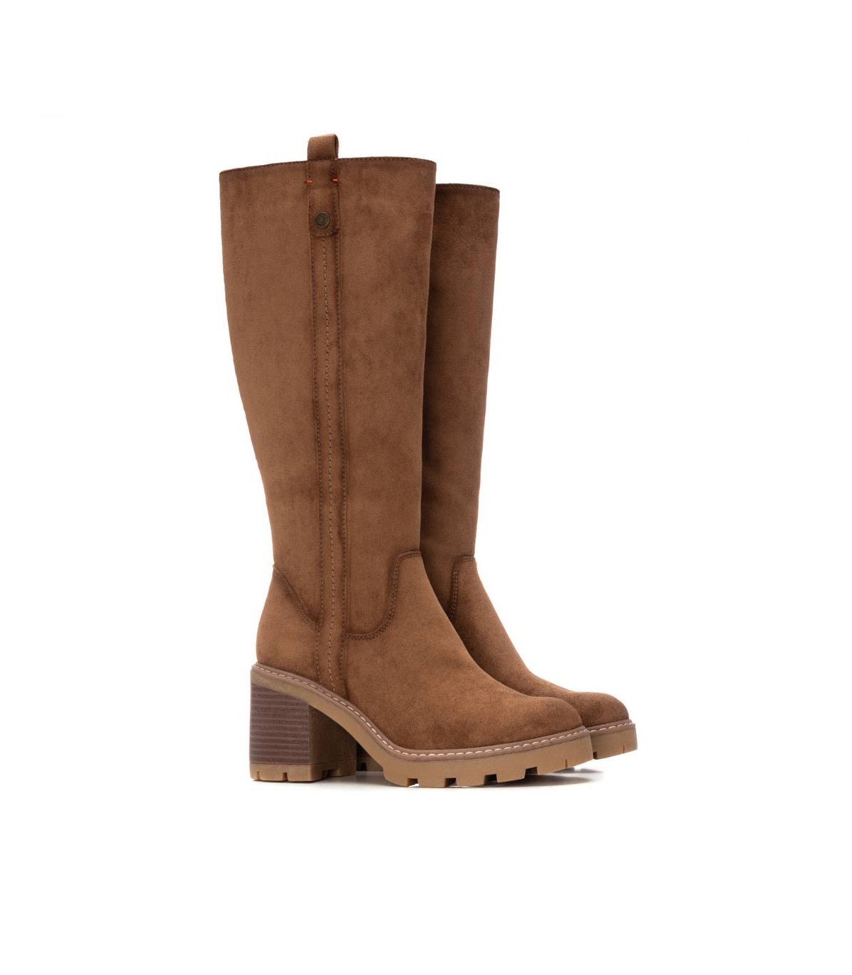 Bota de mujer, de la marca Refresh. Fabricada en suave antelina. Cierre mediante cremallera interior. Tirador lateral para facilitar la puesta. Caña de 36 cm de altura. Tacón de 8 cm de alto con suela de goma antideslizante. Este modelo ha obtenido el certificado vegano por la organización mundial PETA (Organización de los derechos de los animales).