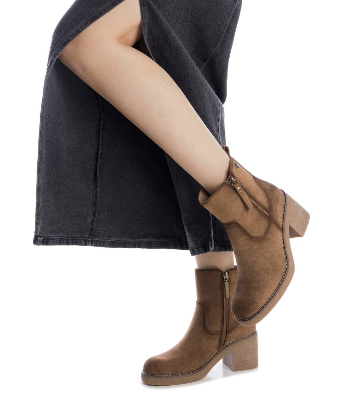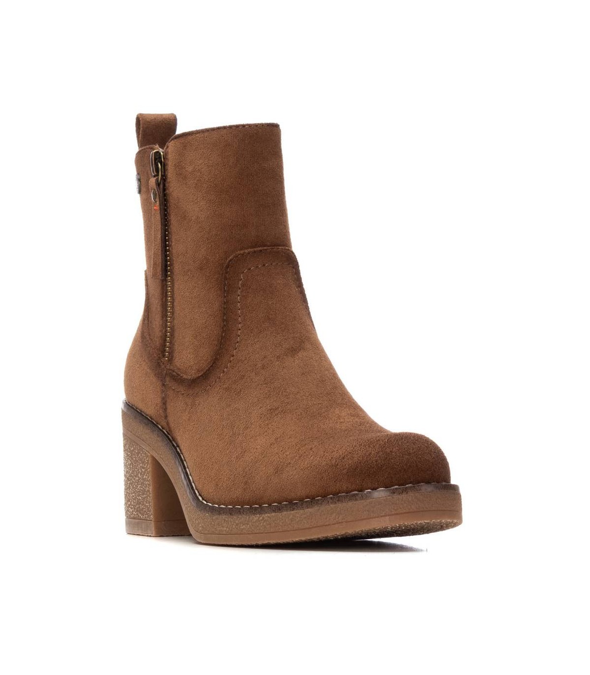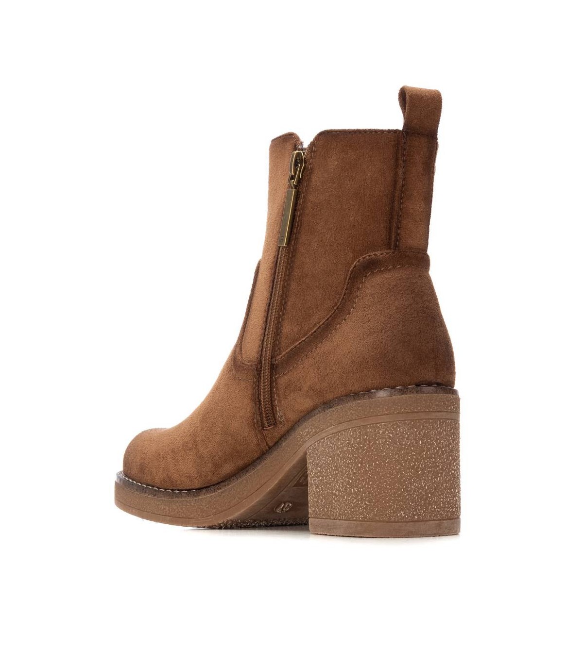 Botín de mujer, de la marca Refresh. Fabricado en suave antelina. Cierre mediante cremallera interior. Cremallera lateral decorativa. Tirador trasero para facilitar la puesta. Tacón en goma de 7 cm de alto con suela antideslizante. Con plantilla extraíble. Este modelo ha obtenido el certificado vegano por la organización mundial PETA (Organización de los derechos de los animales).