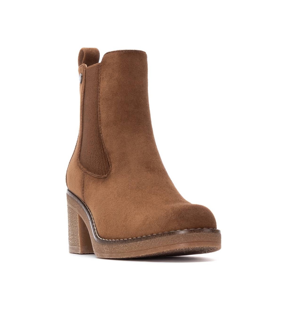 Botín de mujer, de la marca Refresh. Fabricado en suave antelina. Cierre mediante cremallera lateral. Tirador trasero para facilitar la puesta. Botín tipo chelsea con elástico. Tacón de goma de 7 cm de altura con suela de goma antideslizante. Con plantilla extraíble. Este modelo ha obtenido el certificado vegano por la organización mundial PETA (Organización de los derechos de los animales).