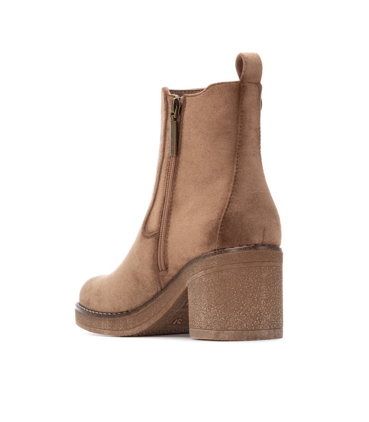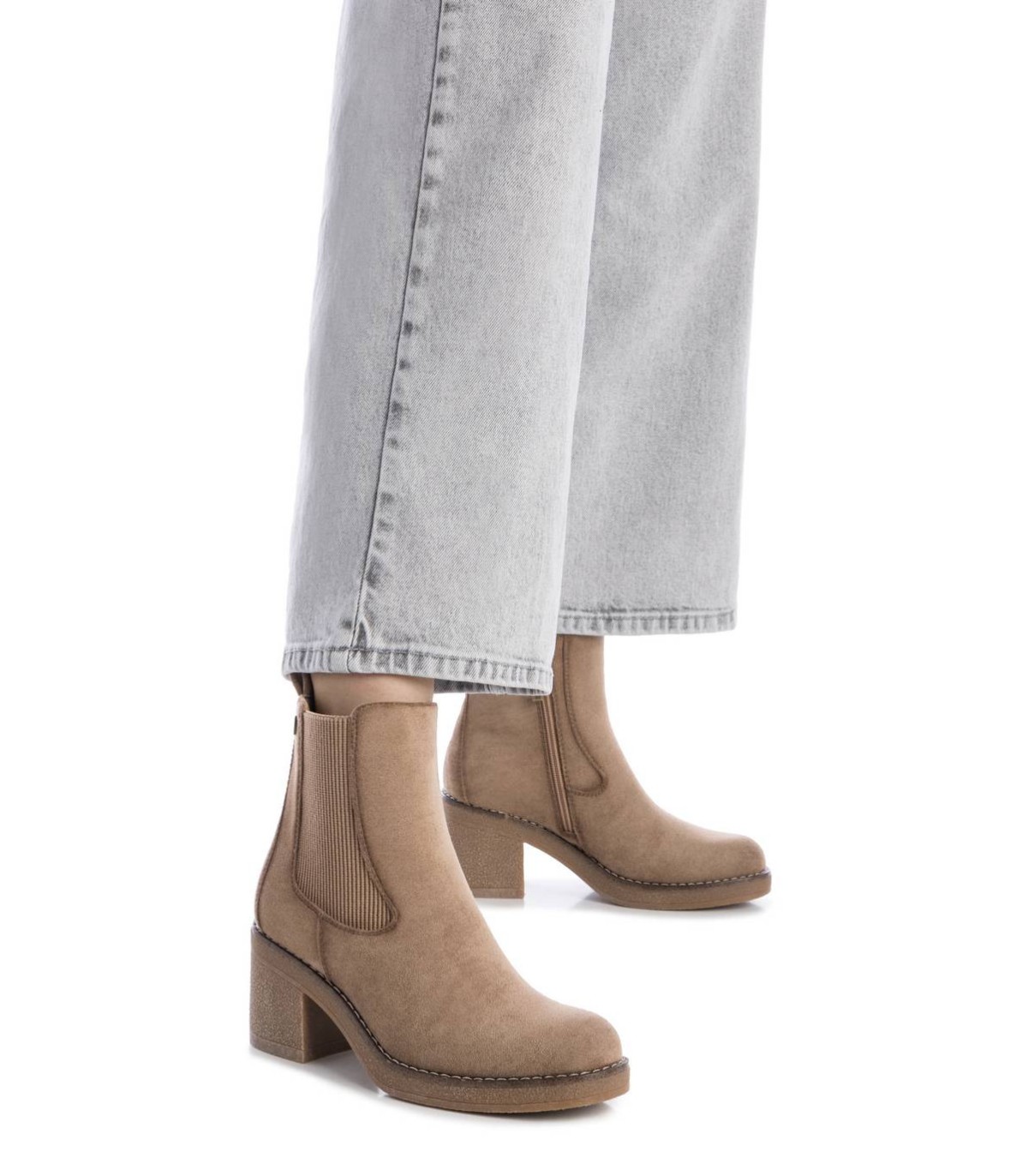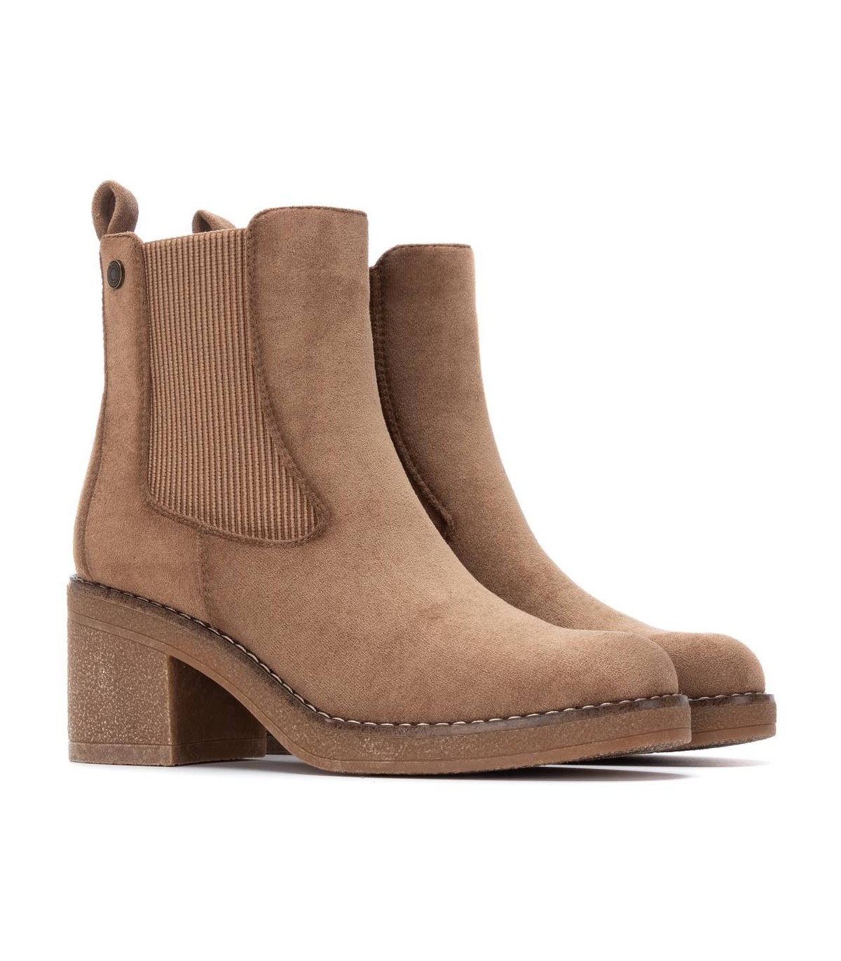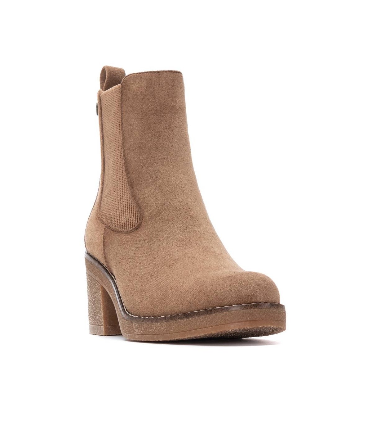 Botín de mujer, de la marca Refresh. Fabricado en suave antelina. Cierre mediante cremallera lateral. Tirador trasero para facilitar la puesta. Botín tipo chelsea con elástico. Tacón de goma de 7 cm de altura con suela de goma antideslizante. Con plantilla extraíble. Este modelo ha obtenido el certificado vegano por la organización mundial PETA (Organización de los derechos de los animales).