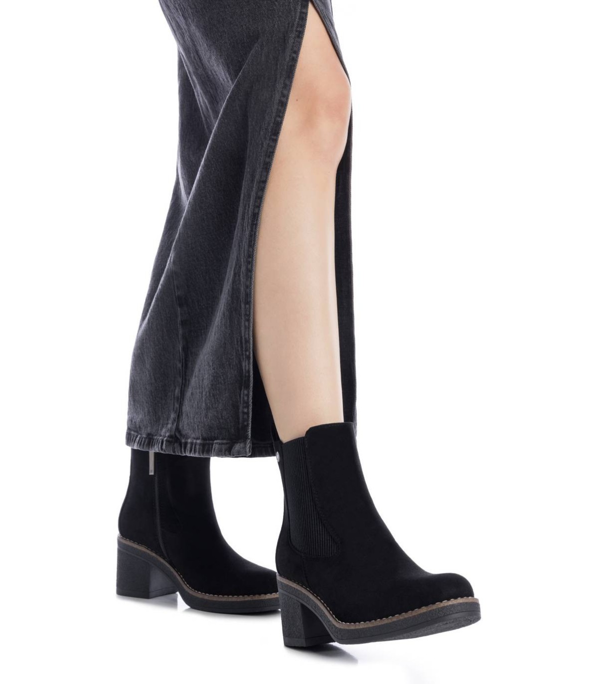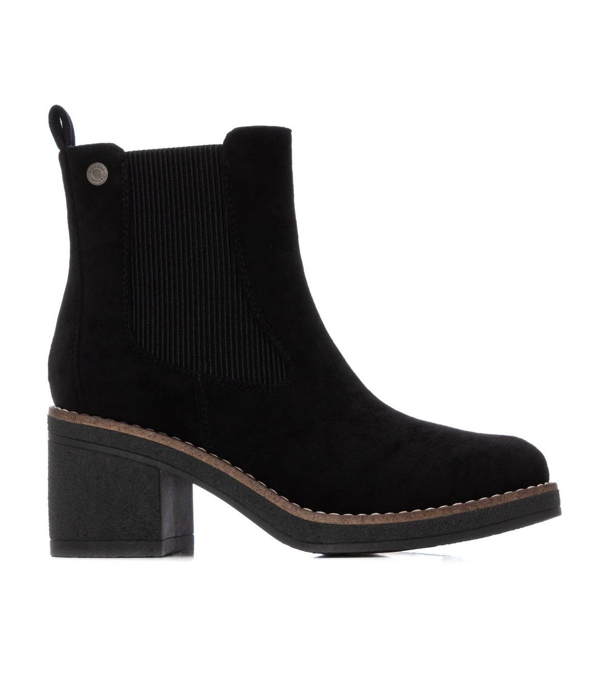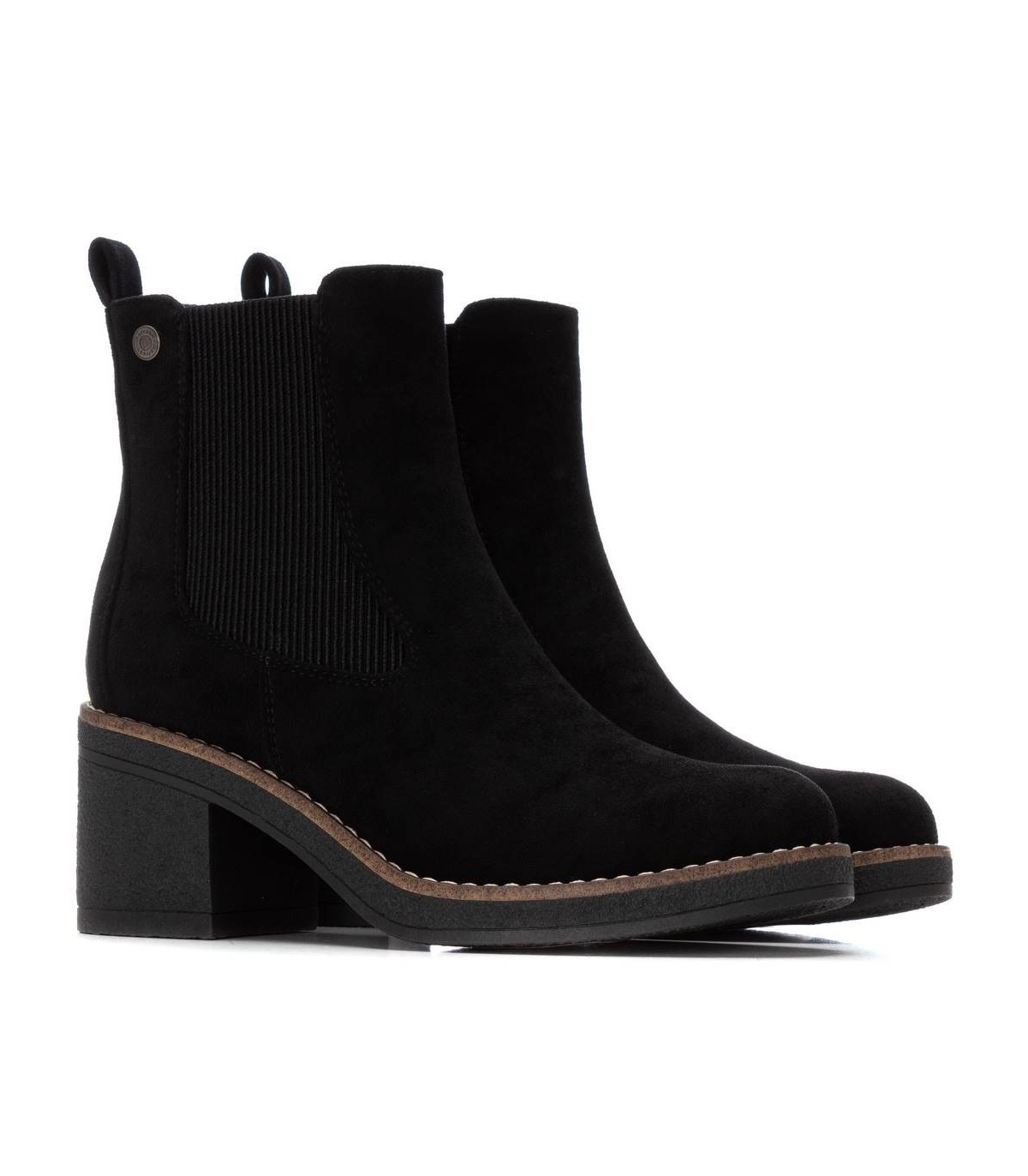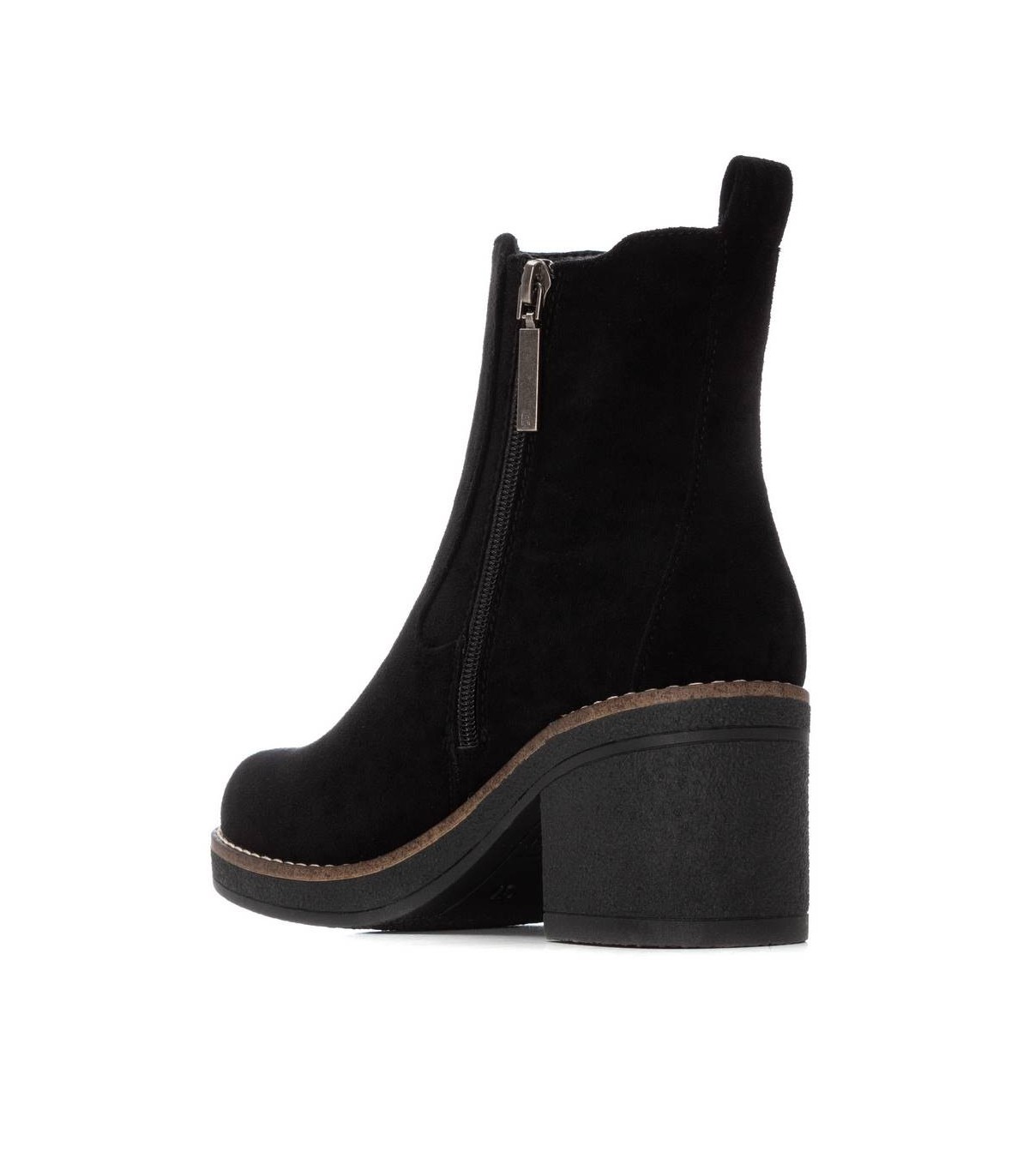 Botín de mujer, de la marca Refresh. Fabricado en suave antelina. Cierre mediante cremallera lateral. Tirador trasero para facilitar la puesta. Botín tipo chelsea con elástico. Tacón de goma de 7 cm de altura con suela de goma antideslizante. Con plantilla extraíble. Este modelo ha obtenido el certificado vegano por la organización mundial PETA (Organización de los derechos de los animales).