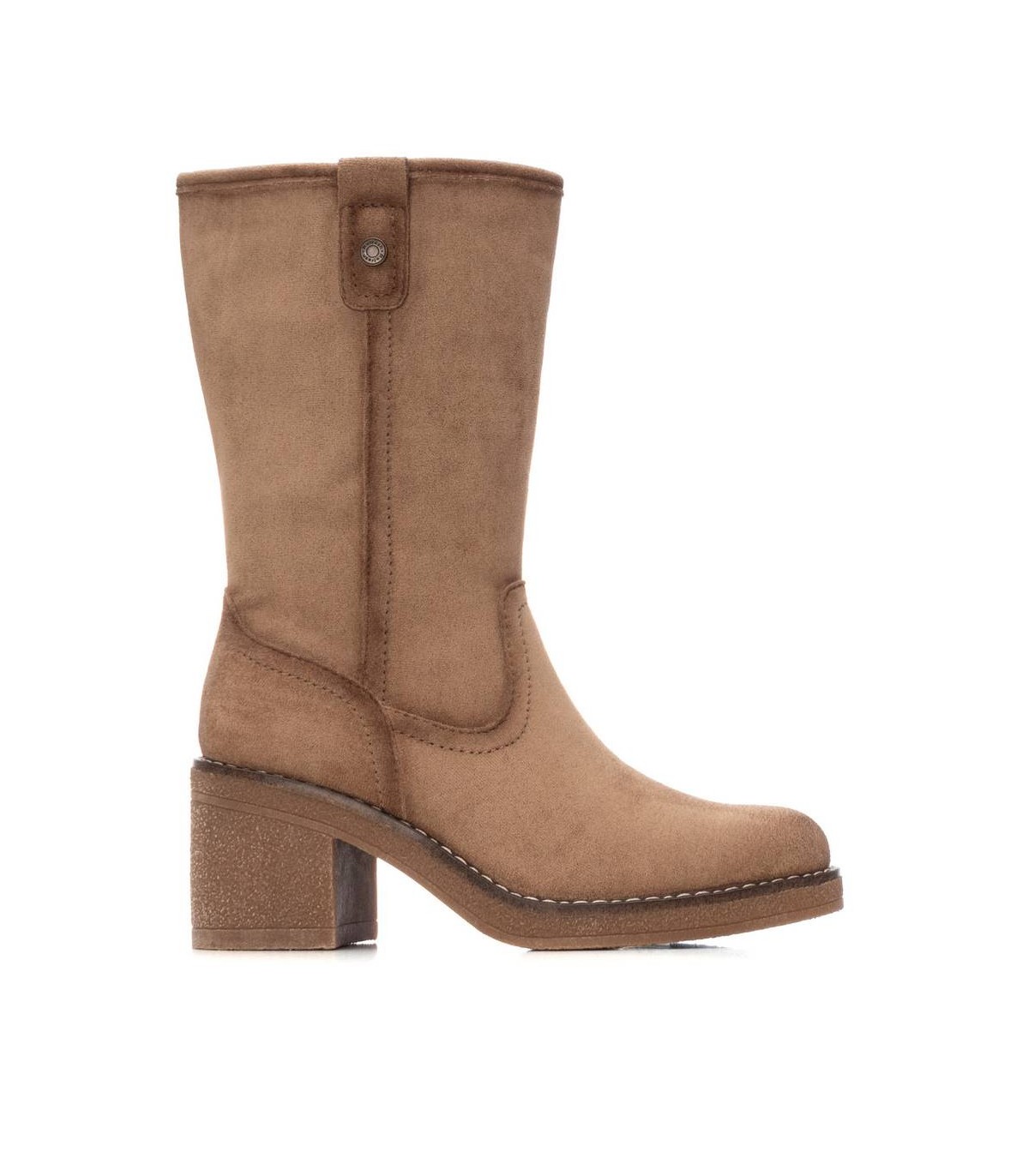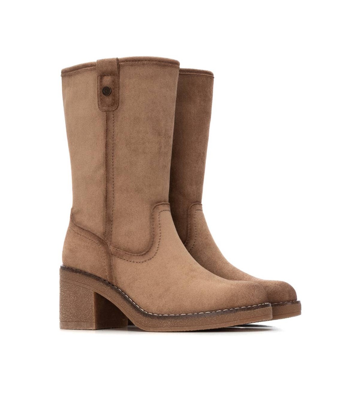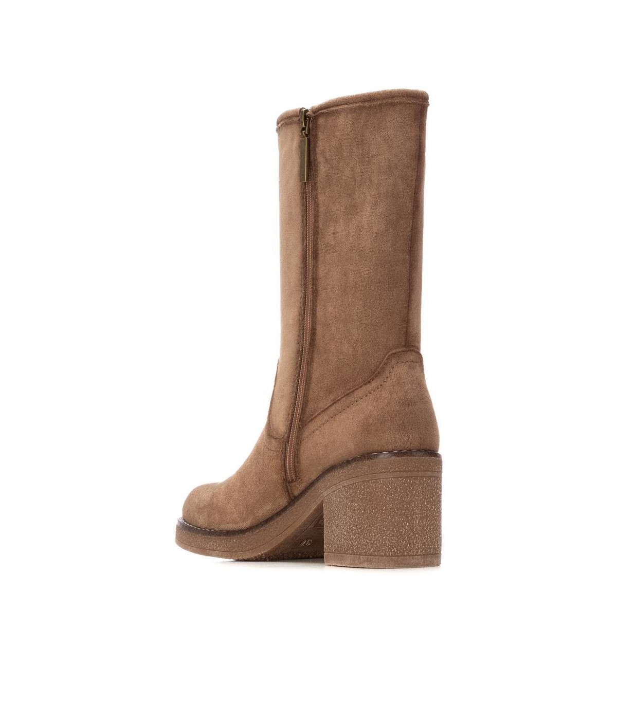 Botín de caña alta de mujer, marca Refresh. Fabricado en suave antelina. Cierre mediante cremallera interior. Altura de la caña de 23 cm. Con tacón de goma de 7 cm de altura. Con plantilla extraíble. Este modelo ha obtenido el certificado vegano por la organización mundial PETA (Organización de los derechos de los animales).