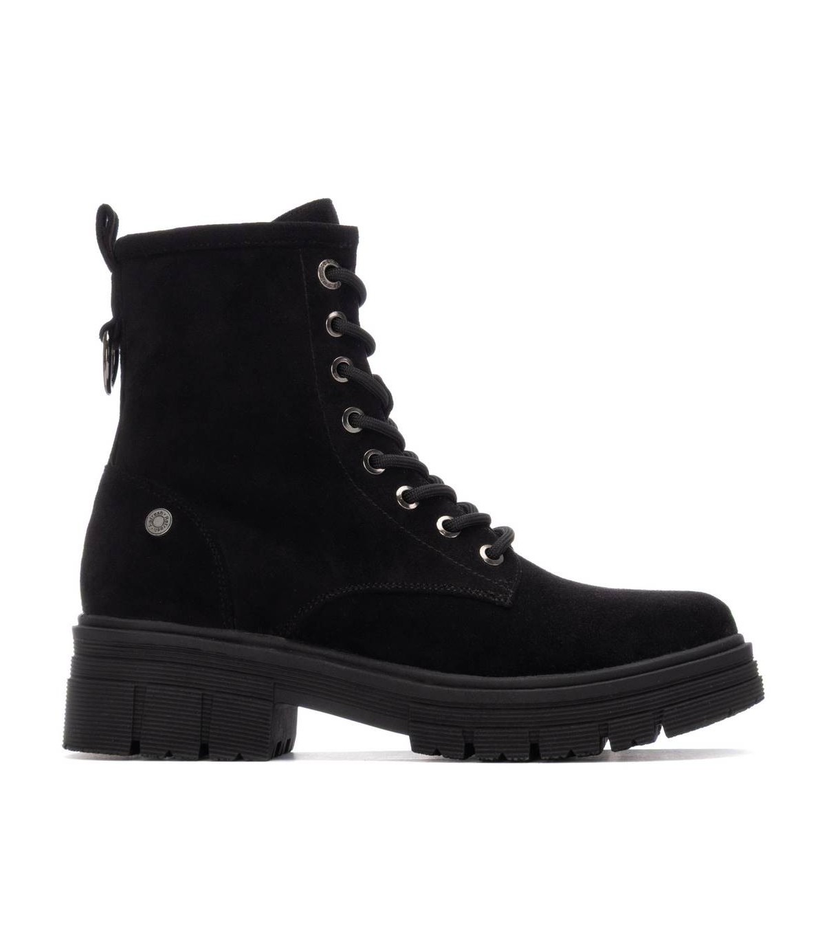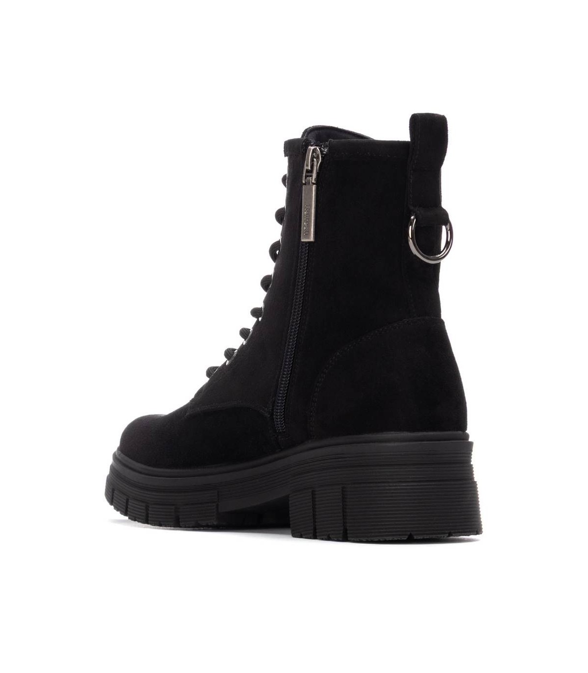 Botín de mujer, de la marca Refresh. Fabricada en suave tejido. Cierre mediante cremallera. Cordones regulables. Tirador trasero para facilitar la puesta. Suela volumen de goma. Con plantilla extraíble. Este modelo ha obtenido el certificado vegano por la organización mundial PETA (Organización de los derechos de los animales).