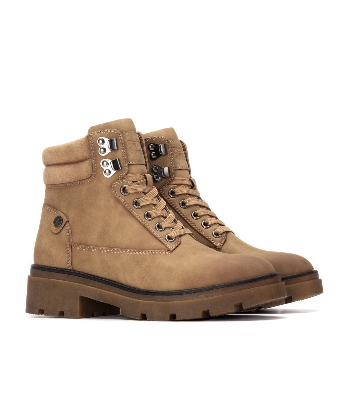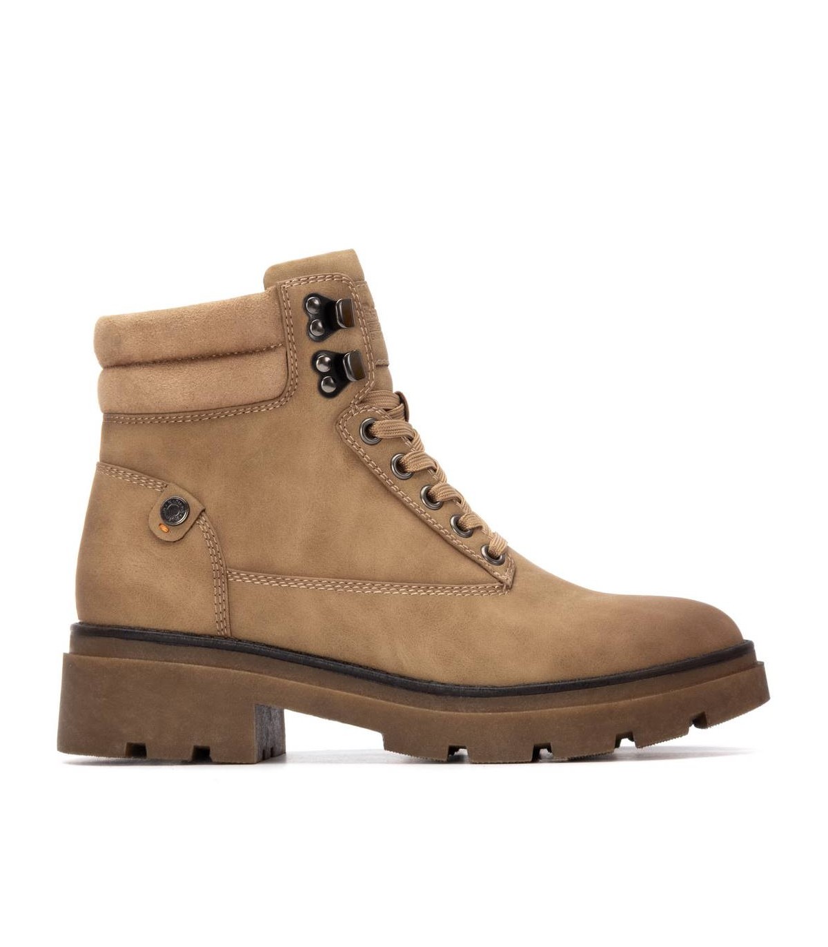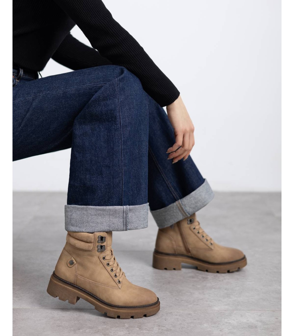 Botín de mujer, de la marca Refresh. Fabricado en material que imita a la piel. Cierre mediante cremallera interior. Cordones regulables para un mejor ajuste. Collarín acolchado. Suela volumen de goma antideslizante. Plantilla extraíble.