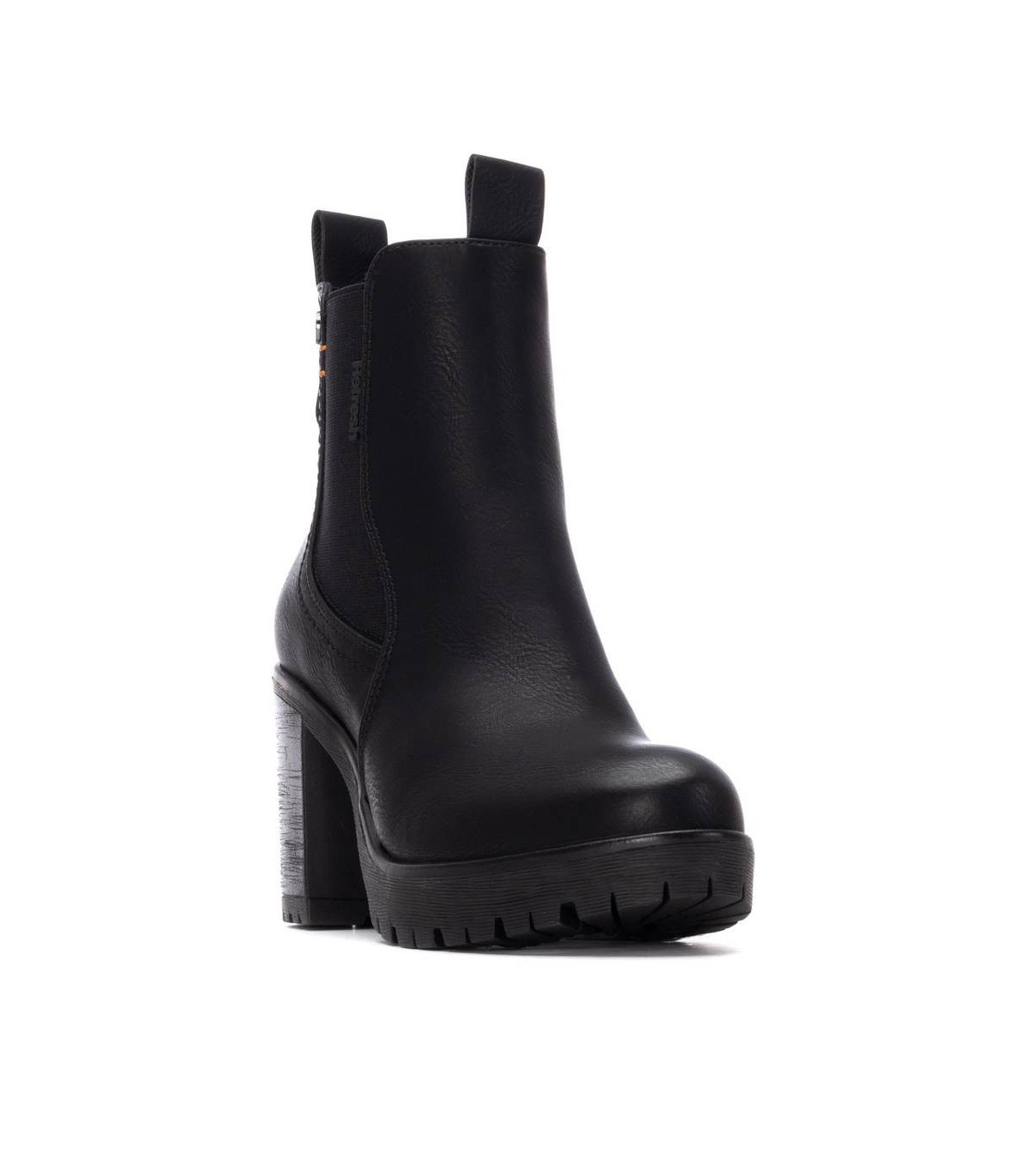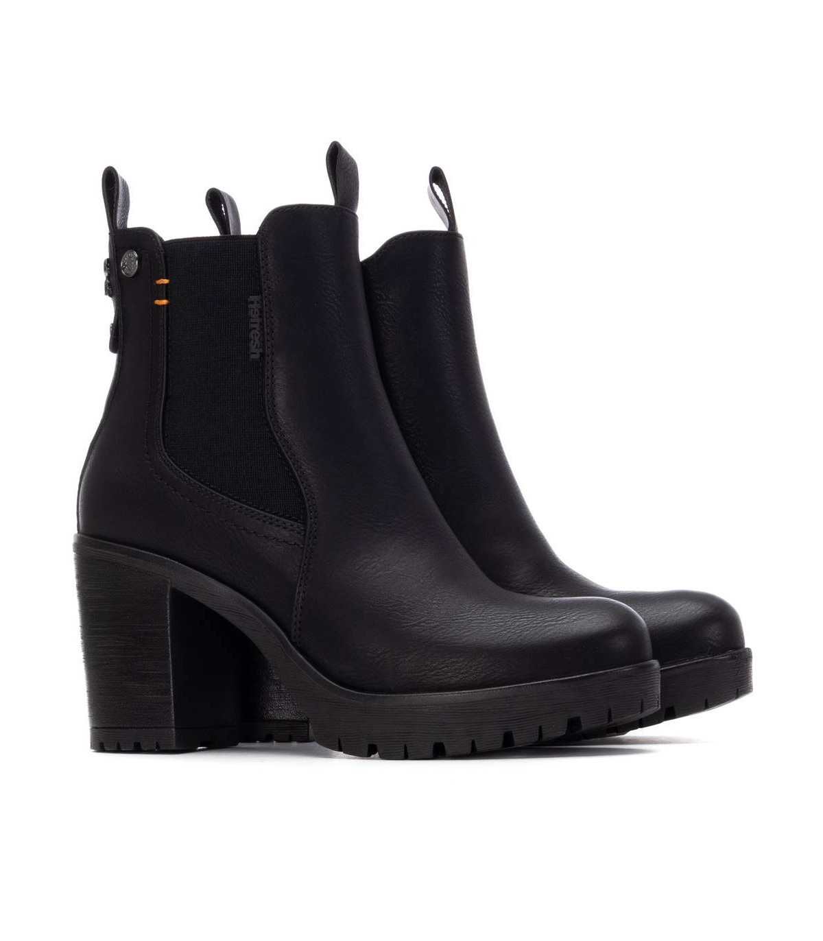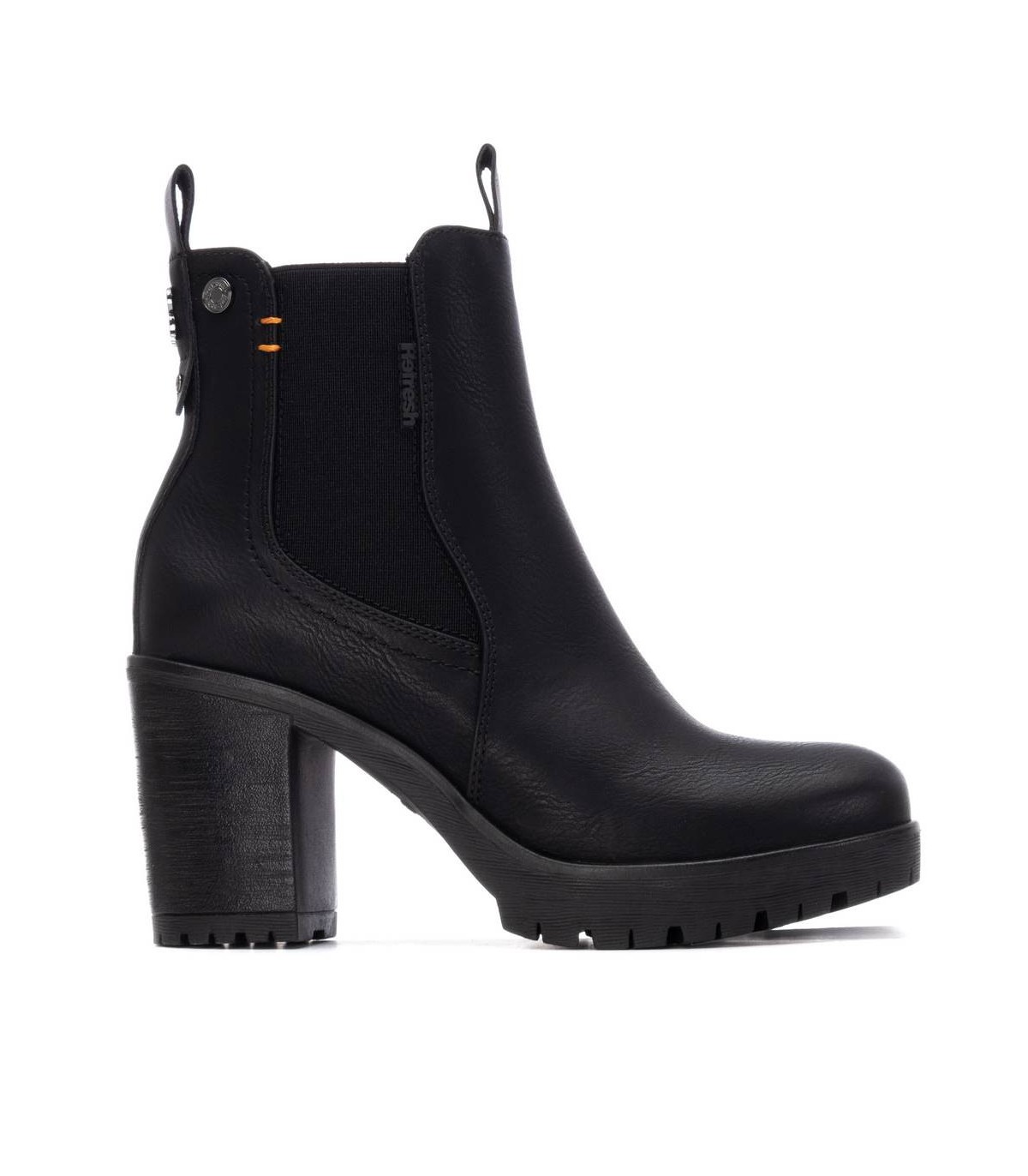 Botín de mujer, de la marca Refresh. Fabricado en un material que imita la piel. Cierre mediante cremallera interior. Modelo tipo Chelsea con elástico lateral y tirador trasero para facilitar la puesta. Tacón ancho de 9 cm con suela de goma antideslizante. Tirador trasero para facilitar la puesta. Con plantilla extraíble. Este modelo ha obtenido el certificado vegano por la organización mundial PETA (Organización de los derechos de los animales).