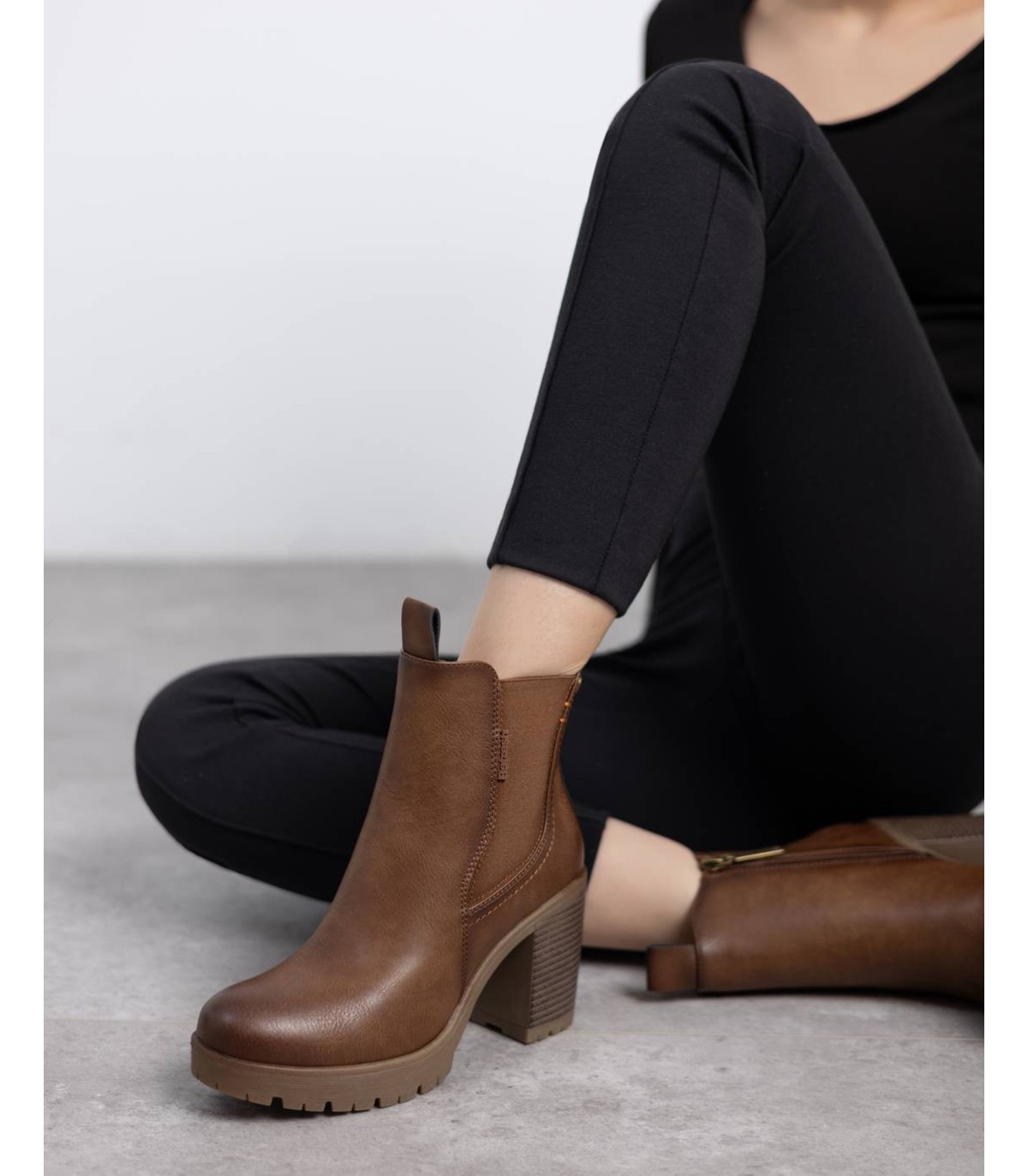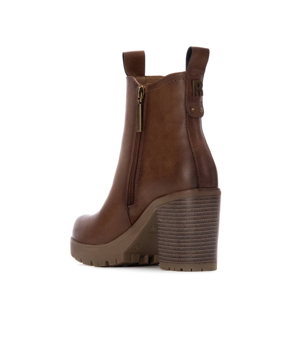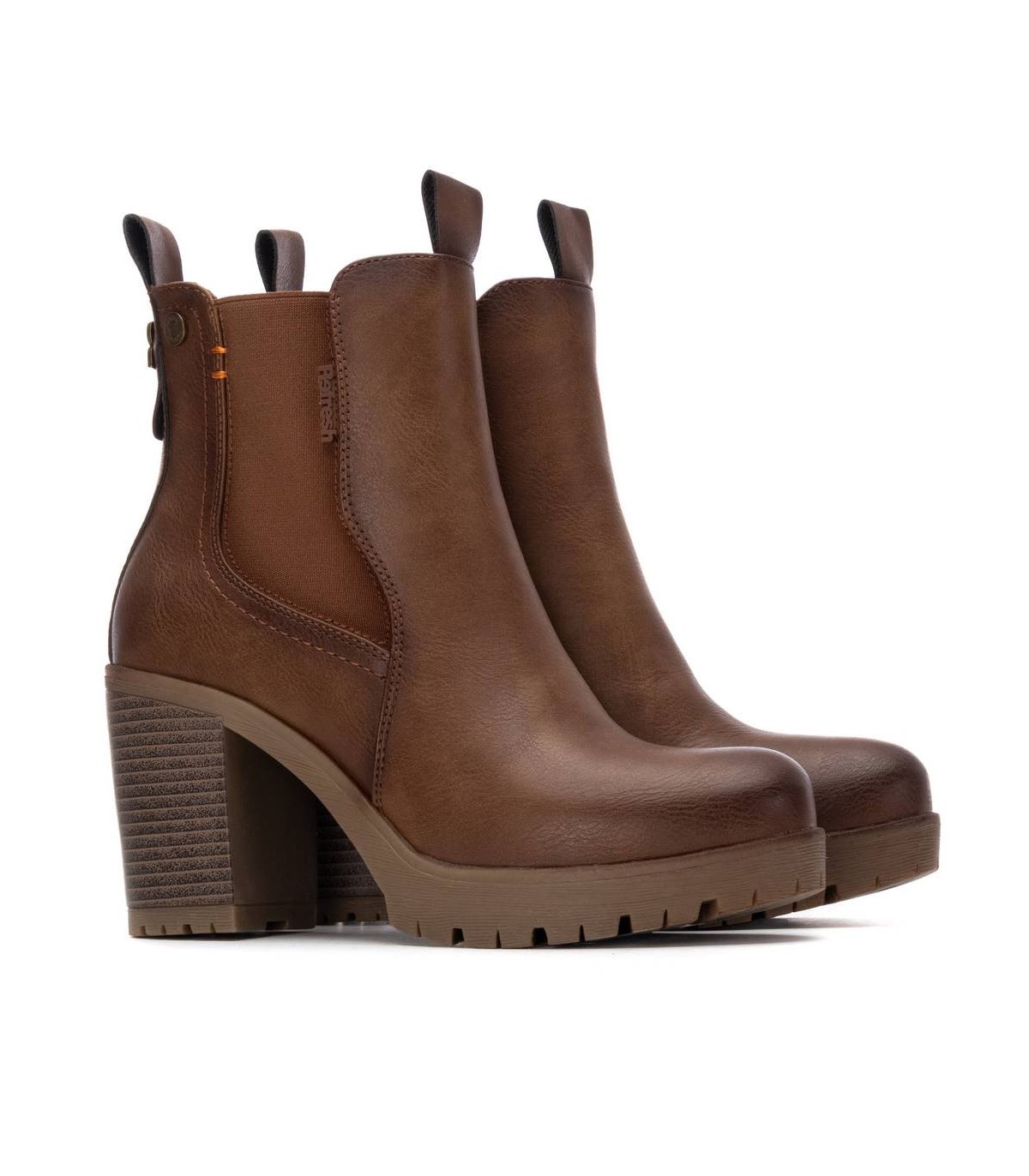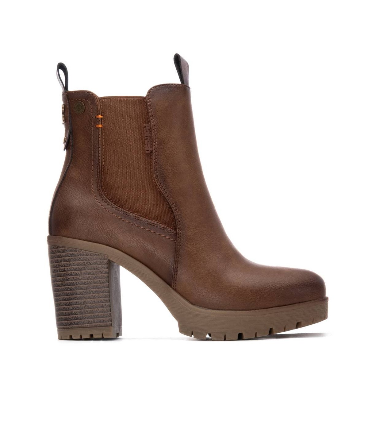 Botín de mujer, de la marca Refresh. Fabricado en un material que imita la piel. Cierre mediante cremallera interior. Modelo tipo Chelsea con elástico lateral y tirador trasero para facilitar la puesta. Tacón ancho de 9 cm con suela de goma antideslizante. Tirador trasero para facilitar la puesta. Con plantilla extraíble. Este modelo ha obtenido el certificado vegano por la organización mundial PETA (Organización de los derechos de los animales).