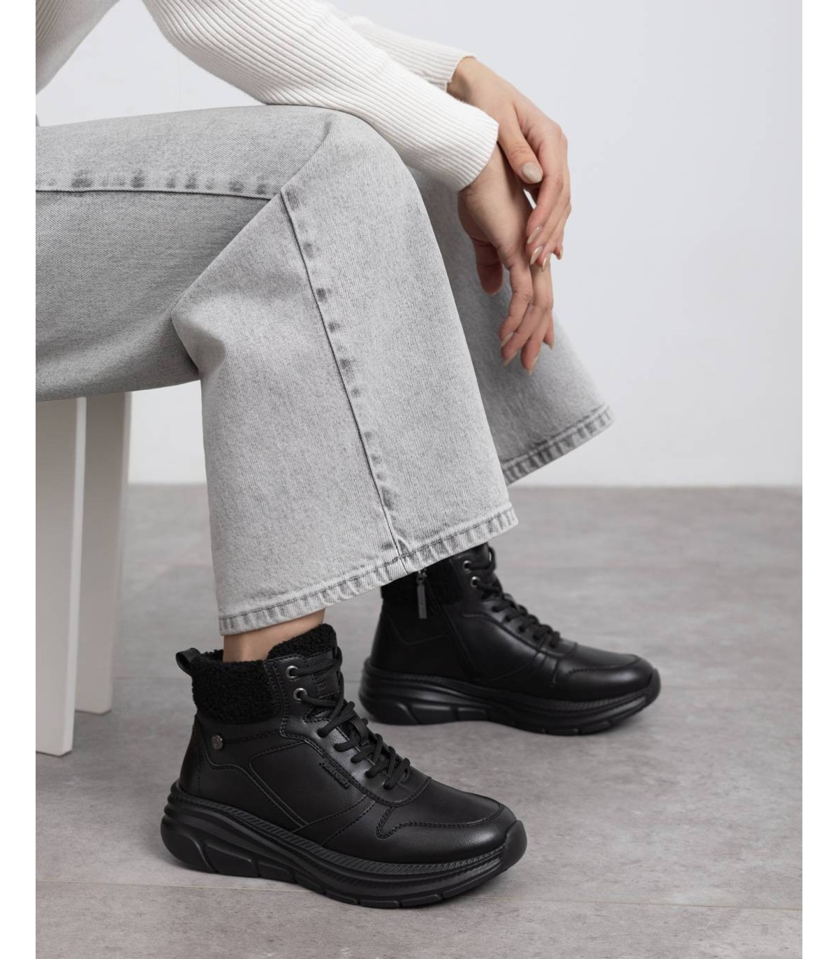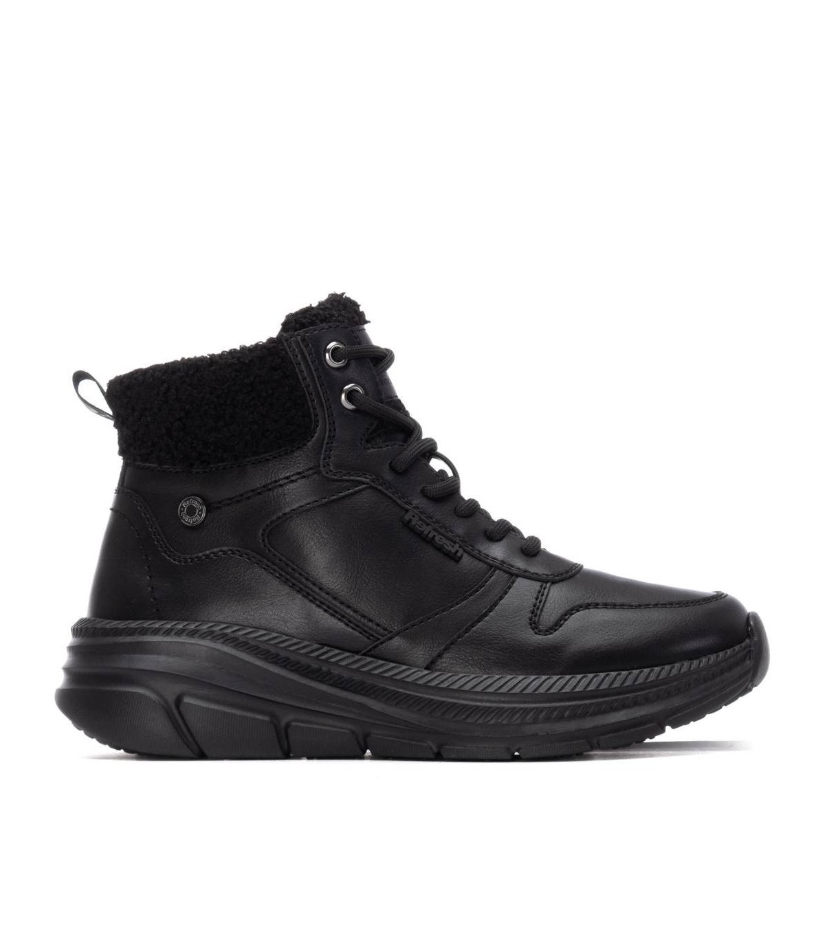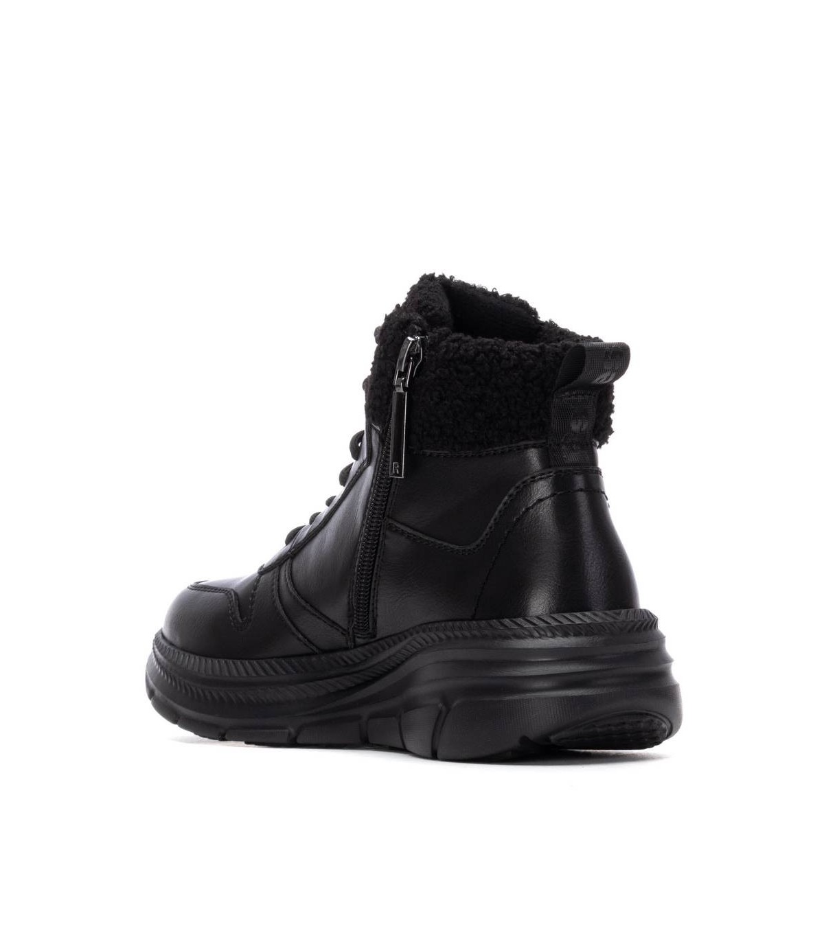 Zapatilla tipo abotinada de mujer, de la marca Refresh. Fabricado en material que imita a la piel. Collarín con borreguito al tono. Cierre mediante cremallera interior con cordón regulable para un mejor ajuste. Caña de 9 cm. Gruesa suela de goma antideslizante. Con plantilla extraíble. Este modelo ha obtenido el certificado vegano por la organización mundial PETA (Organización de los derechos de los animales).