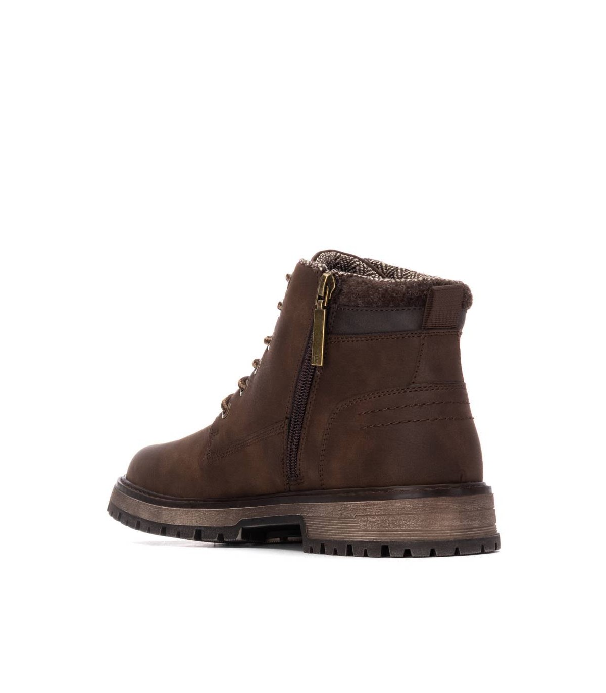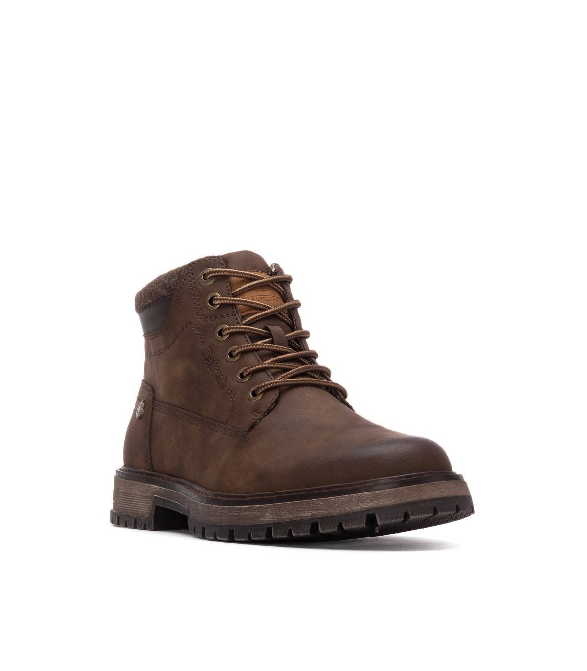 Botín de hombre, de la marca Refresh. Fabricado en material que imita a la piel. Cierre mediante cremallera interior. Cordones regulables para un mejor ajuste. Piso bicolor con suela de goma antideslizante. Con plantilla extraíble. Este modelo ha obtenido el certificado vegano por la organización mundial PETA (Organización de los derechos de los animales).