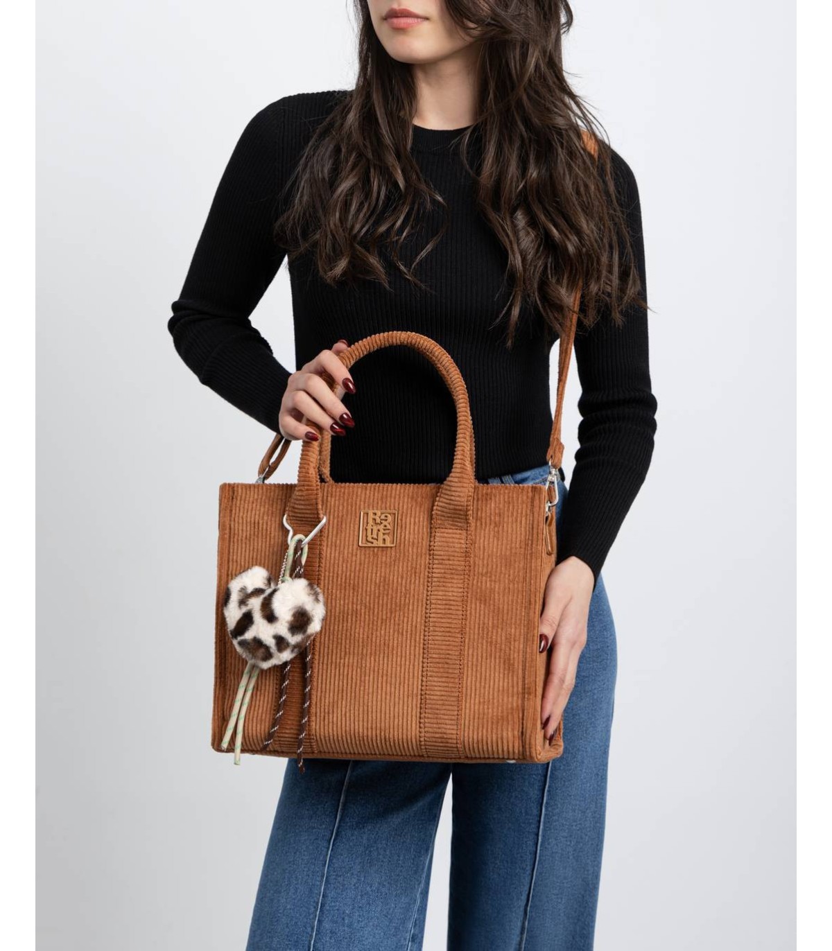 Bolso de mujer de la marca Refresh. Fabricado en material textil tipo pana, con diseño ligero y funcional. Perfecto para el día a día, con bandolera ajustable y cierre superior con cremallera. Medidas: 26 x 32 x 12 cm. Este modelo ha obtenido el certificado vegano por la organización mundial PETA (Organización de los derechos de los animales).