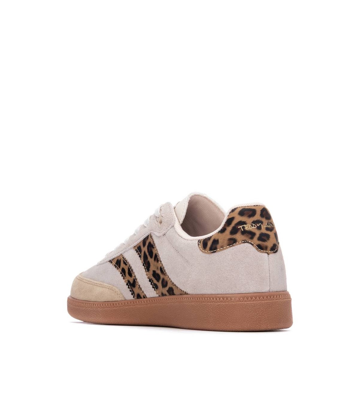 Zapatilla de mujer, de la marca Teddy Smith. Fabricada en un suave serraje. Cierre mediante cordones ajustables. Detalles con estampado animal. Suela de goma antideslizante. Con plantilla extraíble