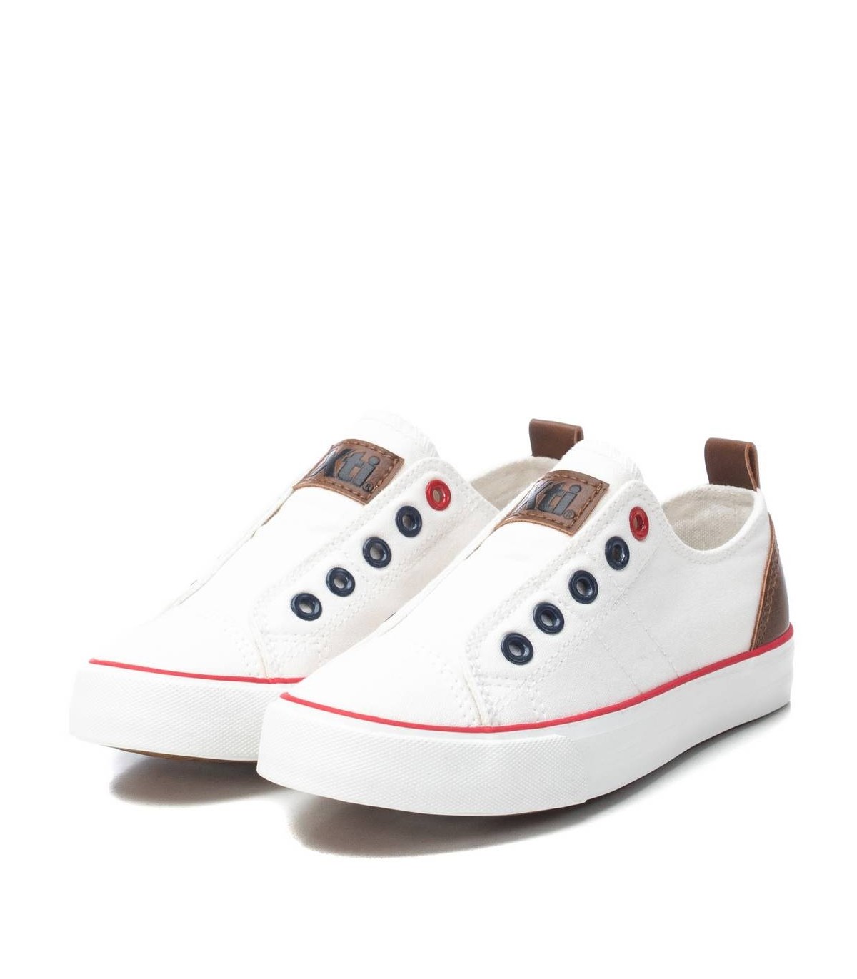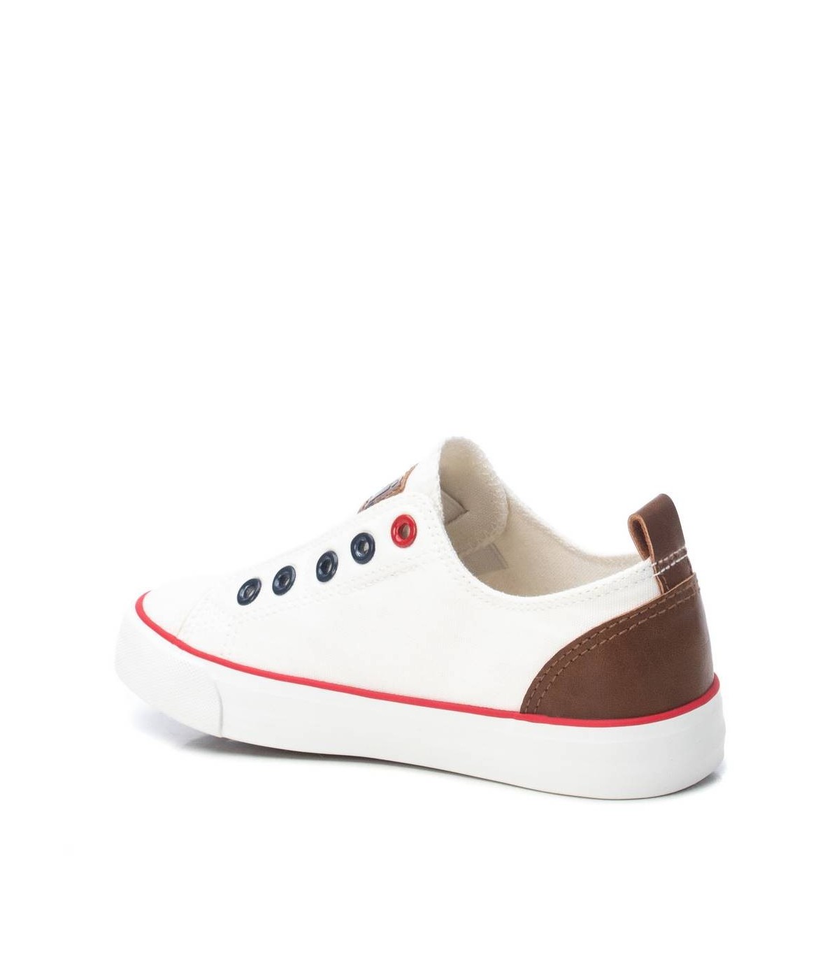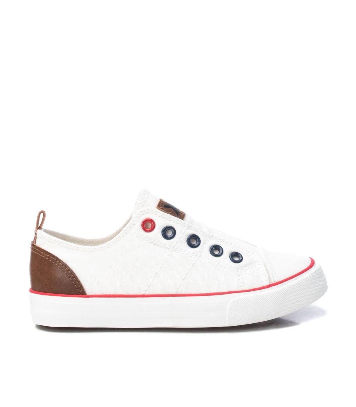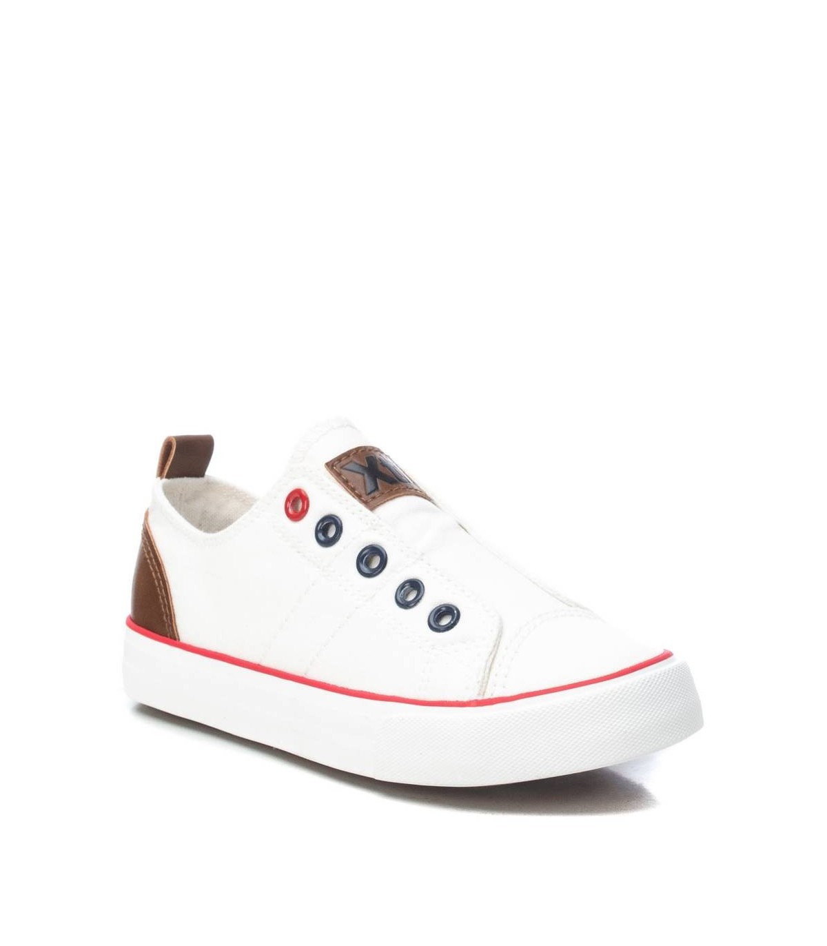 Zapato de lona de niño, de la marca Xti Kids. Cómodo modelo, diseñado sin cordones y piso de goma de 2 cm. Imprescindible en el día a día de los más pequeños. Este modelo ha obtenido el certificado vegano por la organización mundial PETA (Organización de los derechos de los animales).