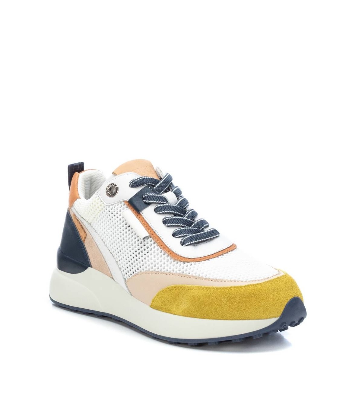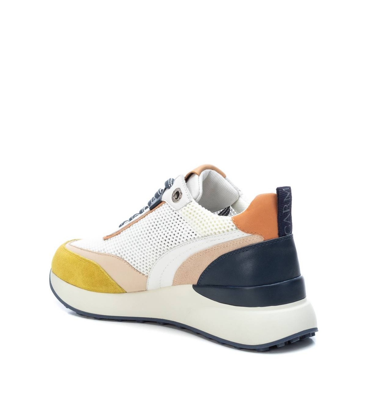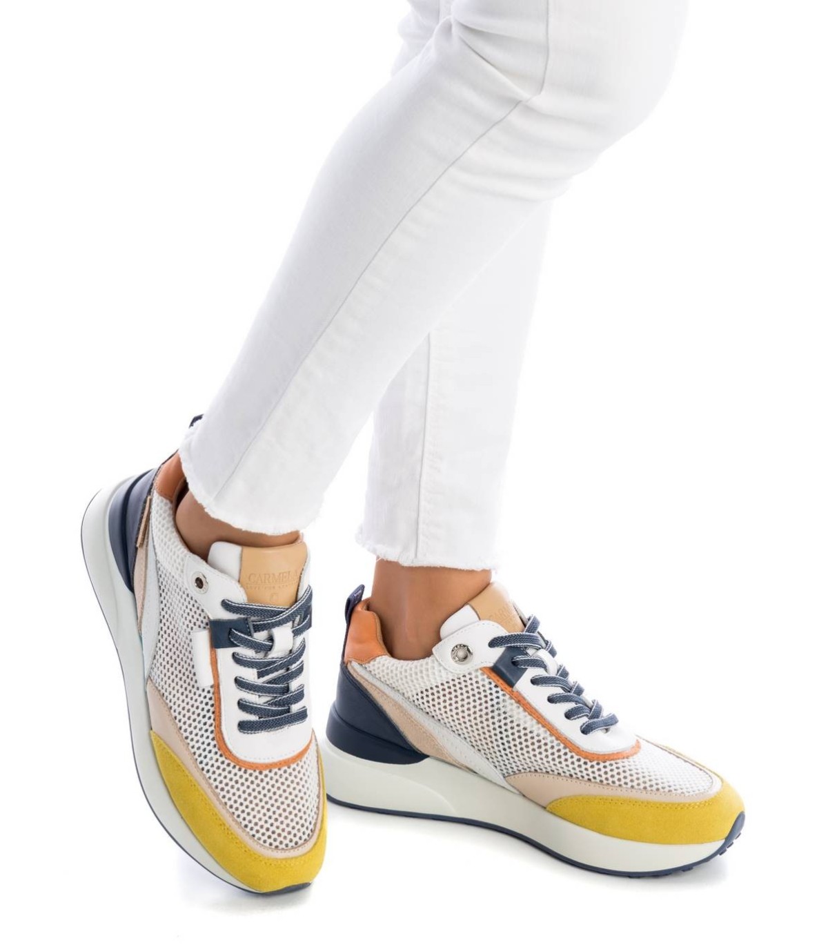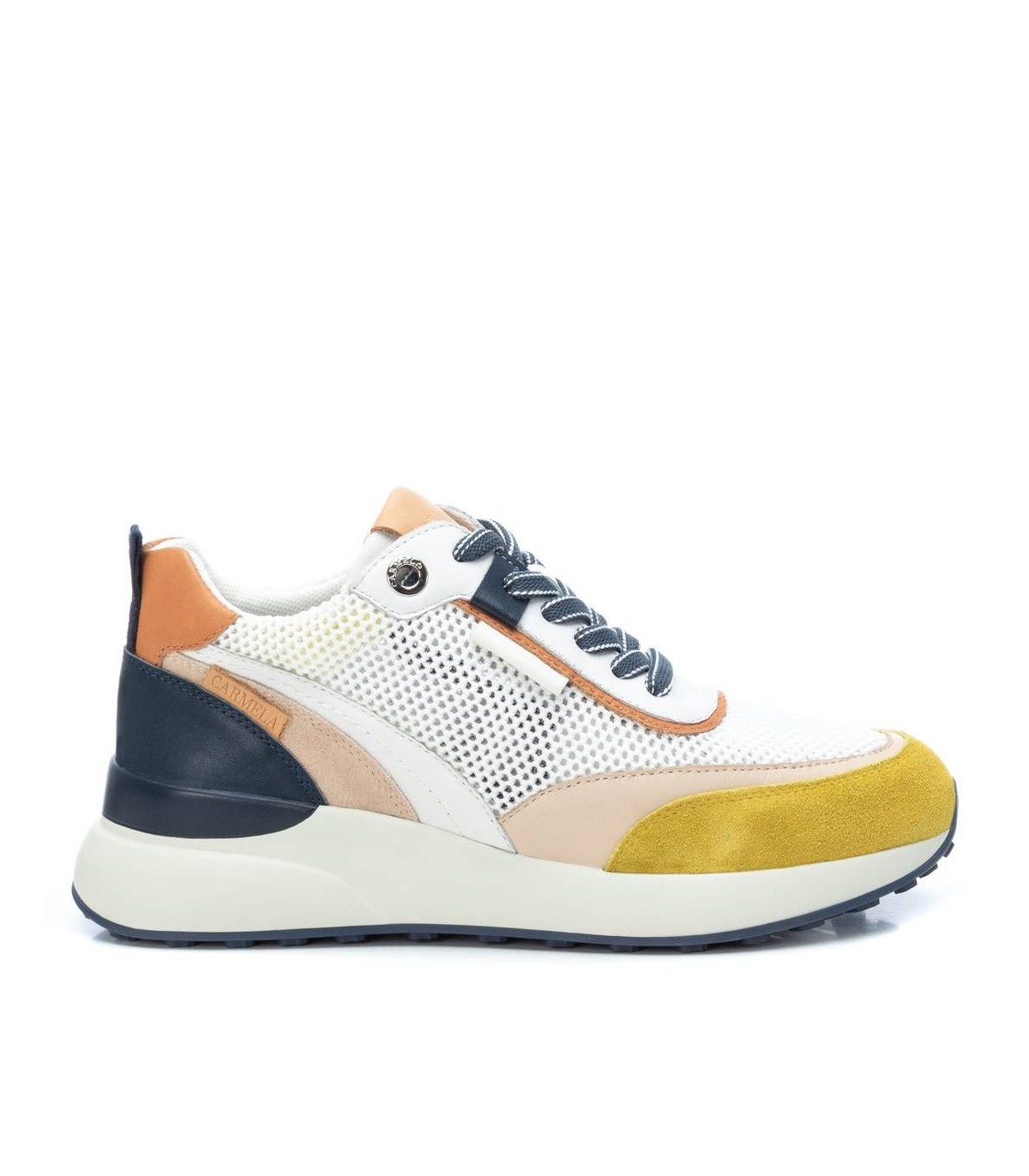 Zapatilla de mujer, de la marca Carmela. Original piso grueso de goma de 6 cm con suela de goma dentada antideslizante. Fabricada en piel combinada con rejilla. Sneaker ideal para esta temporada y para las amantes de estas zapatillas. Un modelo muy colorido que personalizará todos tus looks.