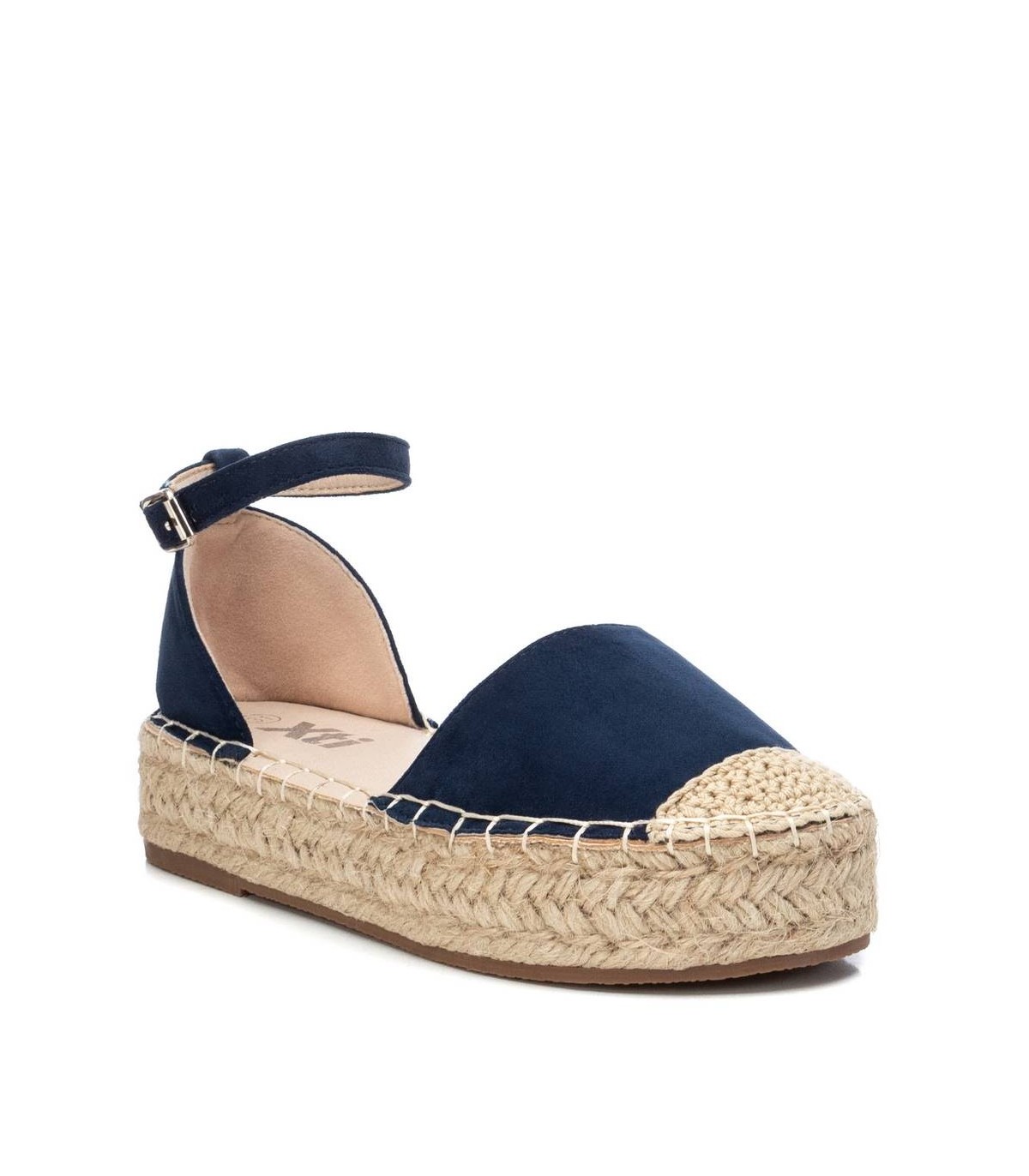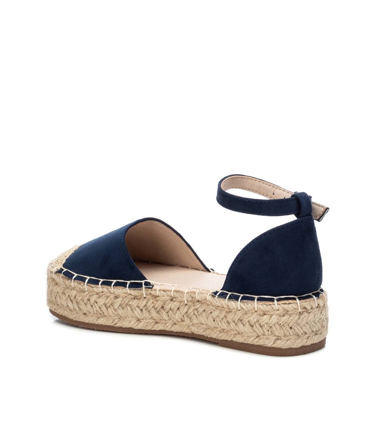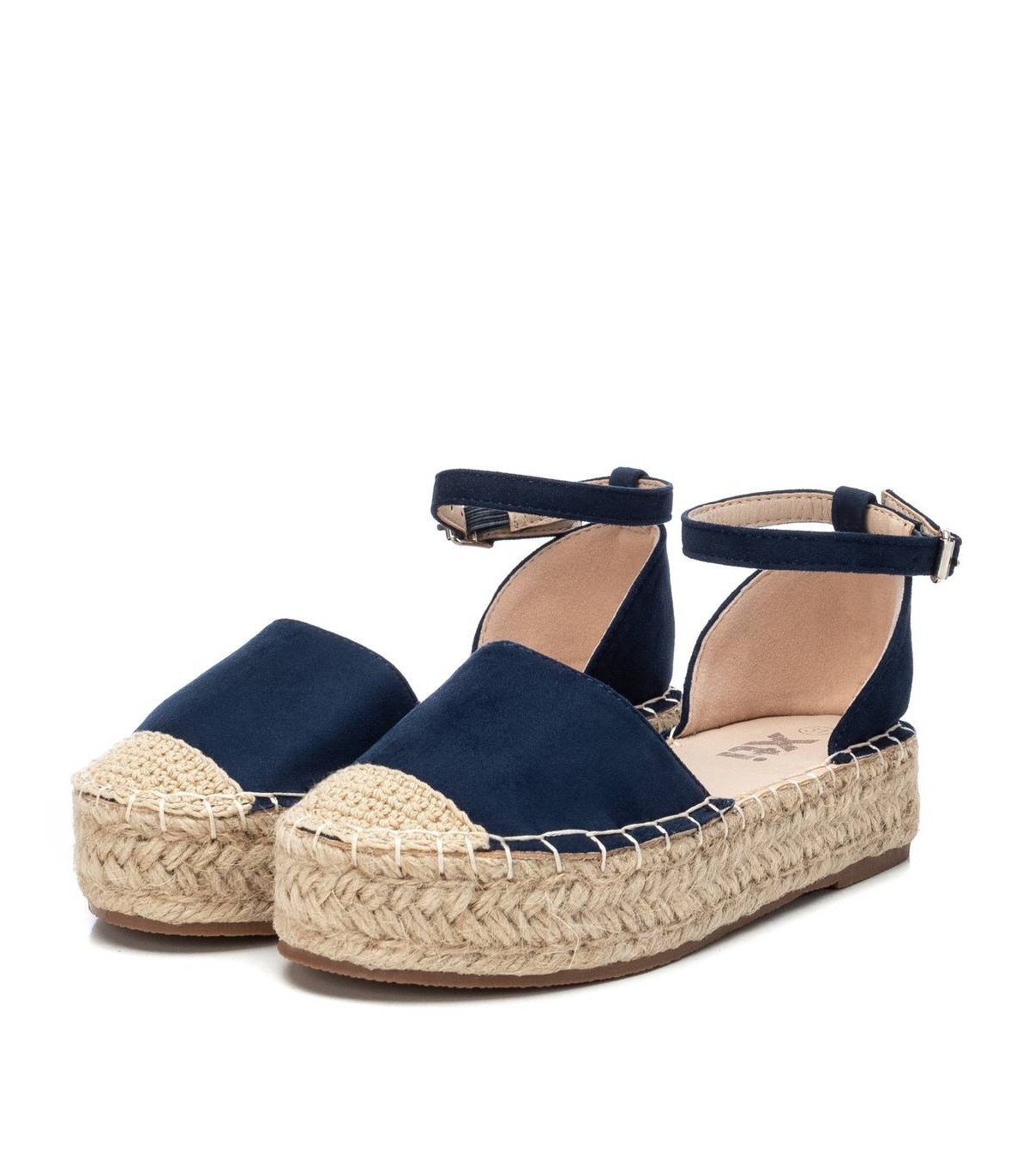 Zapato de niña tipo valenciana, de la marca Xti Kids. Fabricada en antelina, con pulsera con hebilla para sujetar al talón. Cómoda planta con pequeña plataforma recubierta en yute. Con plataforma de 3 cm de altura recubierta de tiras de yute trenzado con suela de goma antideslizante. Este modelo ha obtenido el certificado vegano por la organización mundial PETA (Organización de los derechos de los animales).