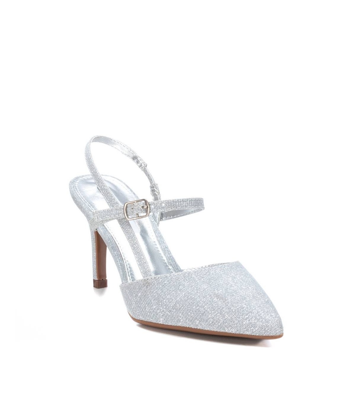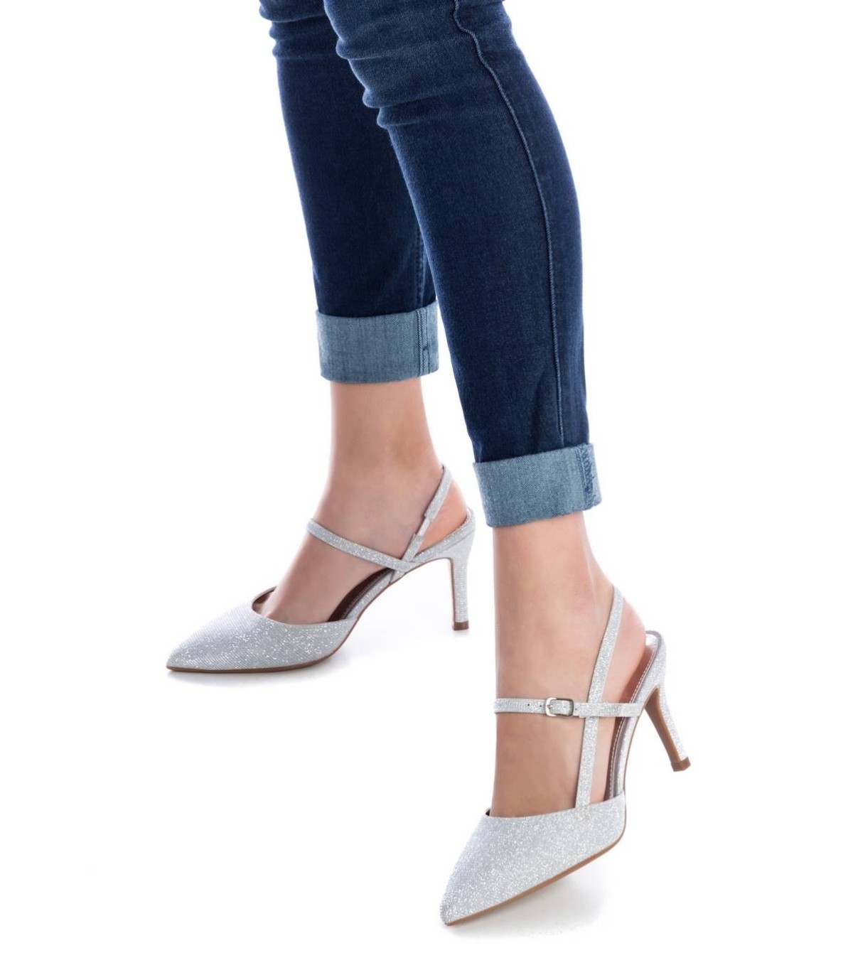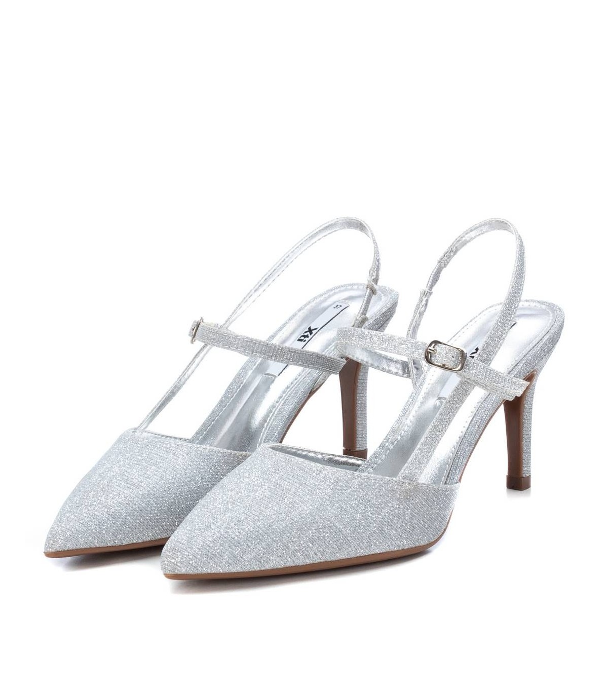 Mule metalizado de mujer, marca Xti. Fabricado en material que imita la piel con acabado metalizado que pronto se convertirá en tu favorito para las fiestas. Tira de tobillo con hebilla metaliza. Punta afilada. Alto tacón de 11 cm de altura para que no pasar desapercibida. Este modelo ha obtenido el certificado vegano por la organización mundial PETA (Organización de los derechos de los animales).
