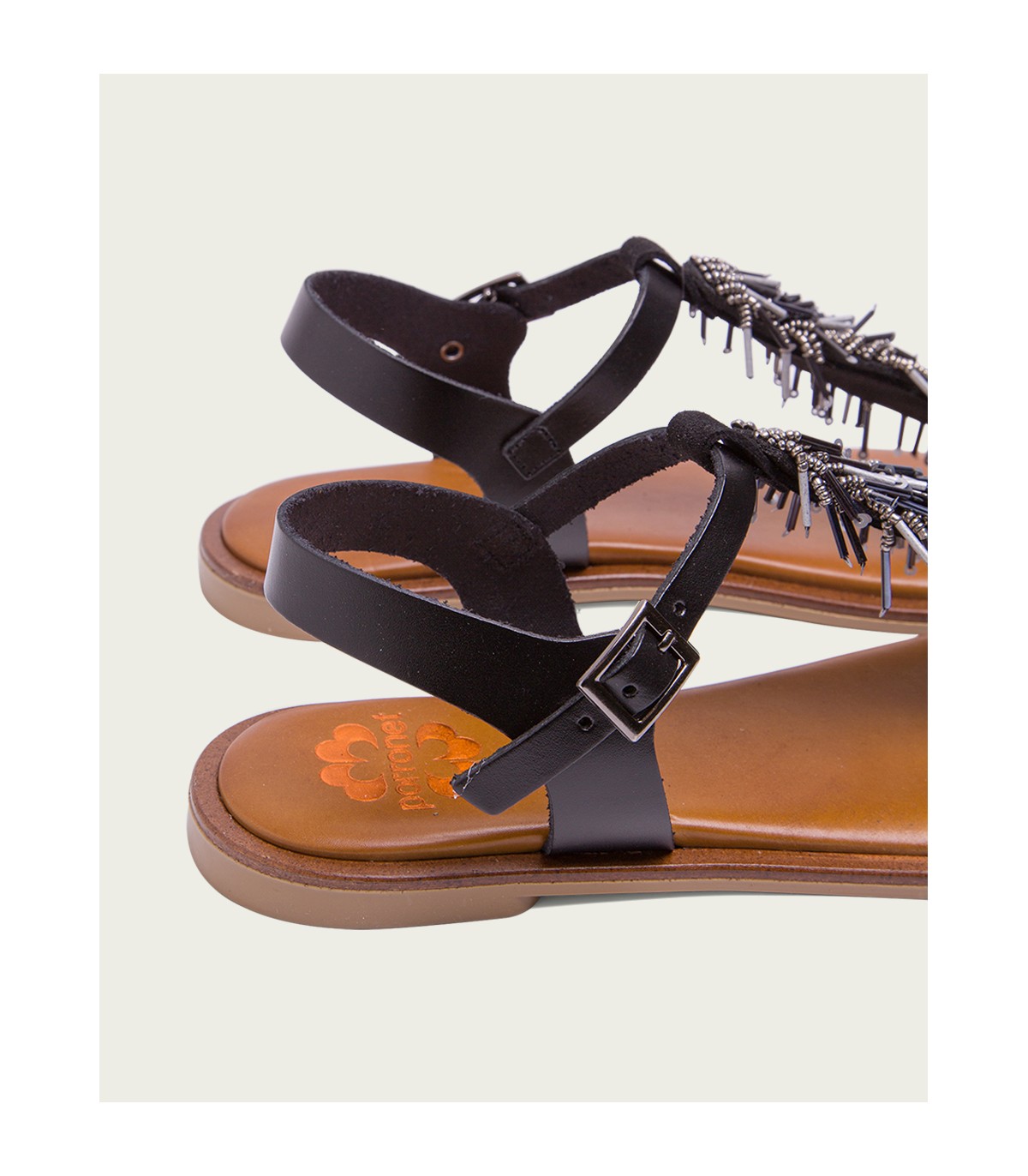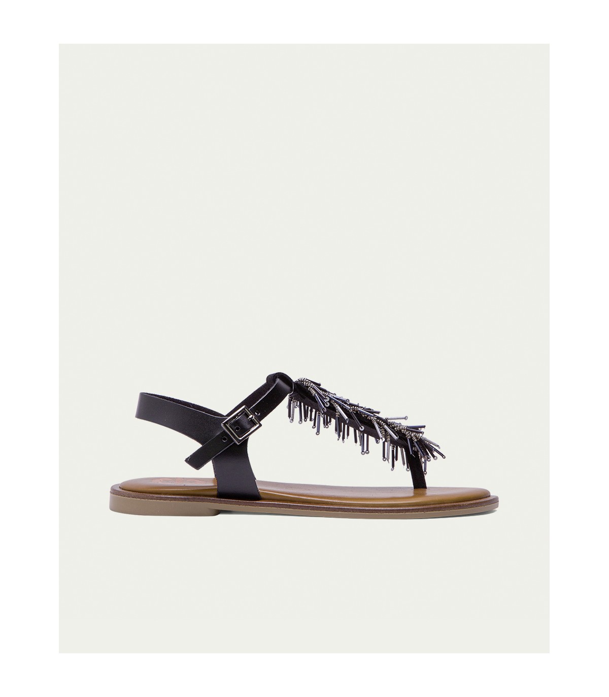 SANDALIA PLANA PIEL NEGRO AMBRA