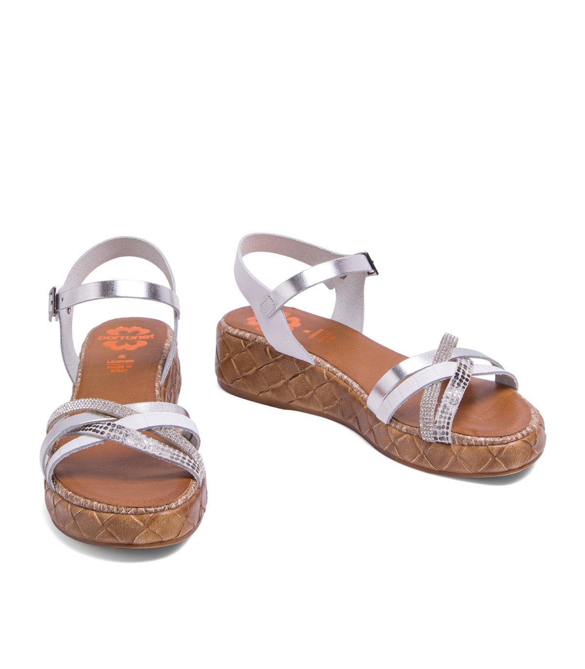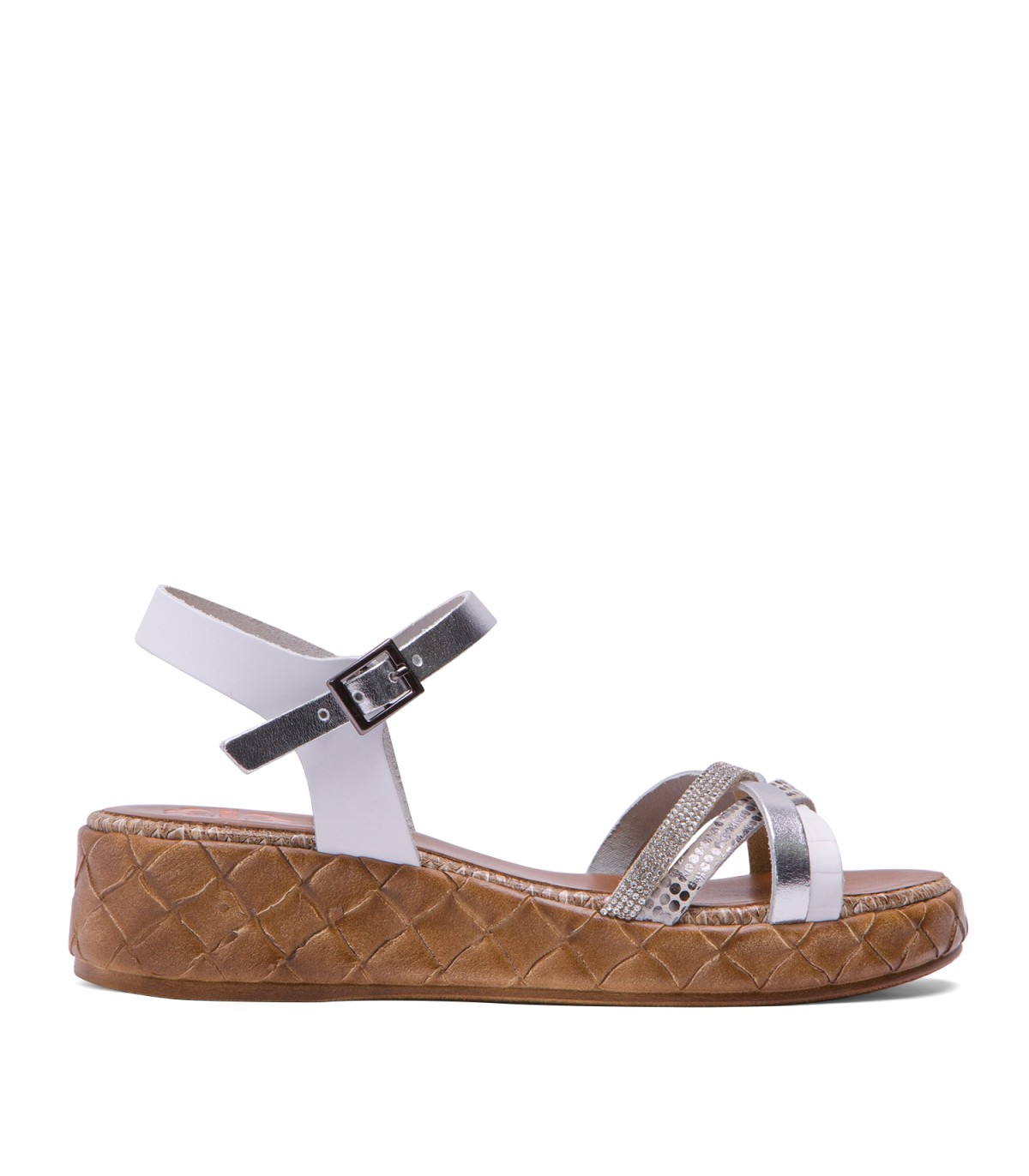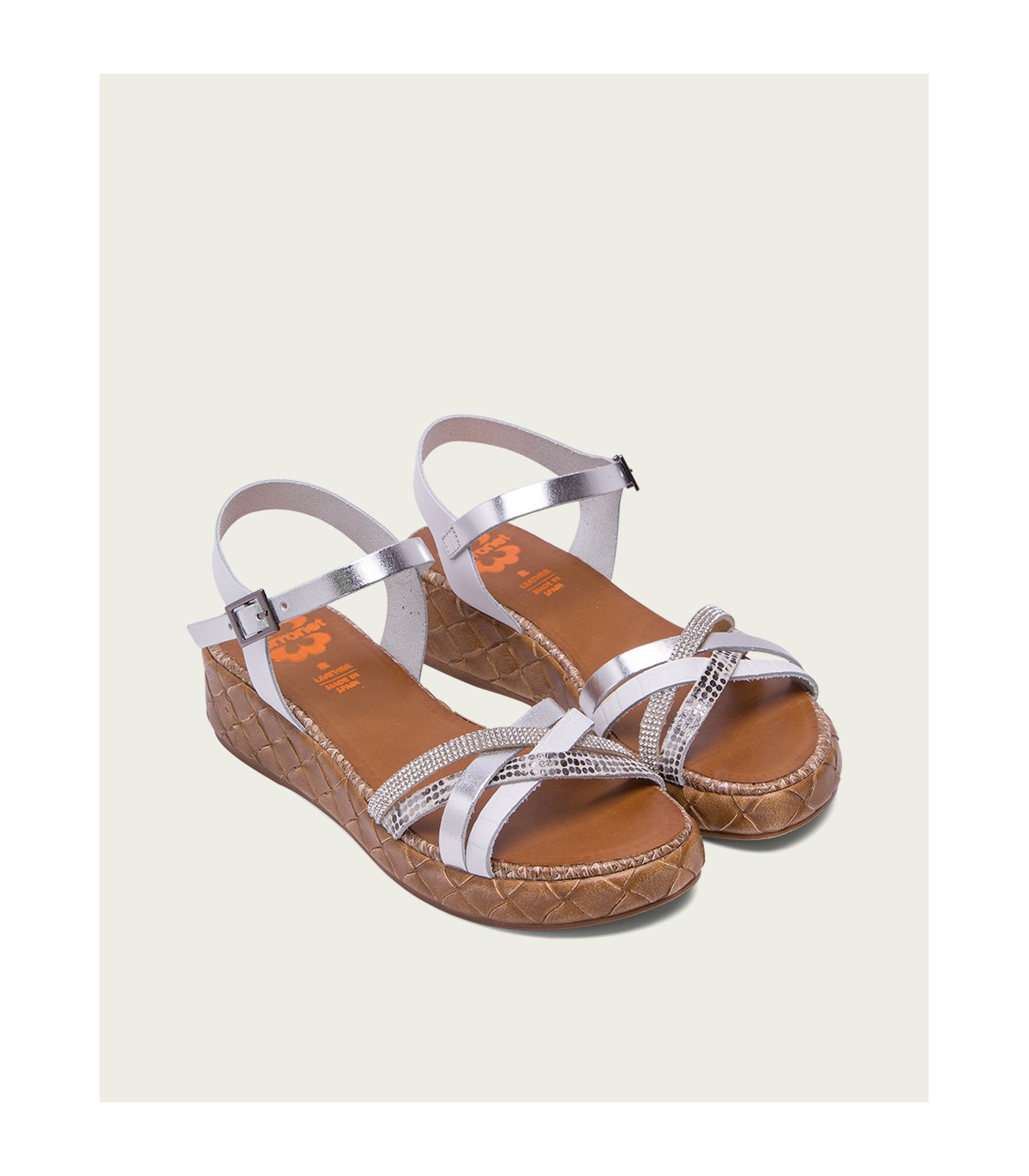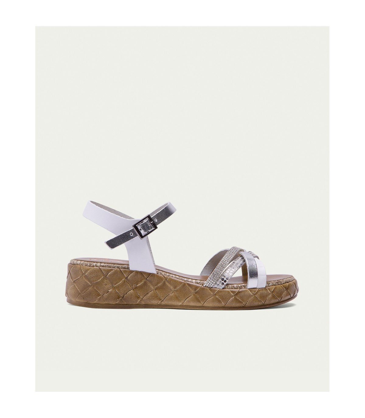 SANDALIA CUÑA PIEL BLANCO PLATA SURI