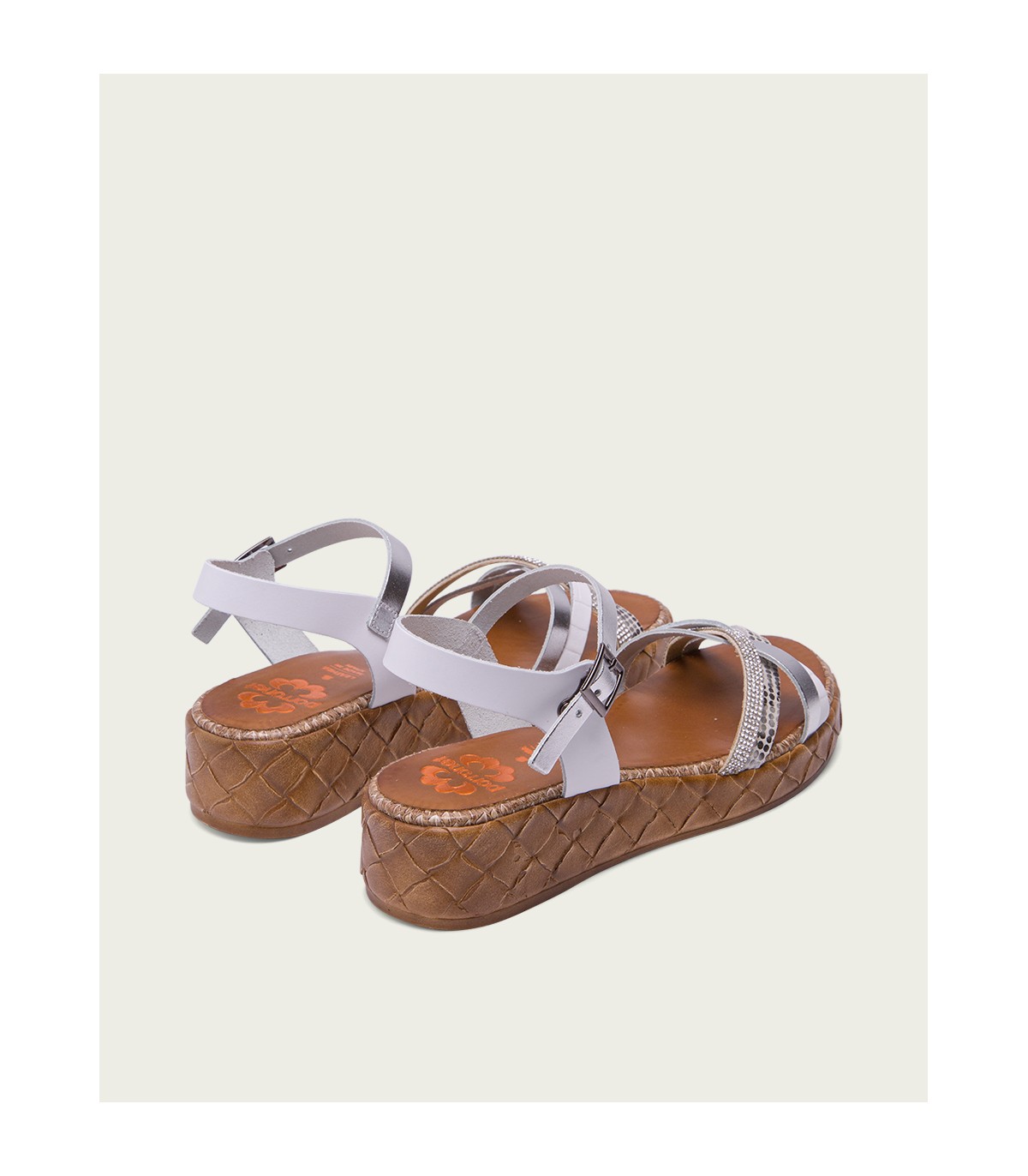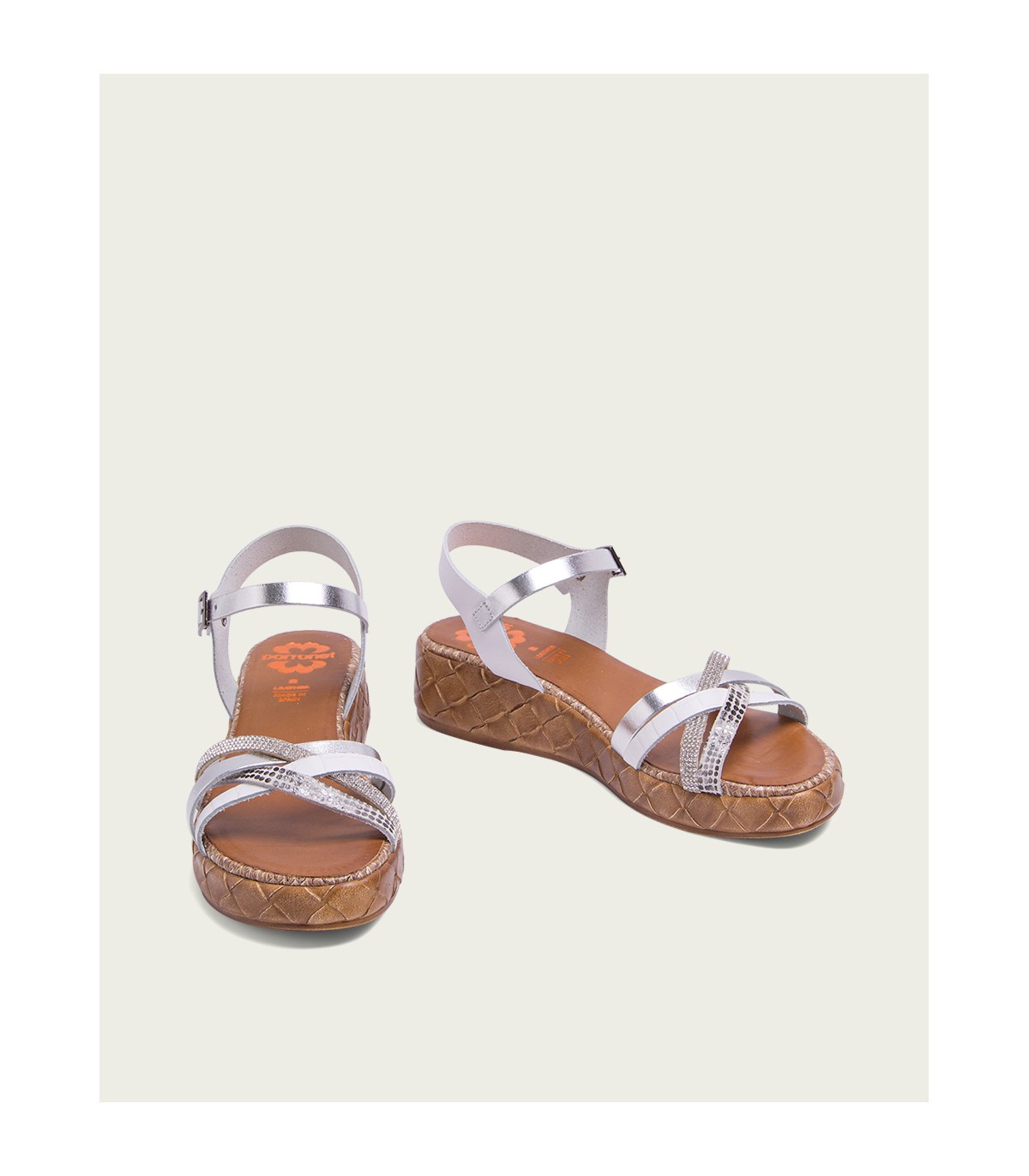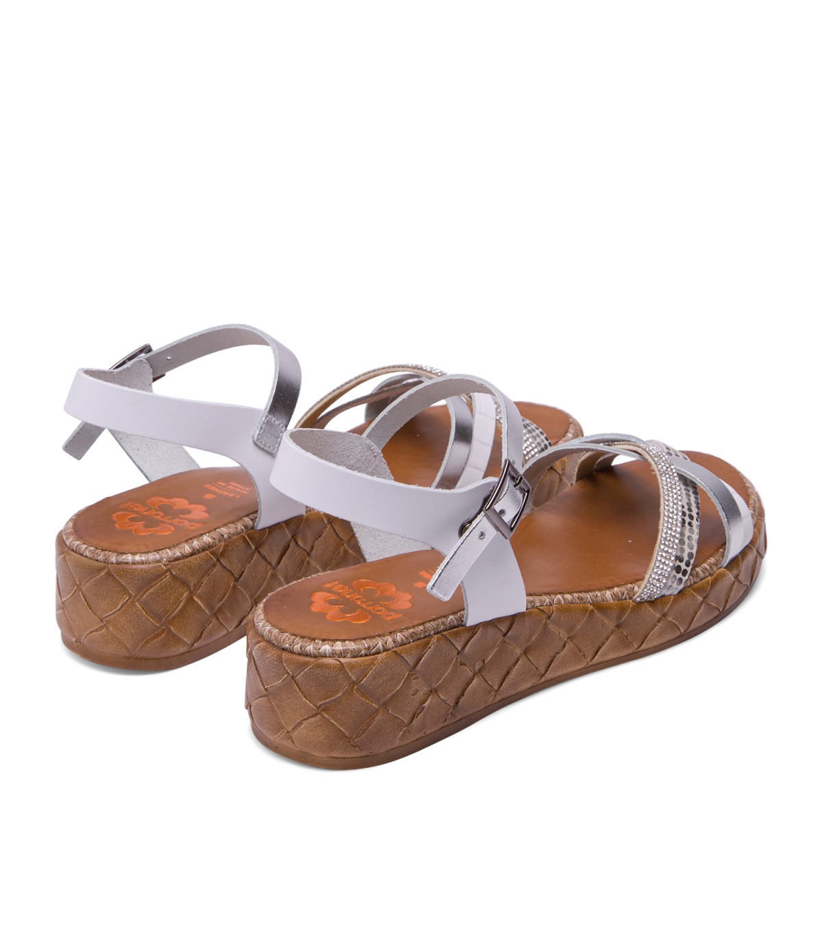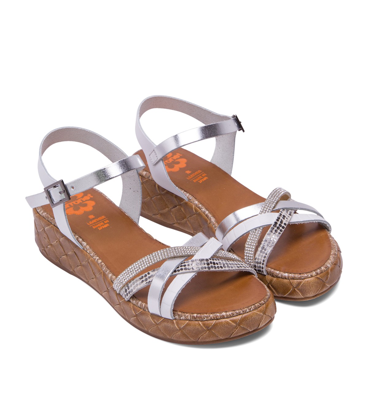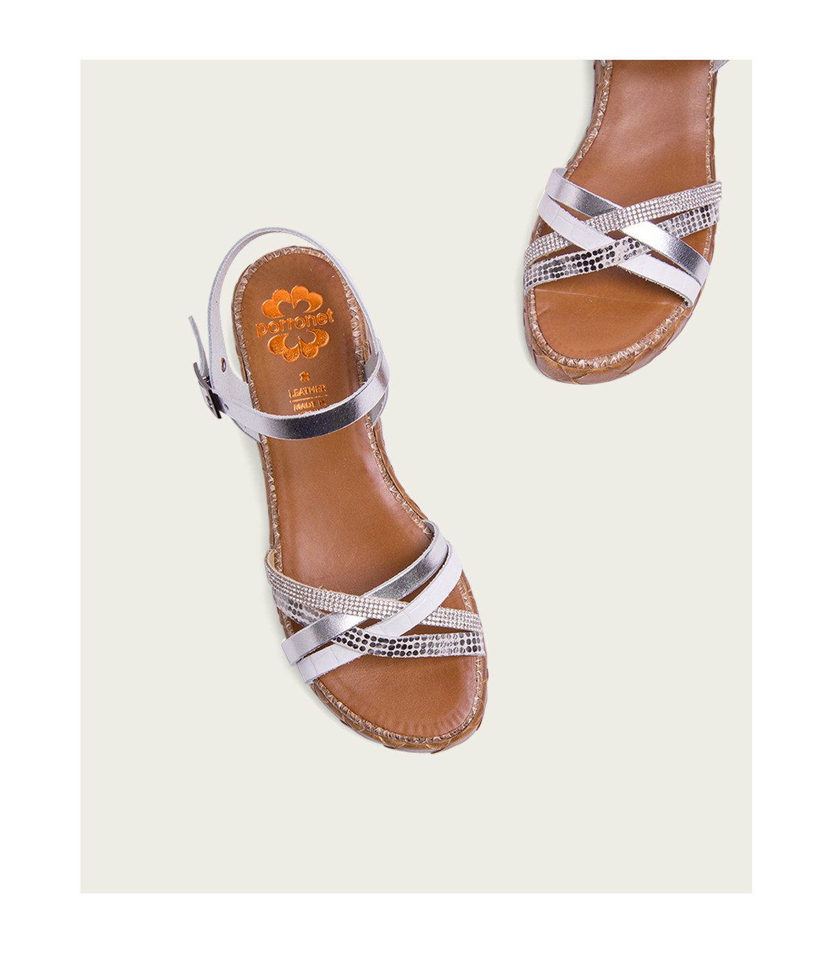 SANDALIA CUÑA PIEL BLANCO PLATA SURI