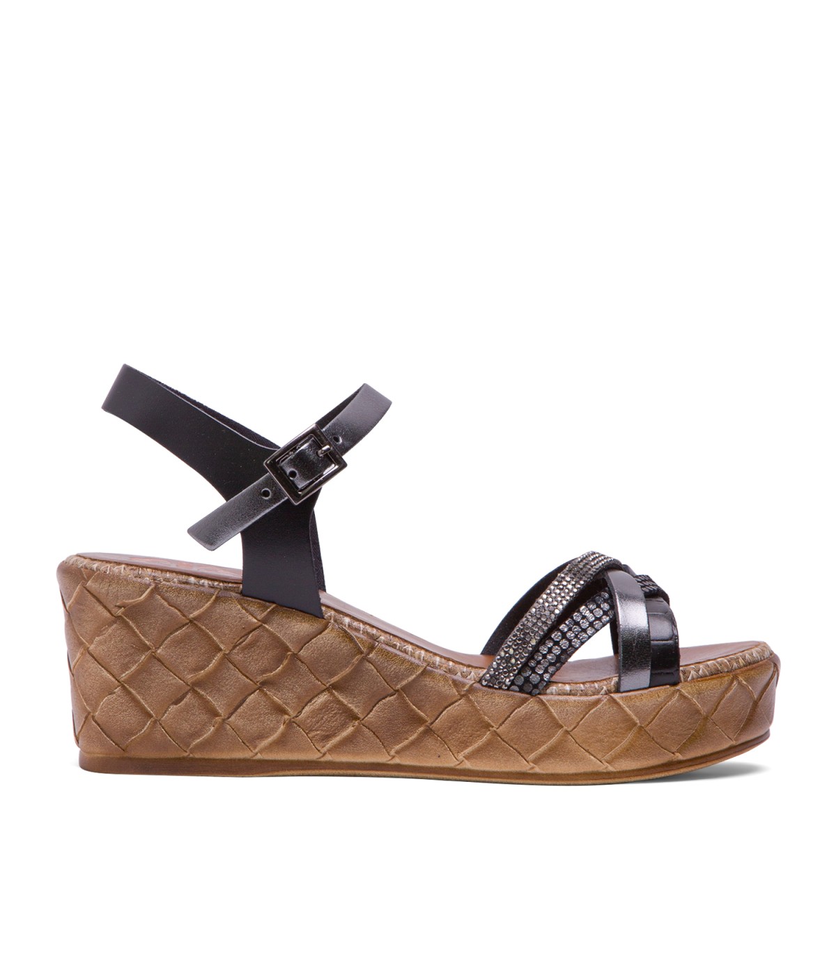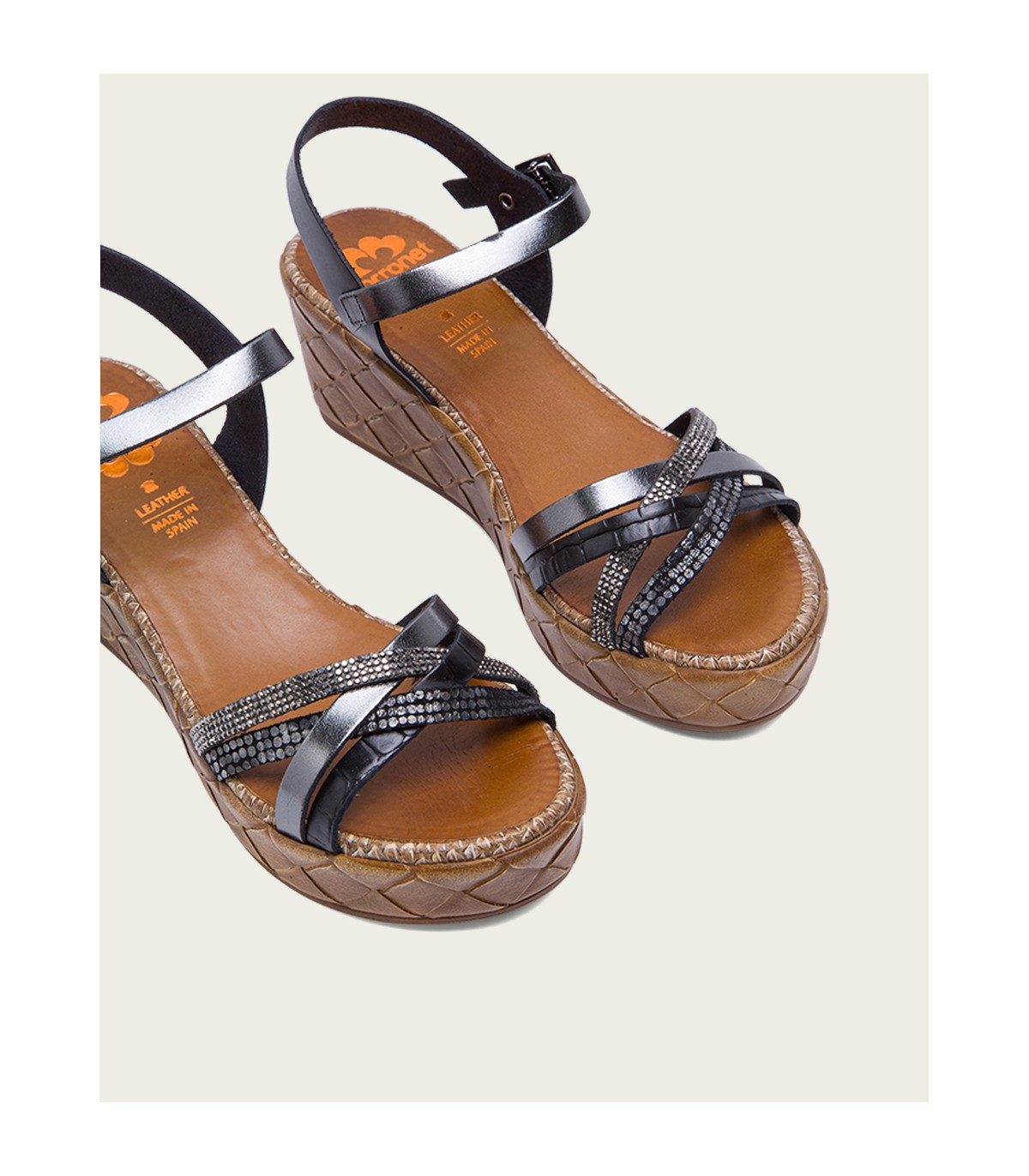 SANDALIA CUÑA PIEL NEGRO PLOMO SAMIRA