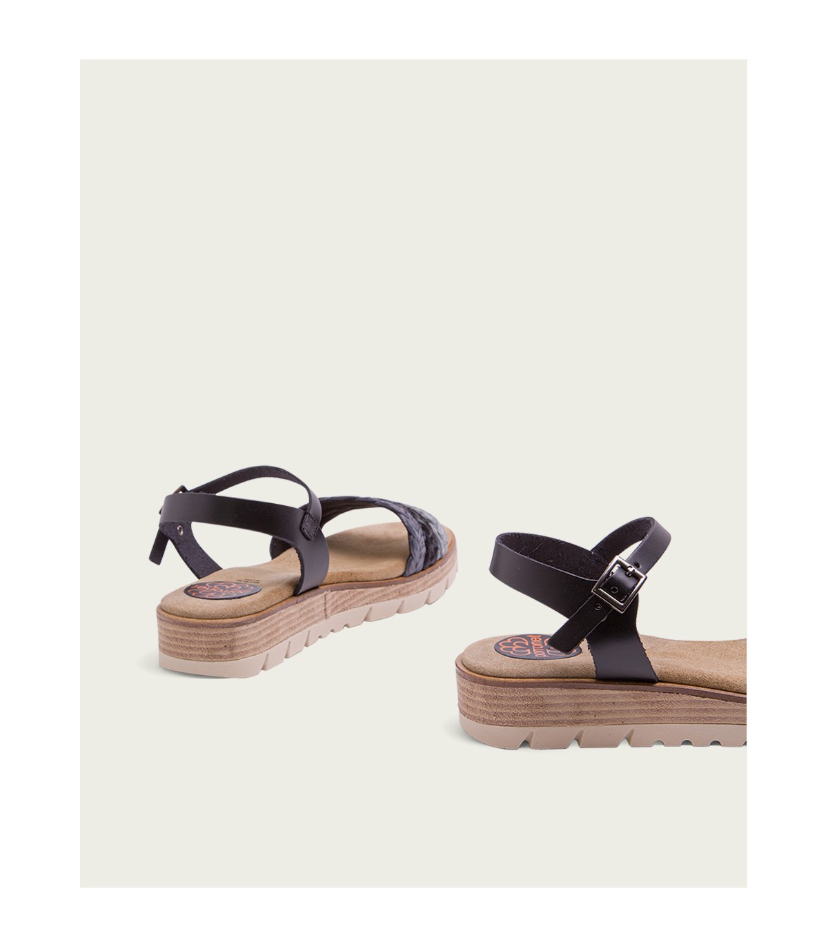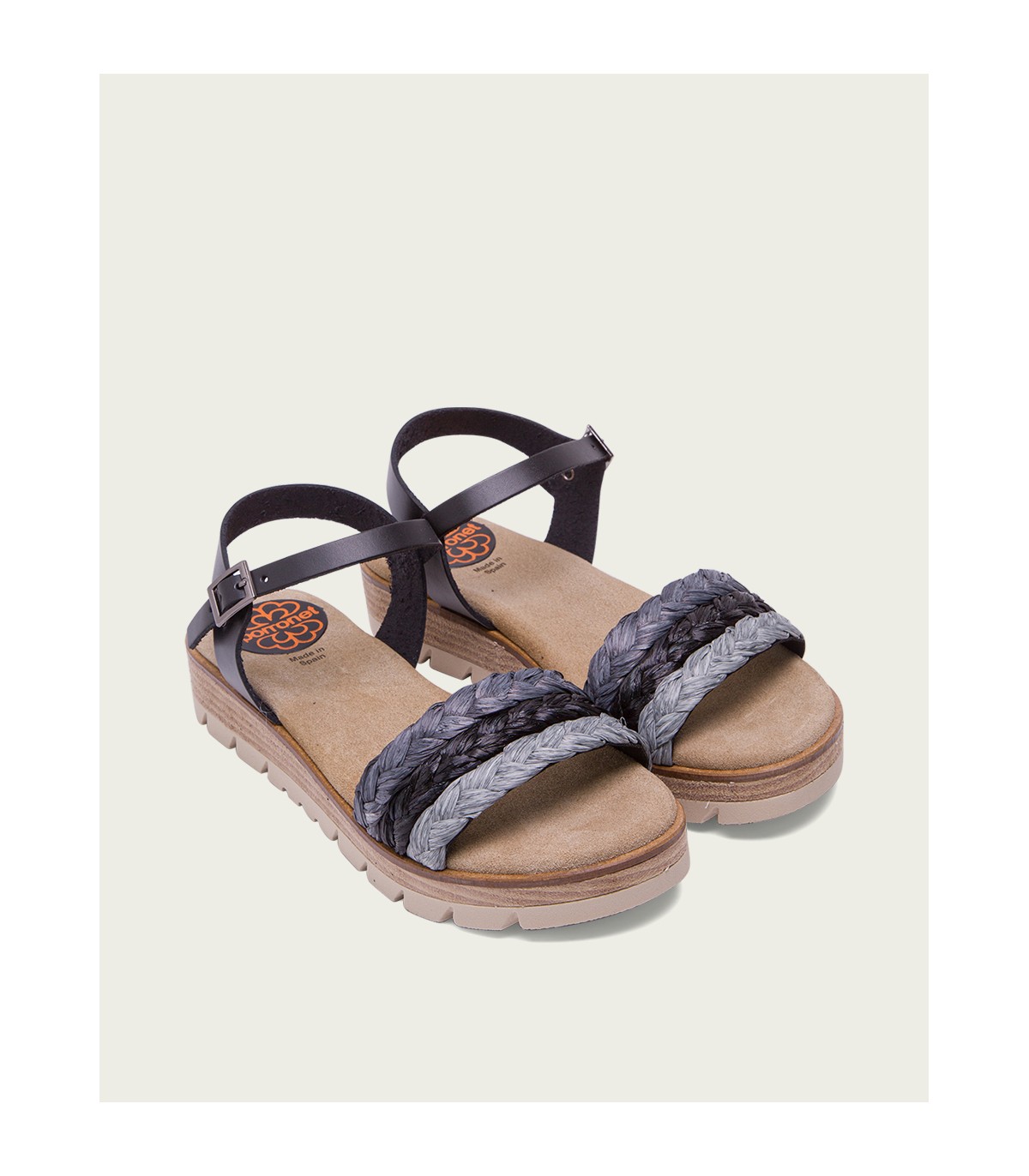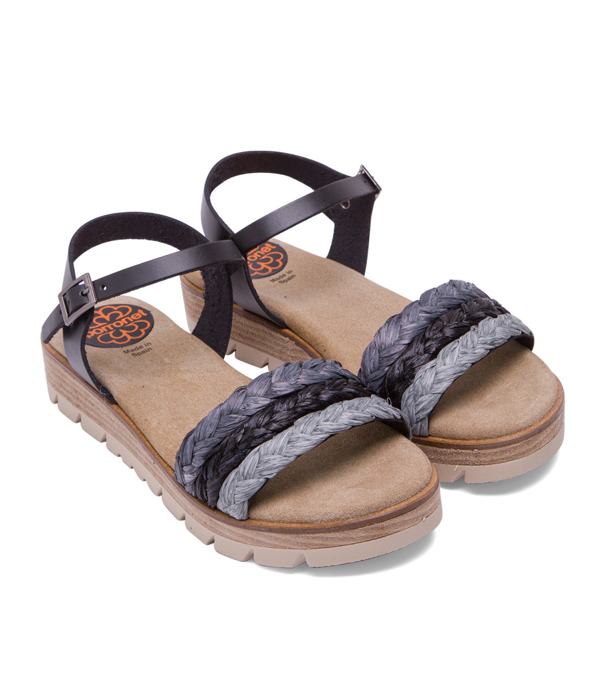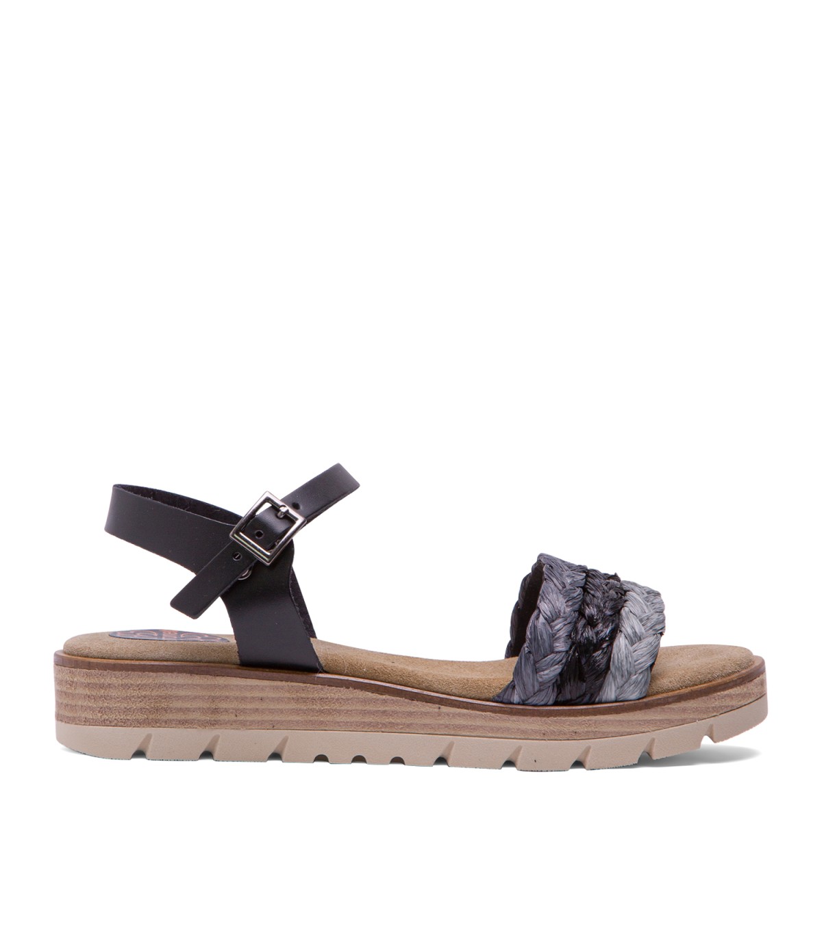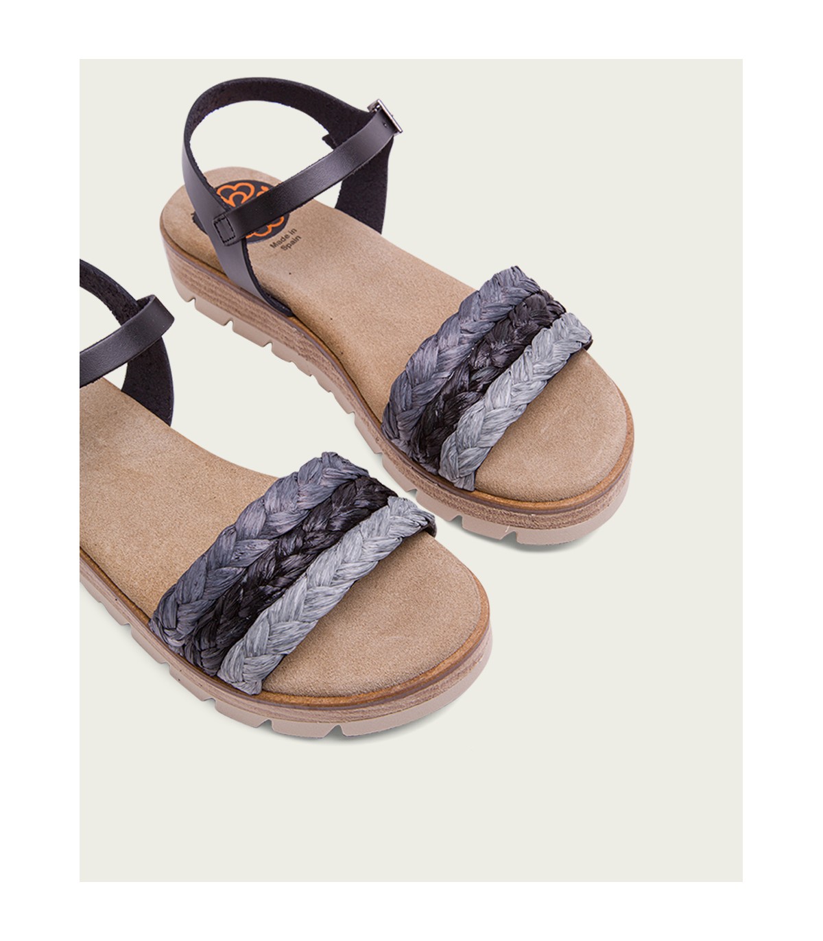 SANDALIA PIEL RAFIA NEGRO BRISA