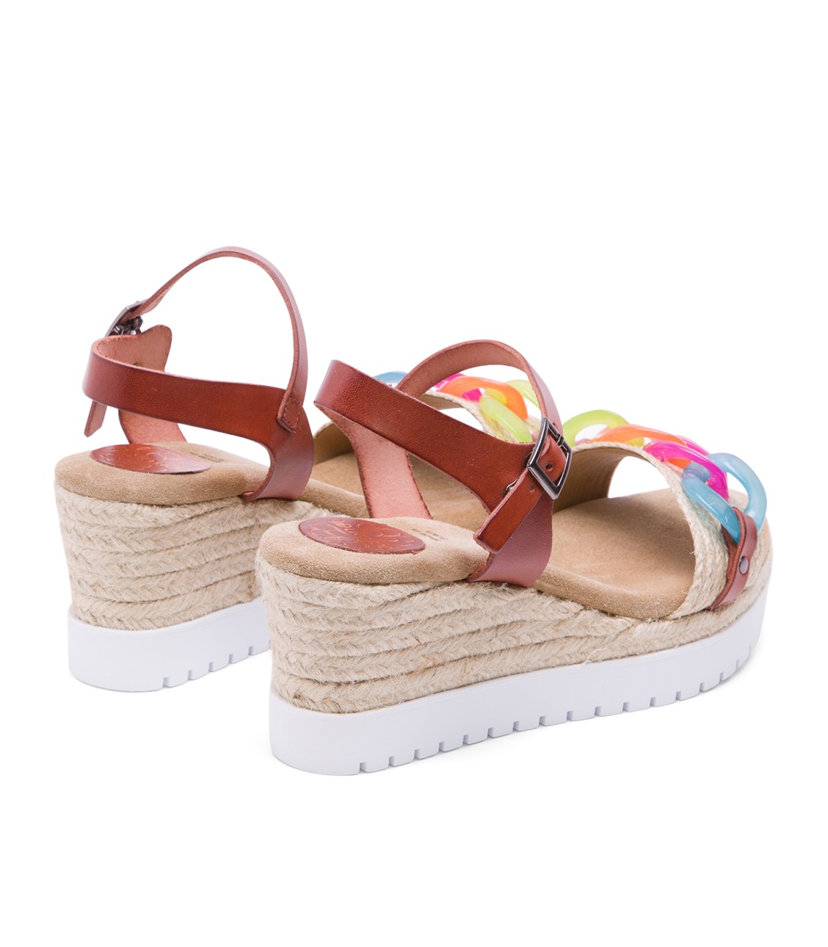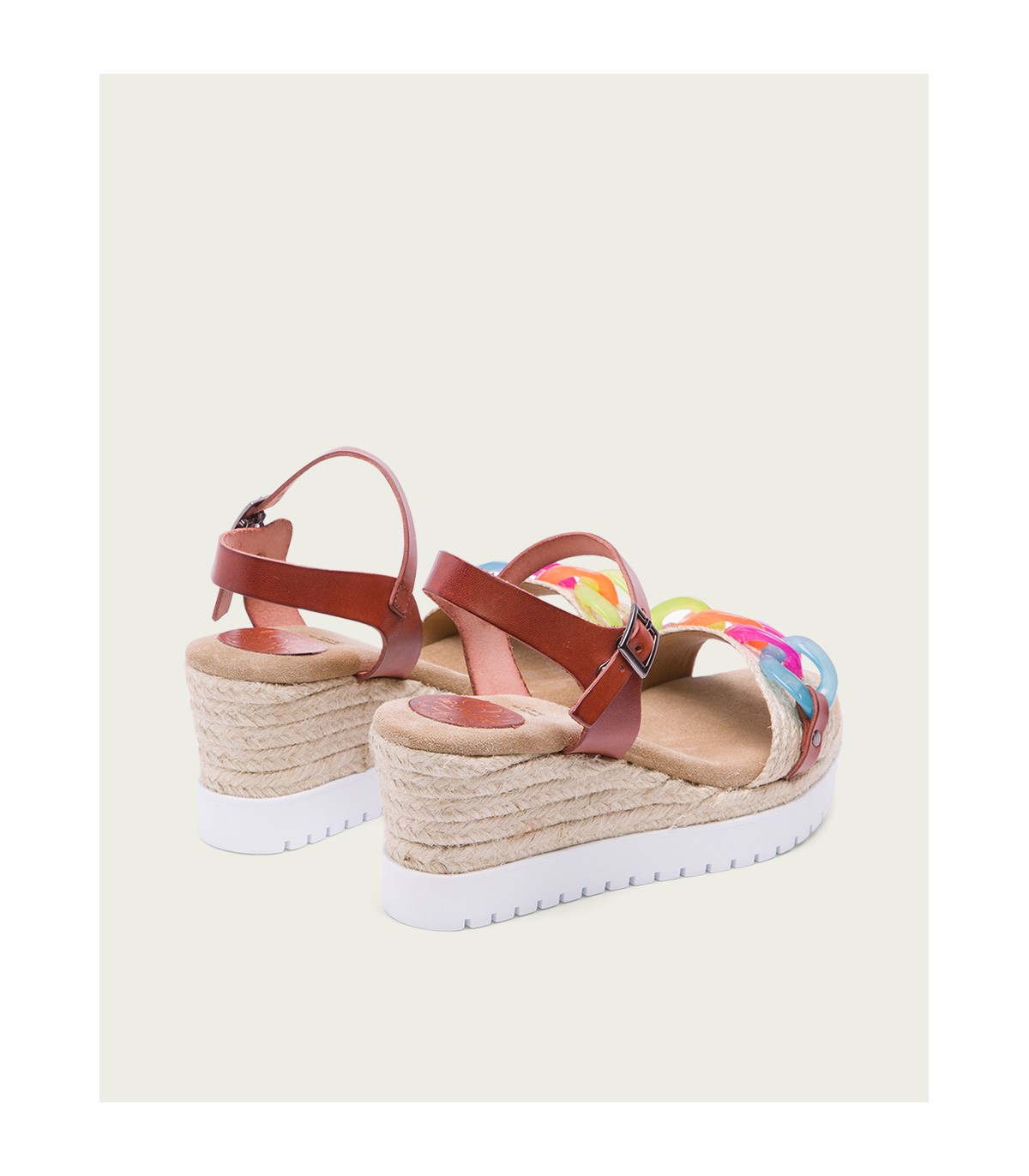 SANDALIA CUÑA PIEL RAFIA CUERO-COLORES LOLA
